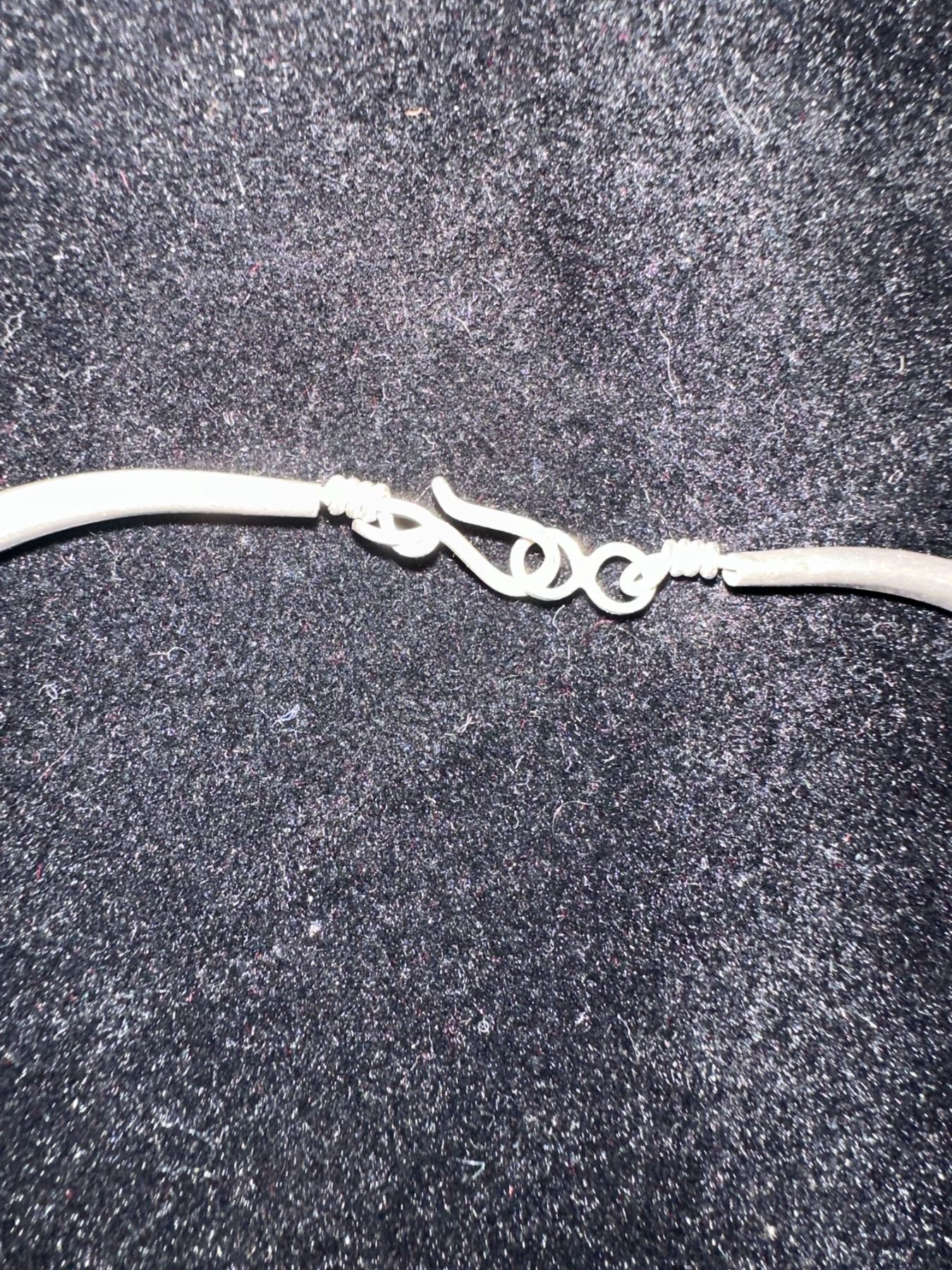 Each of them is a perfect match with a striking deep blue color and distinct black web from the Kingman Arizona mine. The workman ship on the silver scrolling is unique to this necklace. The piece does not have an artist hallmark but the work is of a master-silversmith.