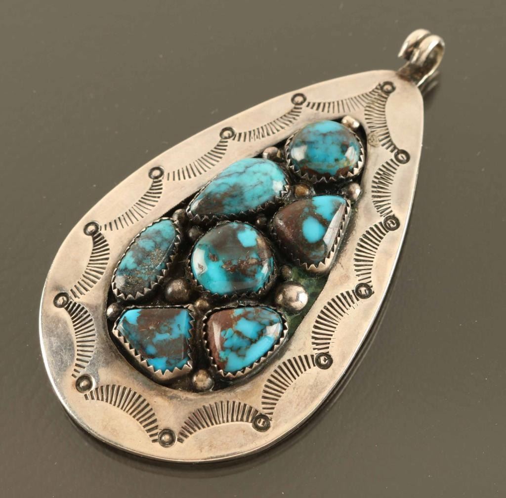 7 turquoise stones set in sterling silver maker marked R1.