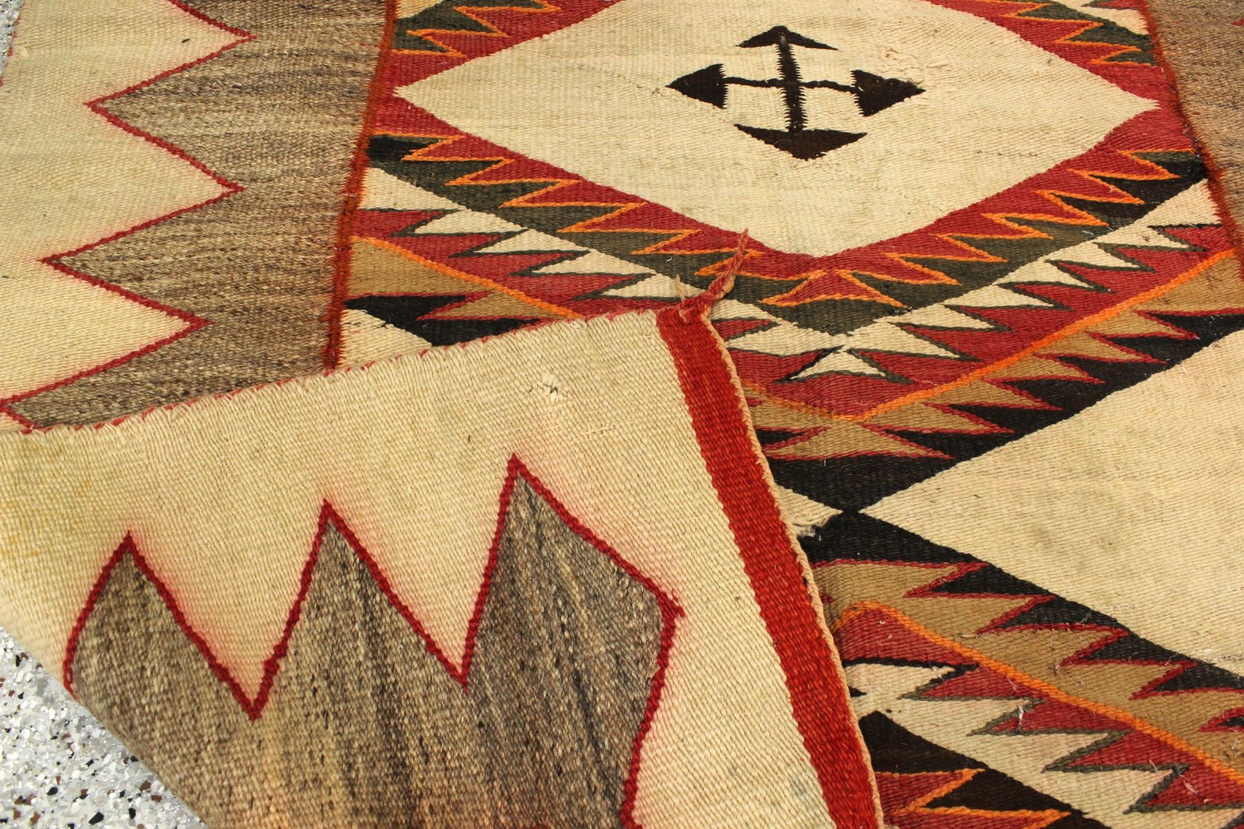 An interesting Native American textile showing great color and rug in rug pattern, measuring 48"x 72".