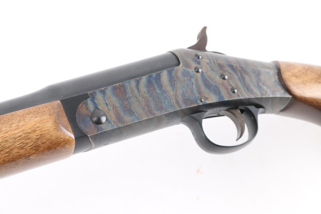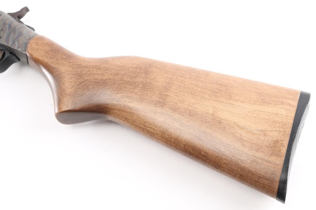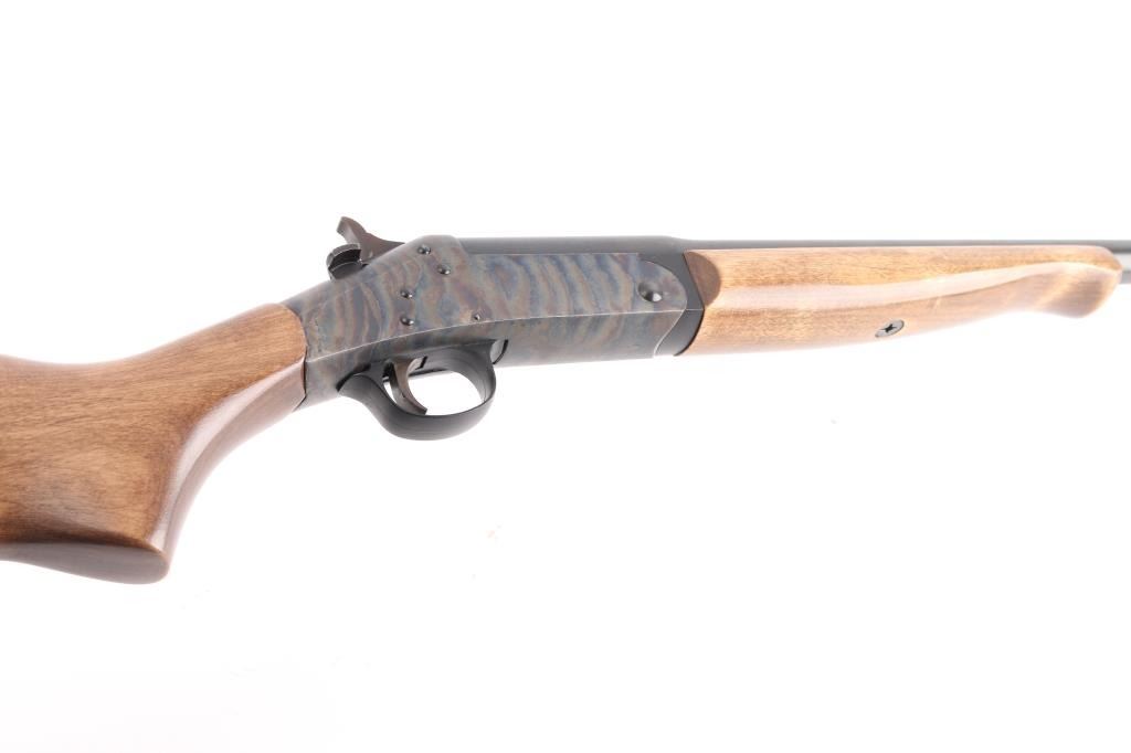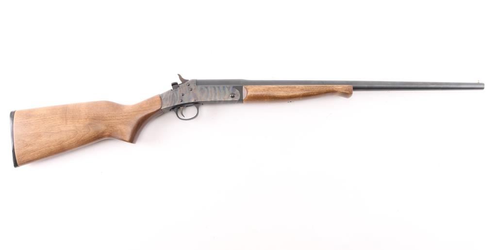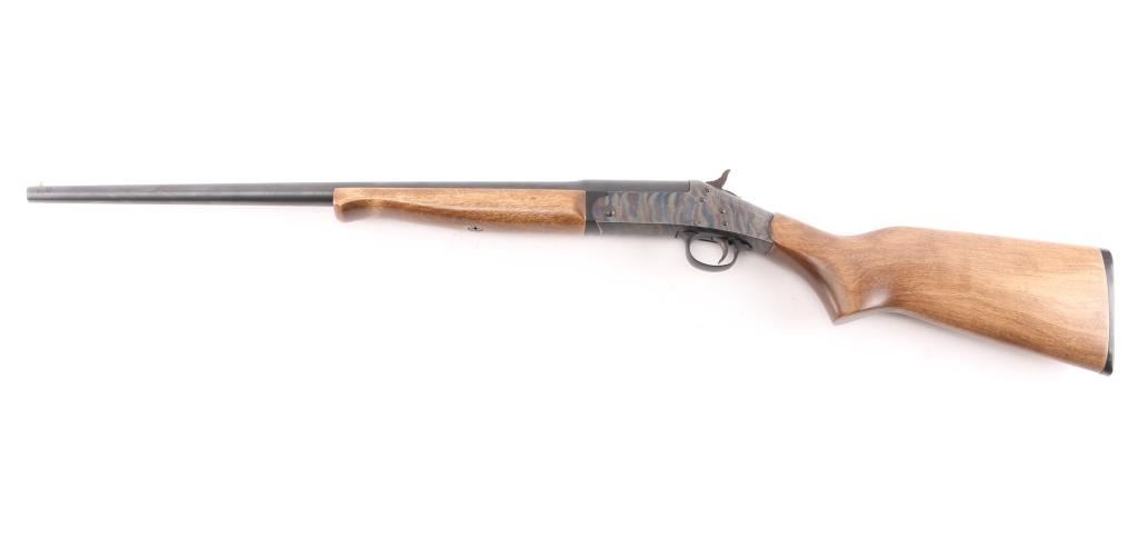 Sn: NP274995. Break-top single shot shotgun features blued finish with case color receiver, smooth wood stock & forend, factory buttplate, 22" plain barrel, brass front bead, takes up to 3" shells, fixed full choke, top lever opening, exposed hammer. Bore is excellent/bright, barrel locks-up tight, overall condition is like new. LOP is 13 1/2".Condition is NRA Excellent. Modern Firearm.