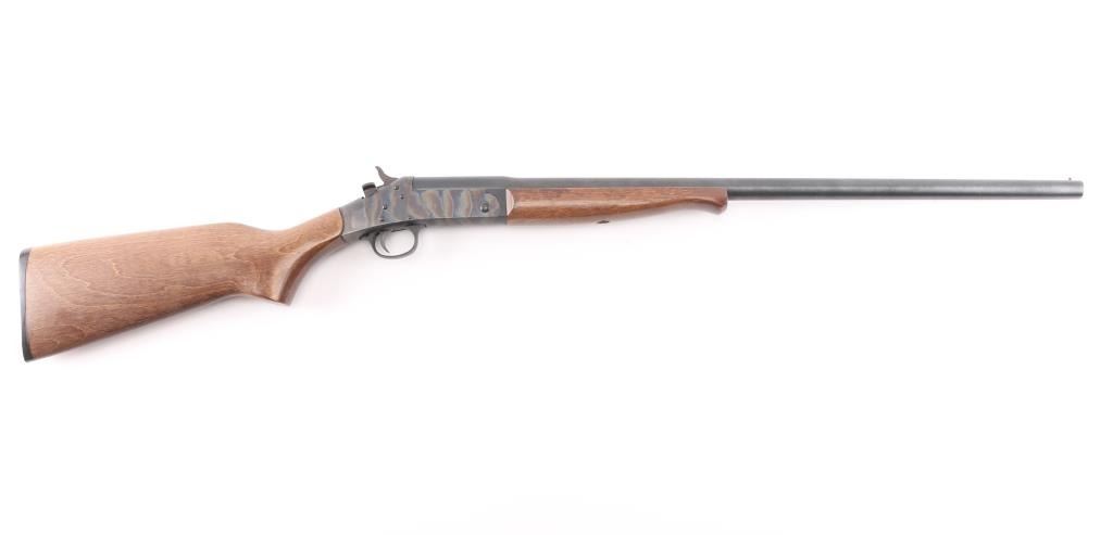 Sn: Nn367121. Break-top single shot shotgun features blued finish with case color receiver, smooth wood stock & forend with schnabel tip, 25.5" plain barrel, brass front bead, takes up to 3" shells, fixed modified choke, top lever opening, exposed hammer. Bore is excellent/bright. Retains 98% finish with some minor scratches. Wood is very good condition with very minor scratches.