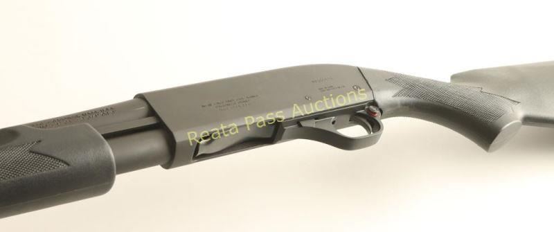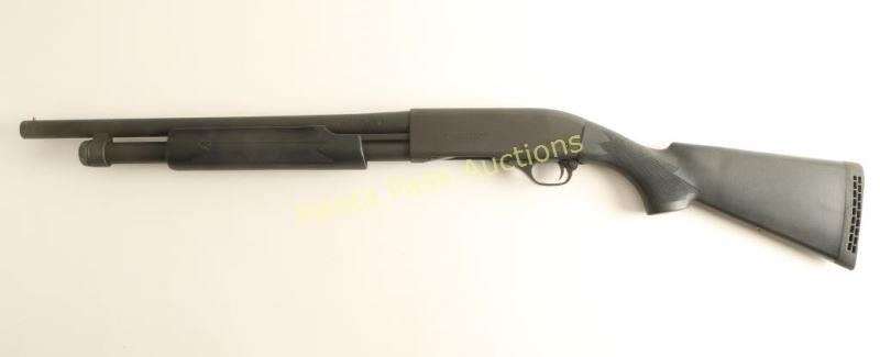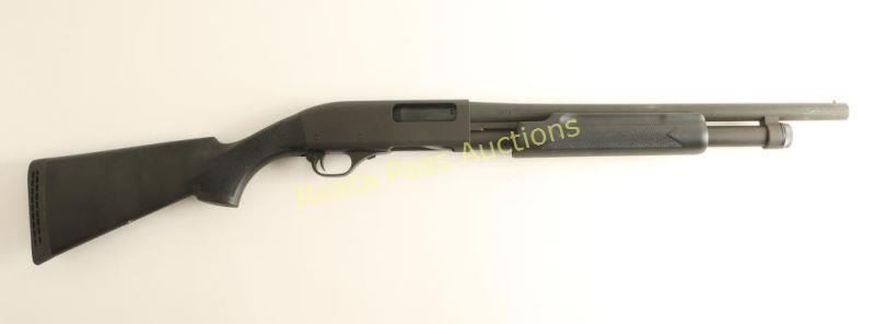 SN: NV506625 Chinese made slide action shotgun chambered for 2 3/4" & 3" 12 gauge shells. Features a parkerized finish, 18.5" barrel, 3/4 length tube magazine, brass bead front sight, smooth trigger, push button safety, checkered black synthetic slide handle and pistol grip shoulder stock with rubber recoil pad. Shotgun exhibits 96% of it's parkerized finish showing rubs and wear near the muzzle, Action is smooth, bore is excellent and synthetic stocks are fine. Condition is near excellent. ***Modern Firearm***
