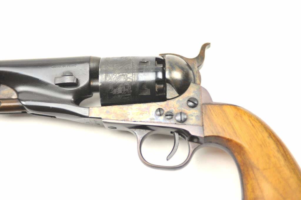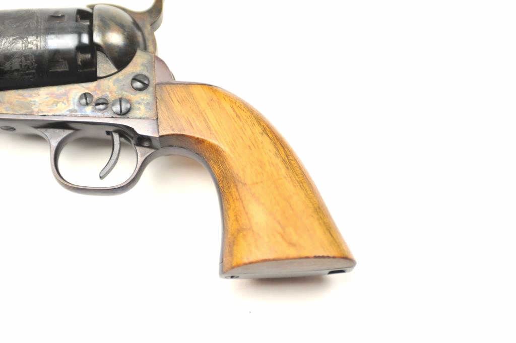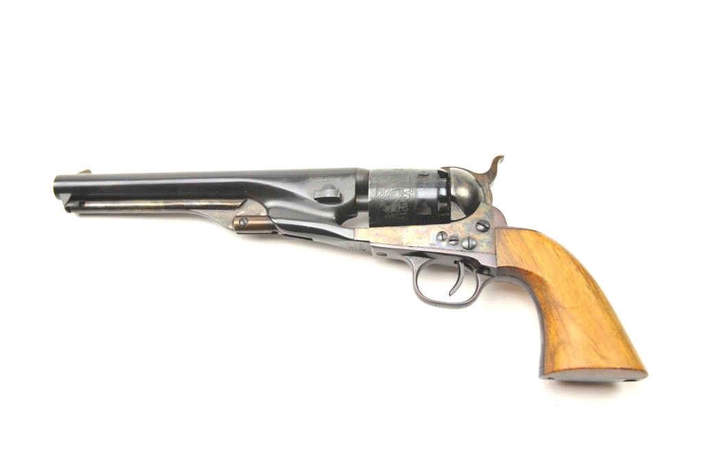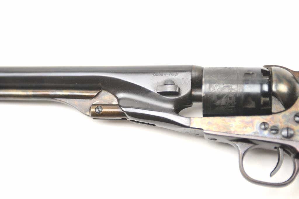 New Navy 1861 style percussion revolver in .36 caliber and made in Italy, S/N N1116. No importer or brand name indicating older 60-70s production. No evidence of firing but toning from storage and not quite mint.Excellent overall. (Percussion) Est.: $150-$300