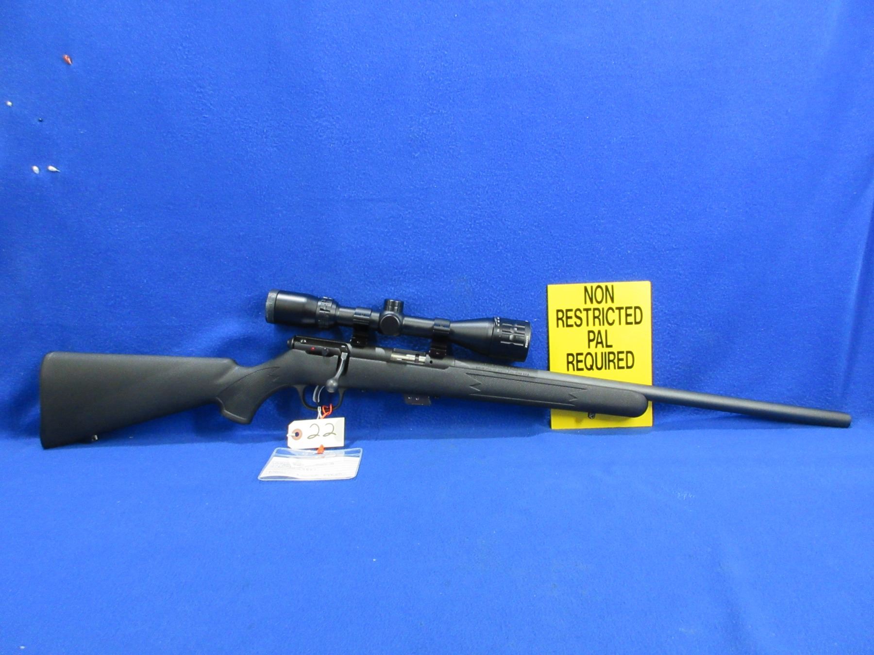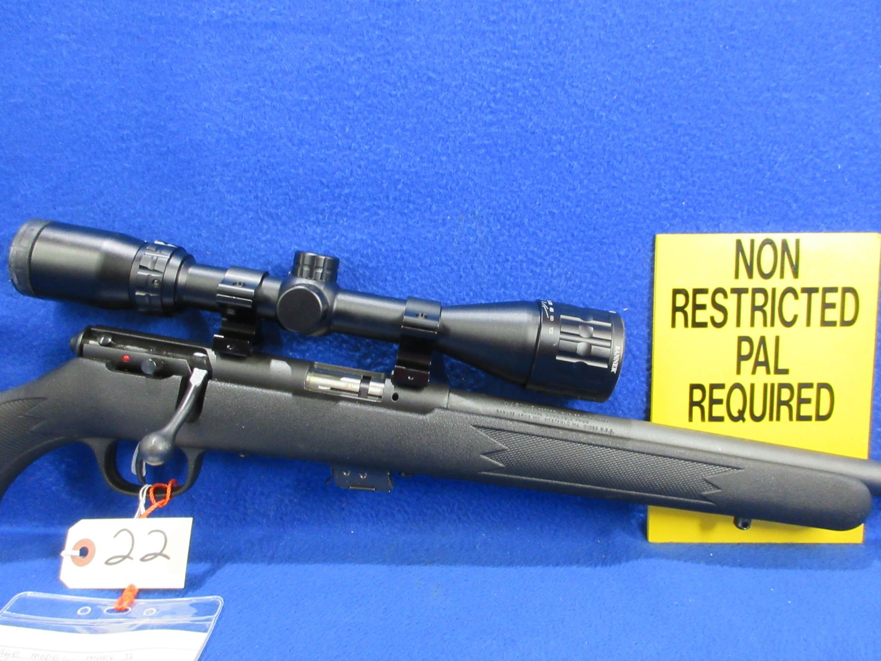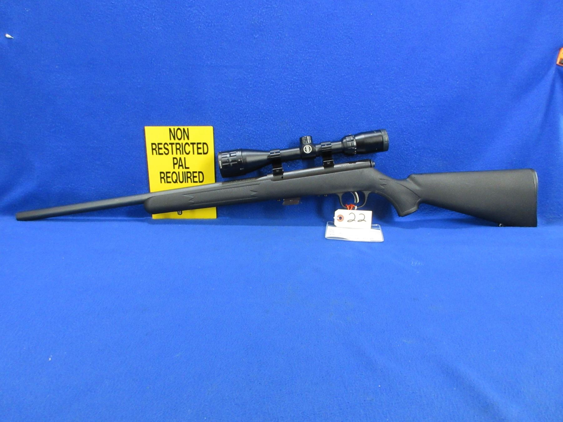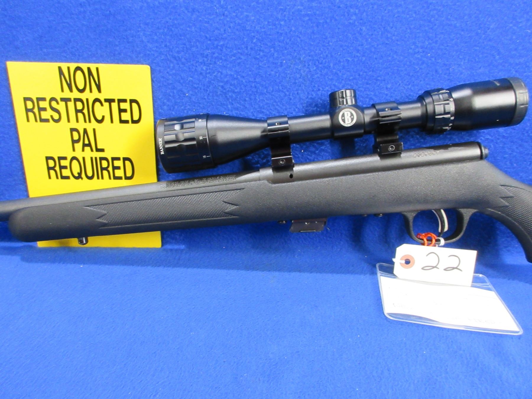 New - Non-Restricted - Savage Model Mk II in 17 Mach 2 - This bolt action rifle with removable magazine is new, never fired. Barrel is 21", has no sights but has Bushnell Banner 4-12x40 scope - appears clear, DOA Quick Ballistic Reticle. Synthetic stock, comes with lens caps and studs. Ser #2529887