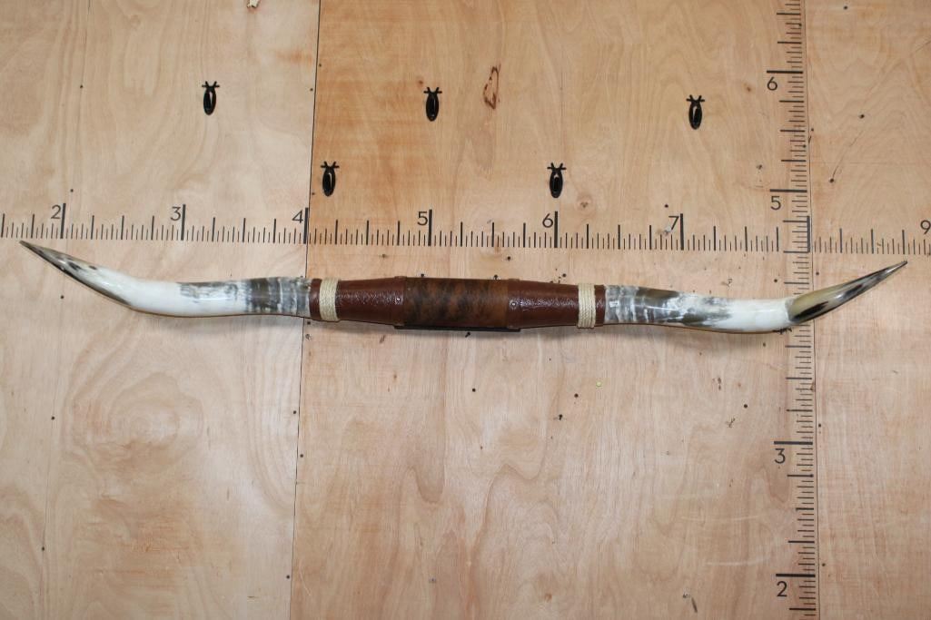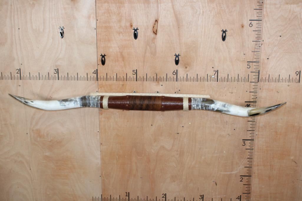 *New* XL Mounted LONGHORNS with Leather and Rope Accents. They measure 76.75" Long from Horn Tip to Tip. They are in Excellent Condition. DECORATIVE TAXIDERMY