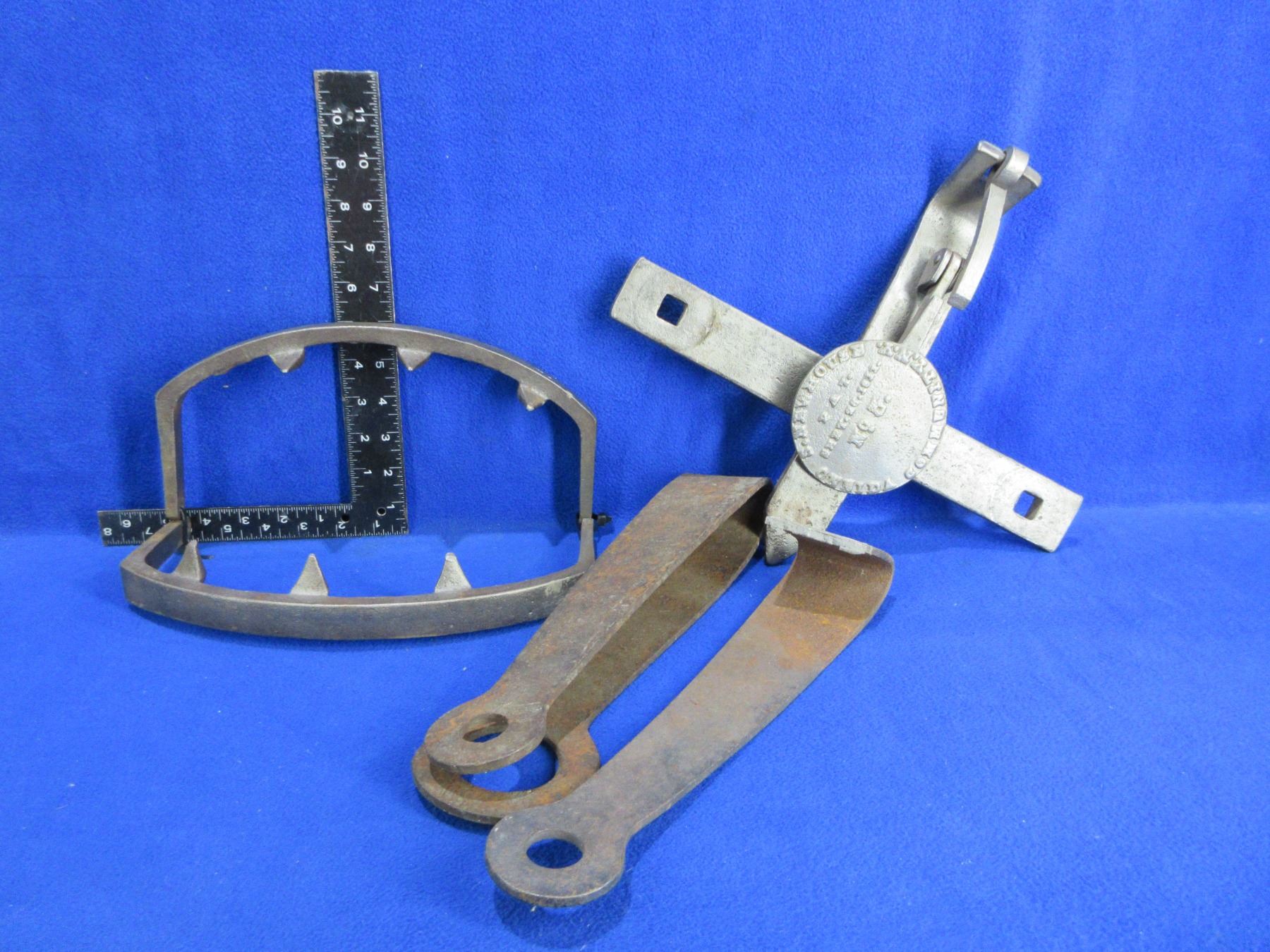 Newhouse Trap Parts - Oneida No. 5 Base with Pan Patent Date 1911, 2 Springs (1 is Broken), Jaws with Teeth