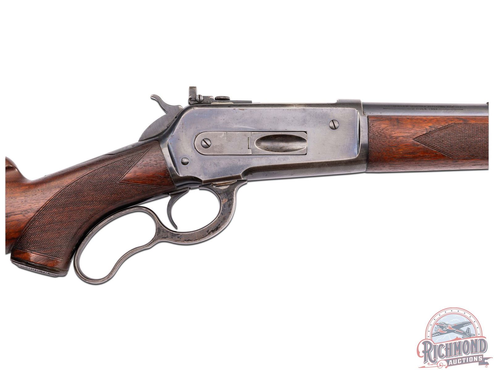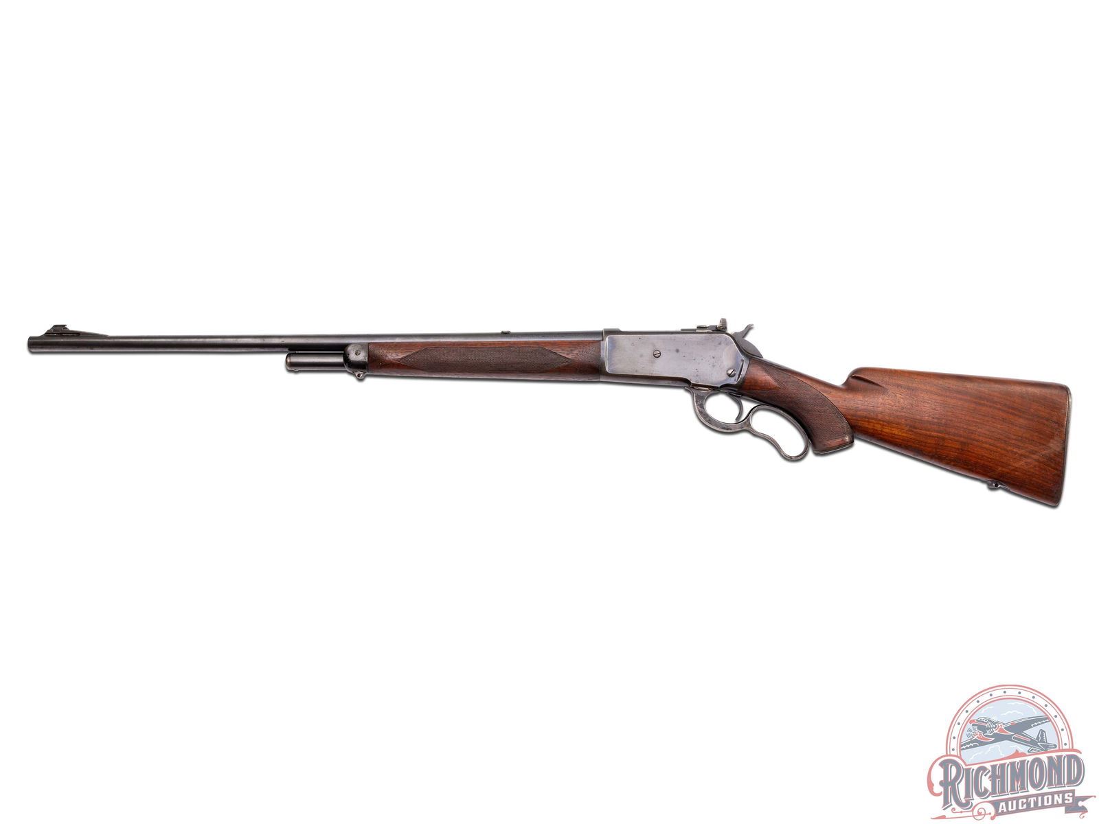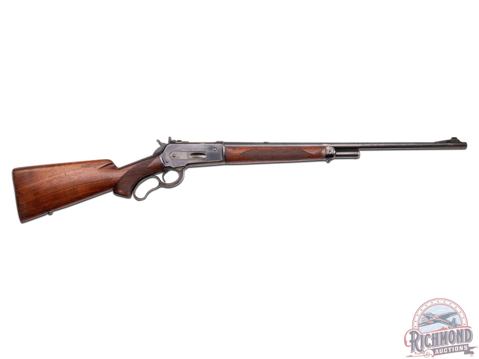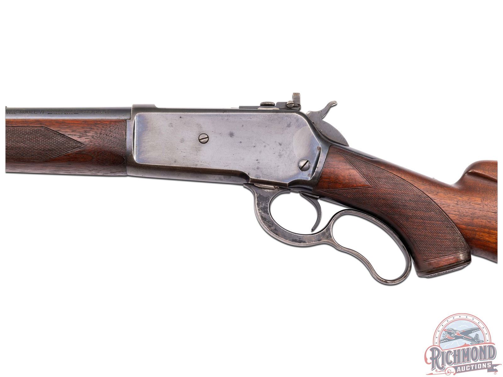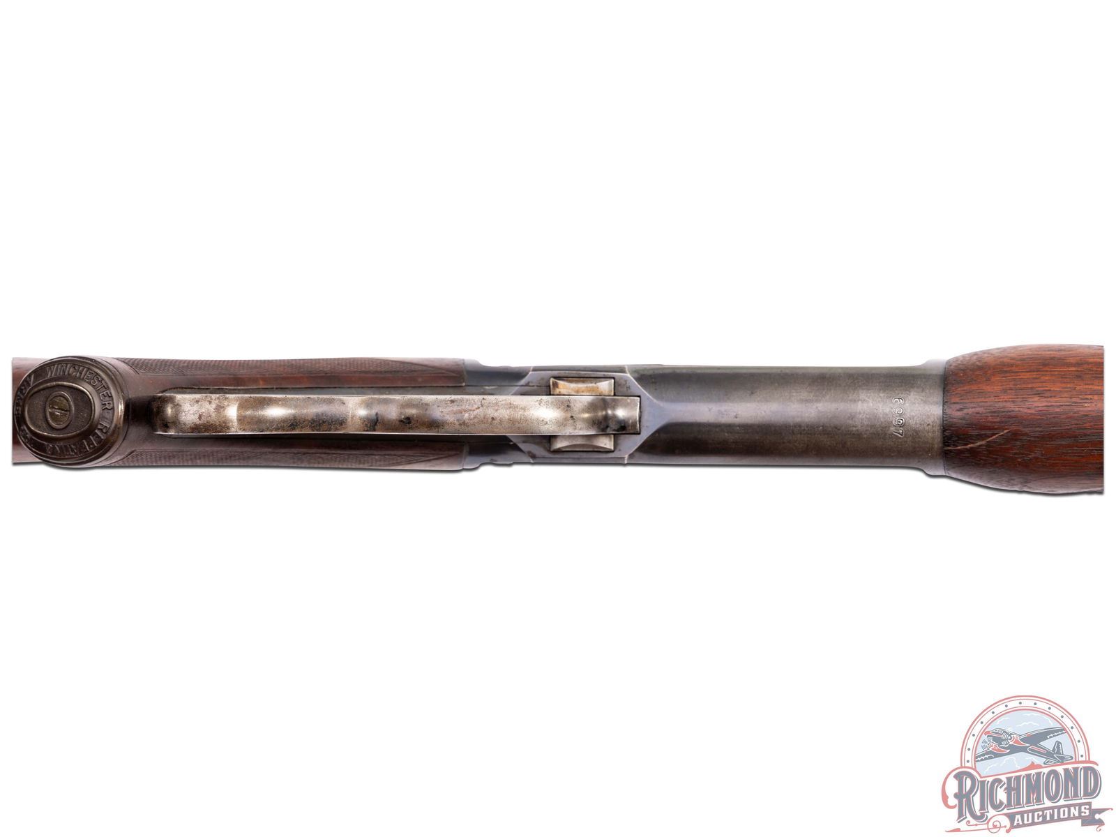 Manufactured in 1936 with all clear and standard Winchester roll marks and proof marks. Features a 24" blued barrel ramp blade front sight and bolt mounted rear adjustable peep sight. Blued receiver with side loading gate. Deluxe walnut stock with pistol grip and hand-checkering 18 LPI. Includes factory swivel mounts. Pistol grip with fitted factory metal pistol grip cap and checkered metal butt plate. LOP: 13-1/4". CALIBER: 348 WCF. S/N: 6997. FFL STATUS: Curio & Relic.