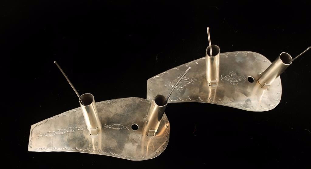 Used for shoulder feather decoration, stamped with a triangle design 'WS'.