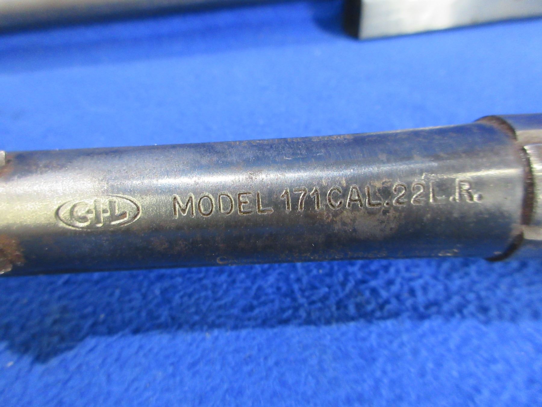 Non-Restricted - 2 Barreled Actions - CIL Model 171 in 22 LR (21" Barrels) - These are barrels and actions only. Rifling is good on 1 and fair to good on the other (may need wet cleaning), bluing is mostly gone with some rust and pitting on both, no sights on both. Ser #'s 11048 and 18499