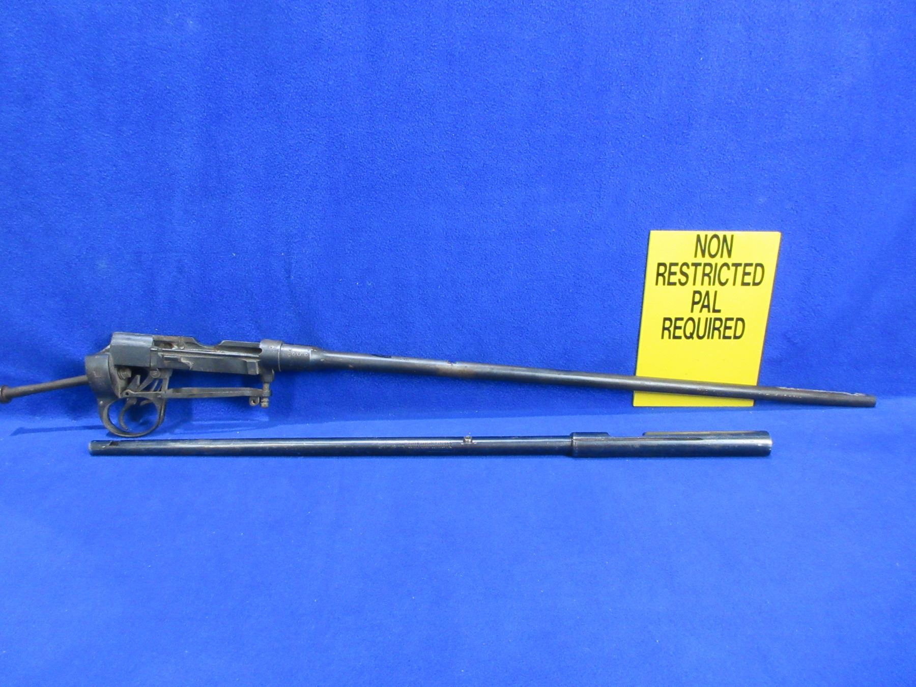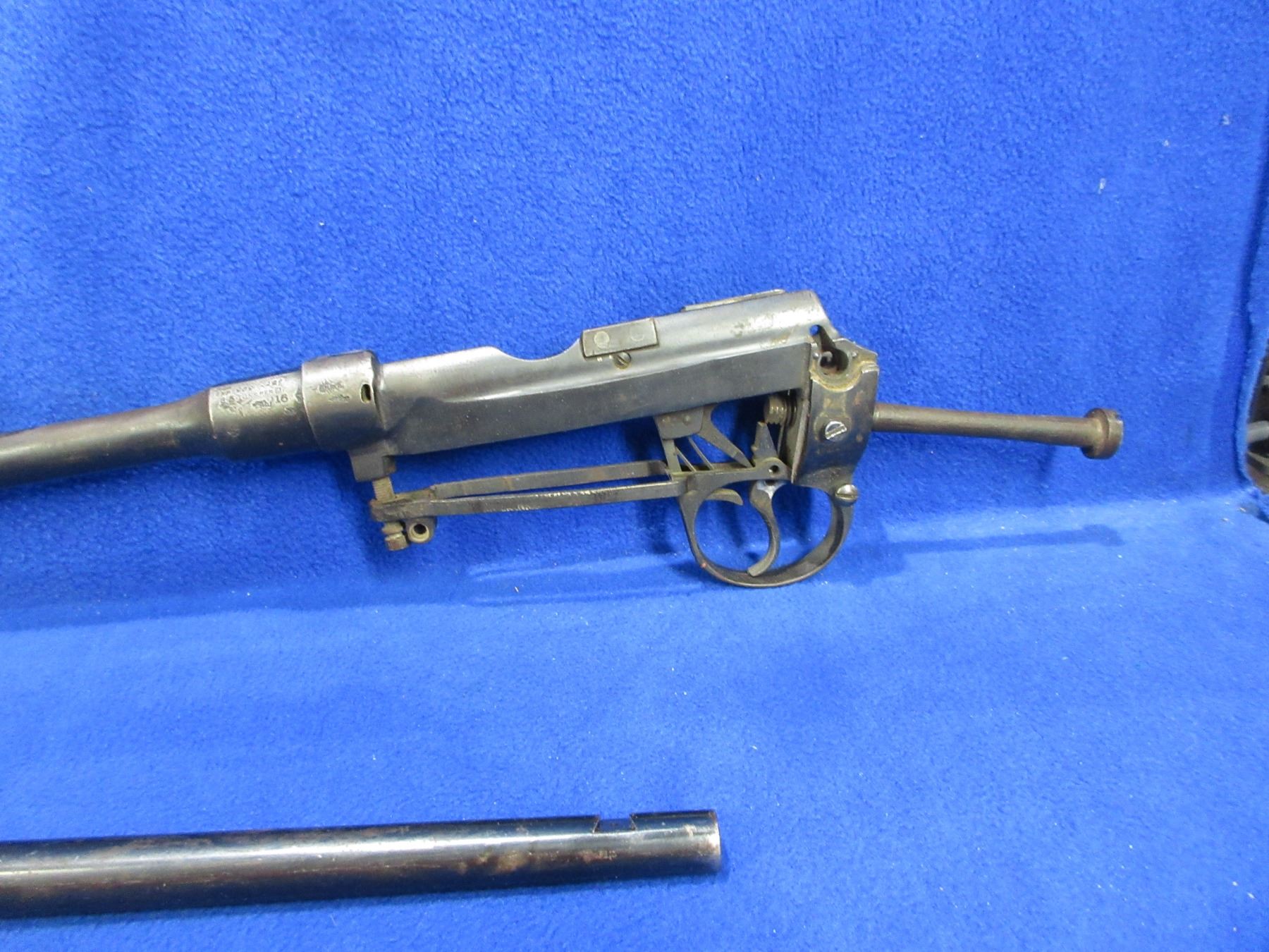 Non Restricted - 22LR Lakefield Mossberg Mark II Repeater Barrel & 303 British Lee Enfield Shtle III Barrel and Action - Lakefield Barrel is 19", bluing is fair to good with light scratches, light pitting and wear spots, sights are missing. Enfield barrel is 25", rifling is fair (needs wet cleaning), bluing is fair with pitting and wear spots, sights are missing, ser. # 7936