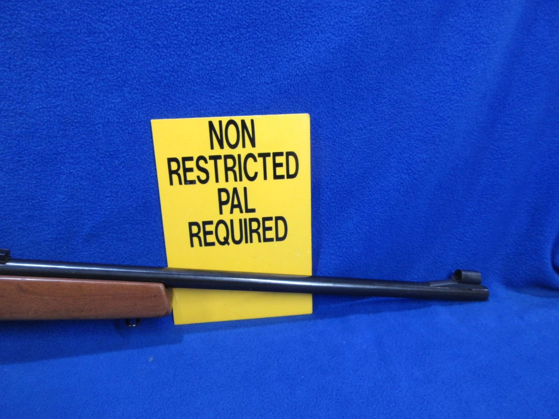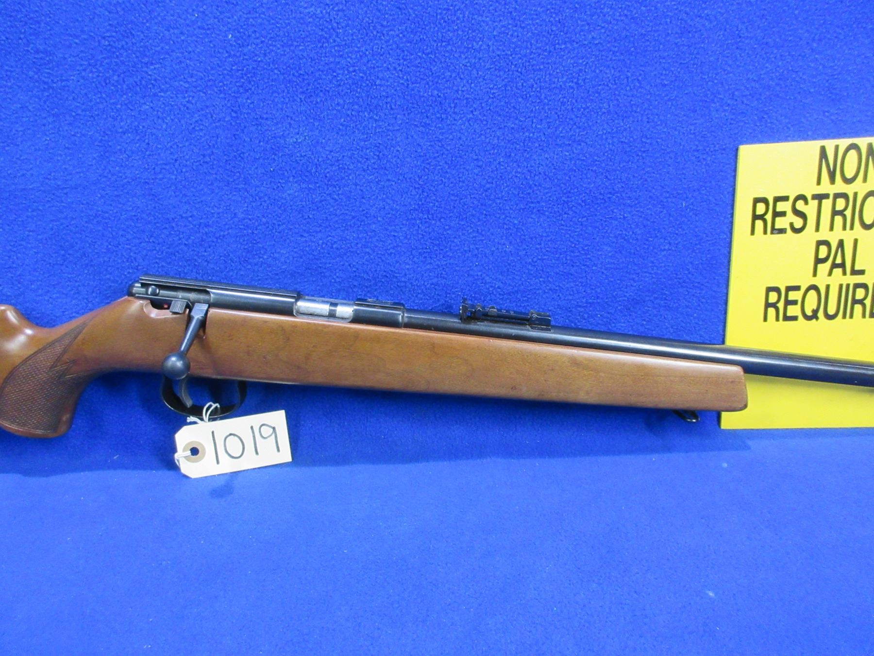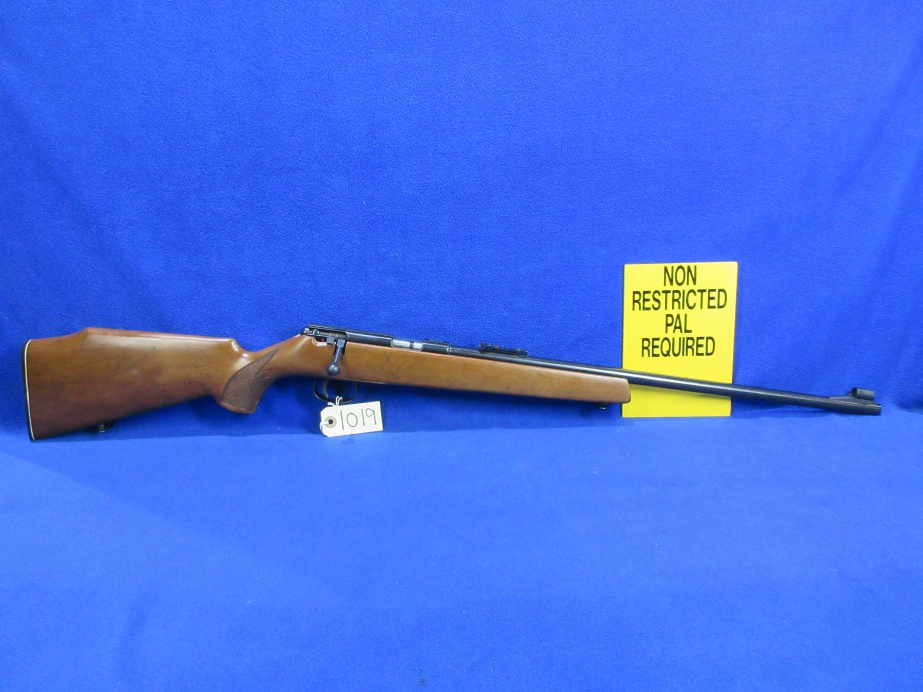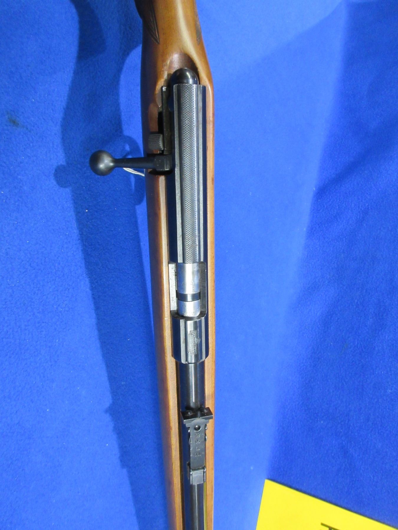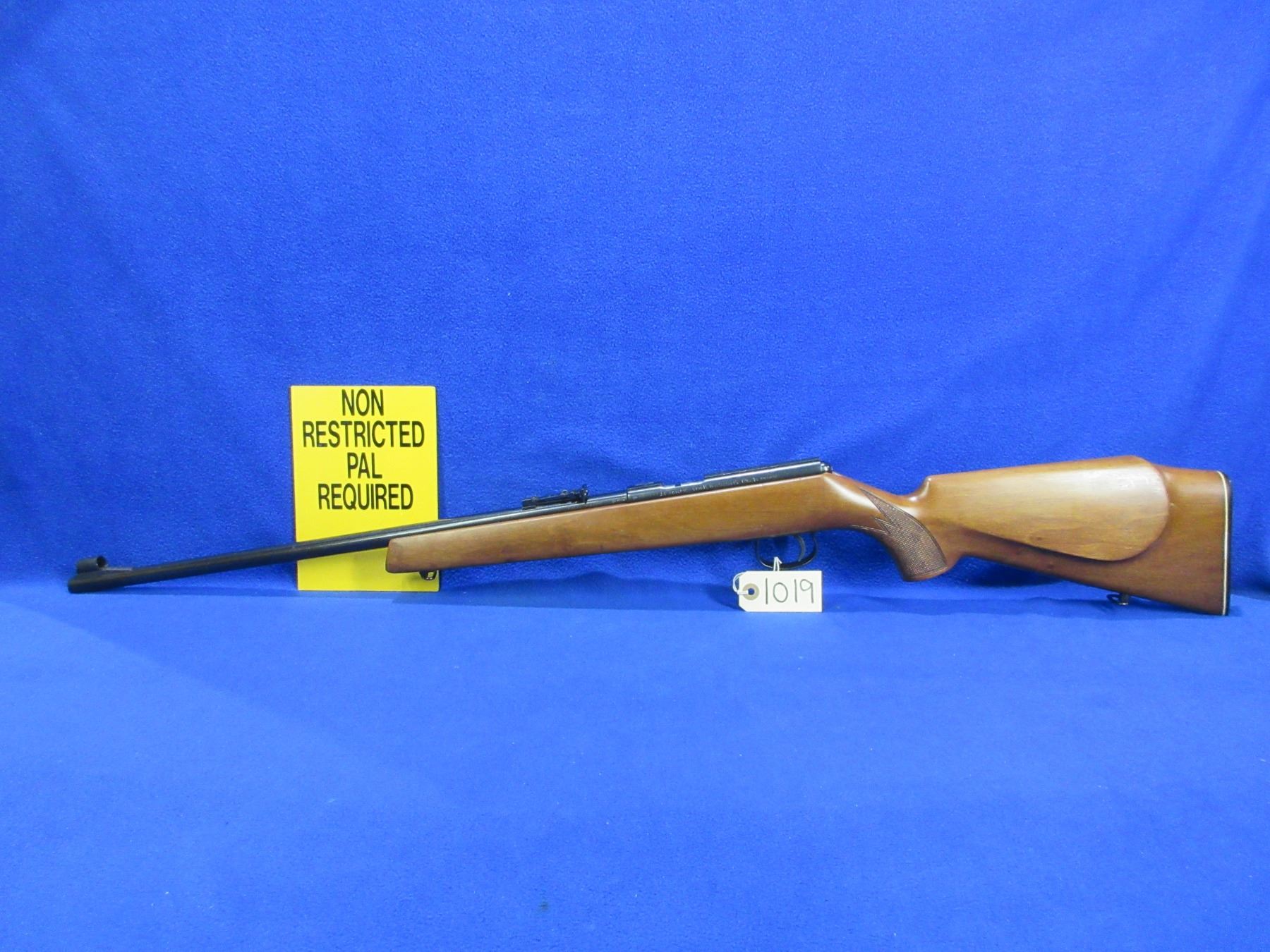 Non-Restricted - Anschutz Single Shot in 22 LR - This is a bolt action Single Shot rifle, action appears to be in good to very good working order. Barrel is 21 3/4", rifling is good to very good, bluing is good, has both sights and integral 22 rail, stock is good with usage marks, length of pull is 13 3/4", butt plate good, comes with swivels. Ser # 558567