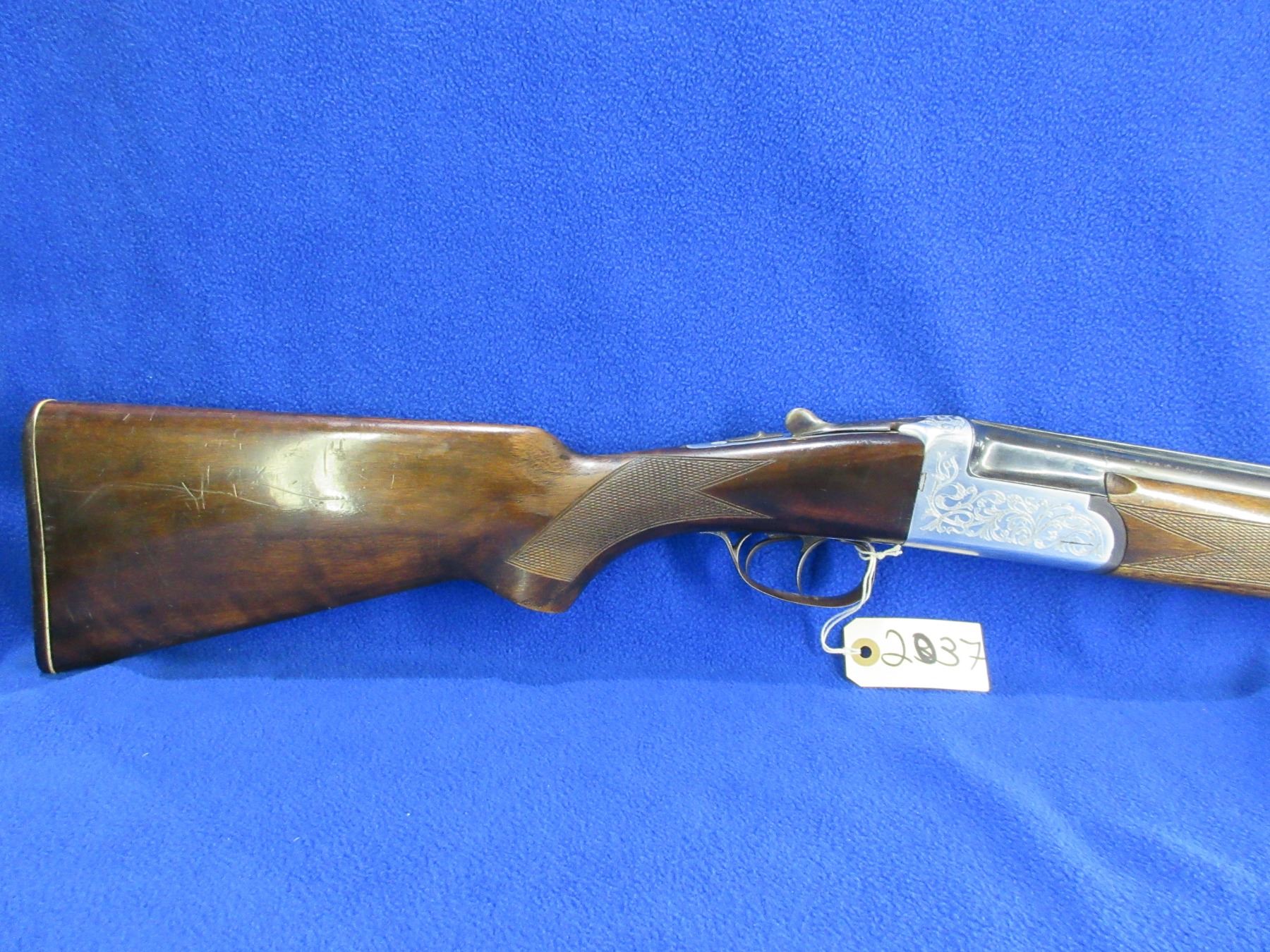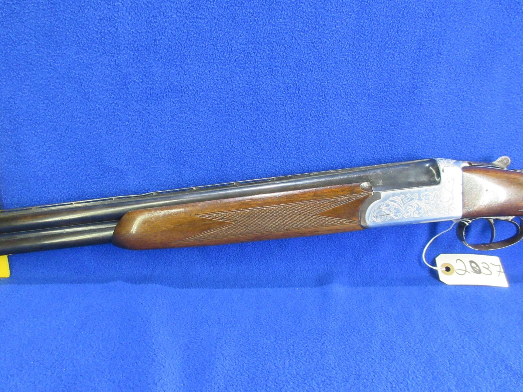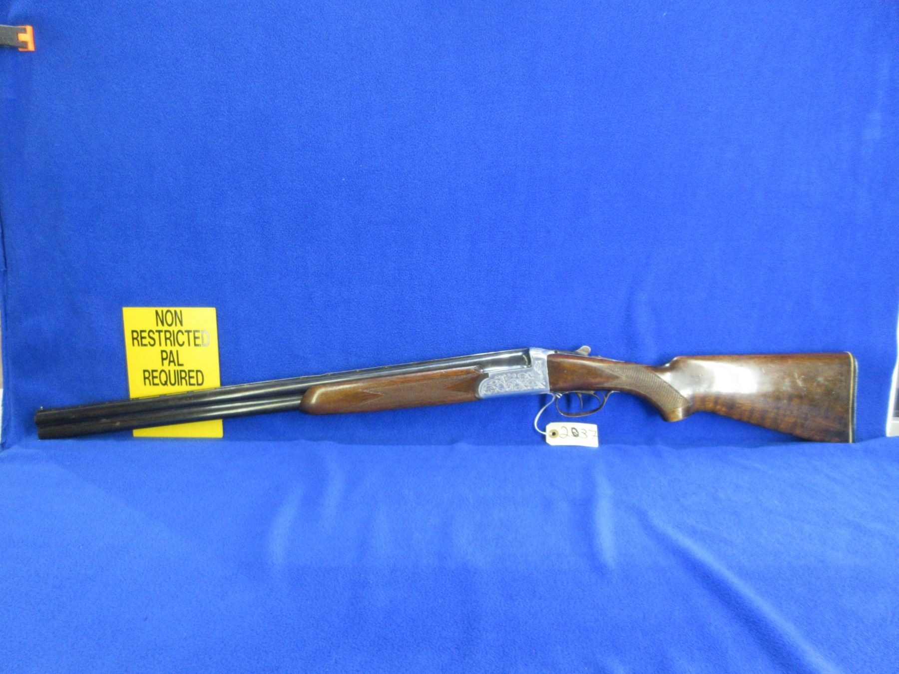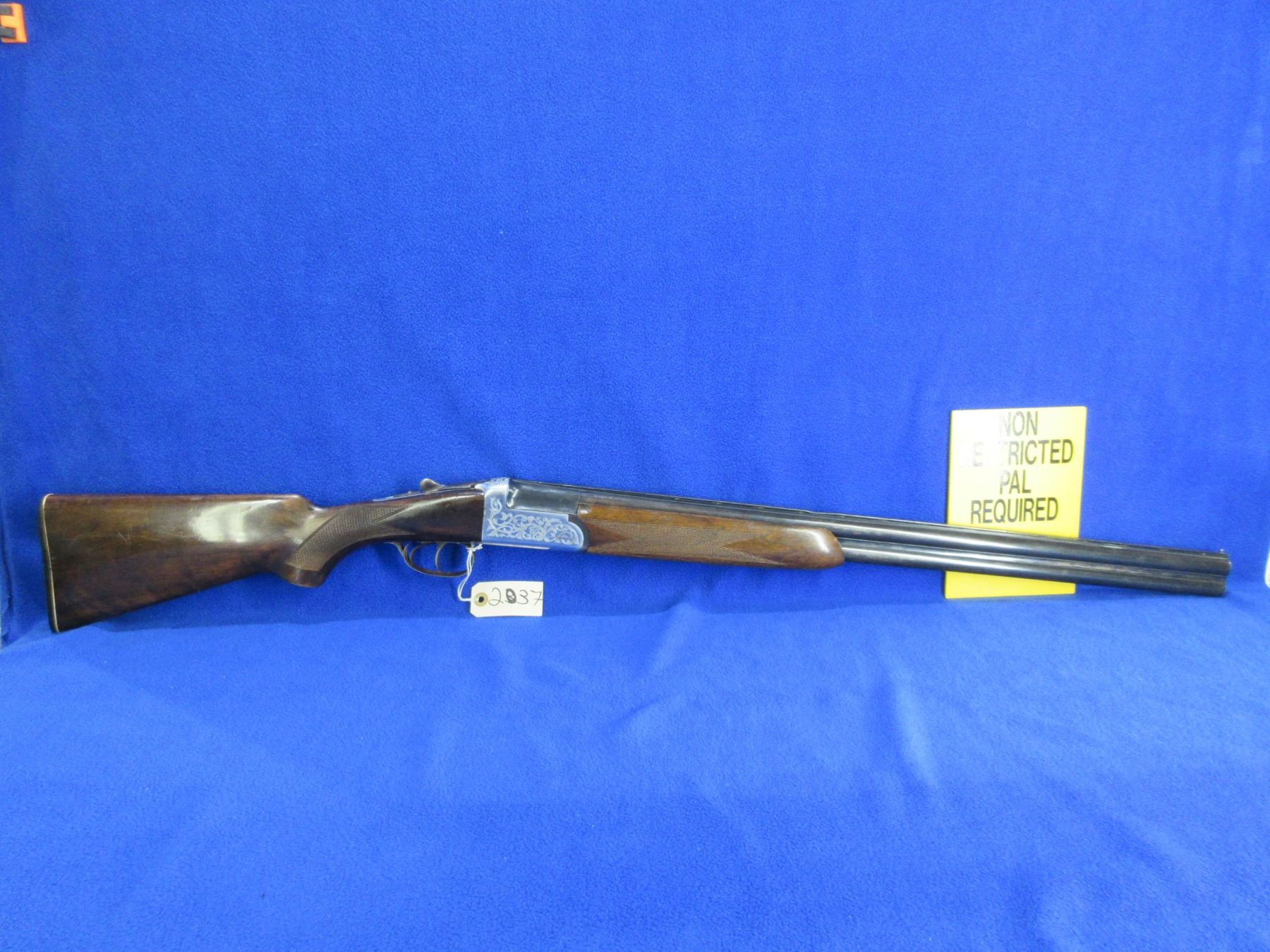 Non-Restricted - Armi e Contento Brescia in 12 Ga. 2 3/4" - This is an over/under shotgun, nicely engraved action is tight and appears to be in good to very good working order. Vent rib barrels are 27 5/8" - one rib is bent, bores are good but bottom barrel has a very small dent approx 6" from muzzle, bluing is turning brown with wear spots, has bead front sight, stock is good with usage marks, length of pull is 14", forearm is good with usage marks, butt plate good. Ser # 6960
