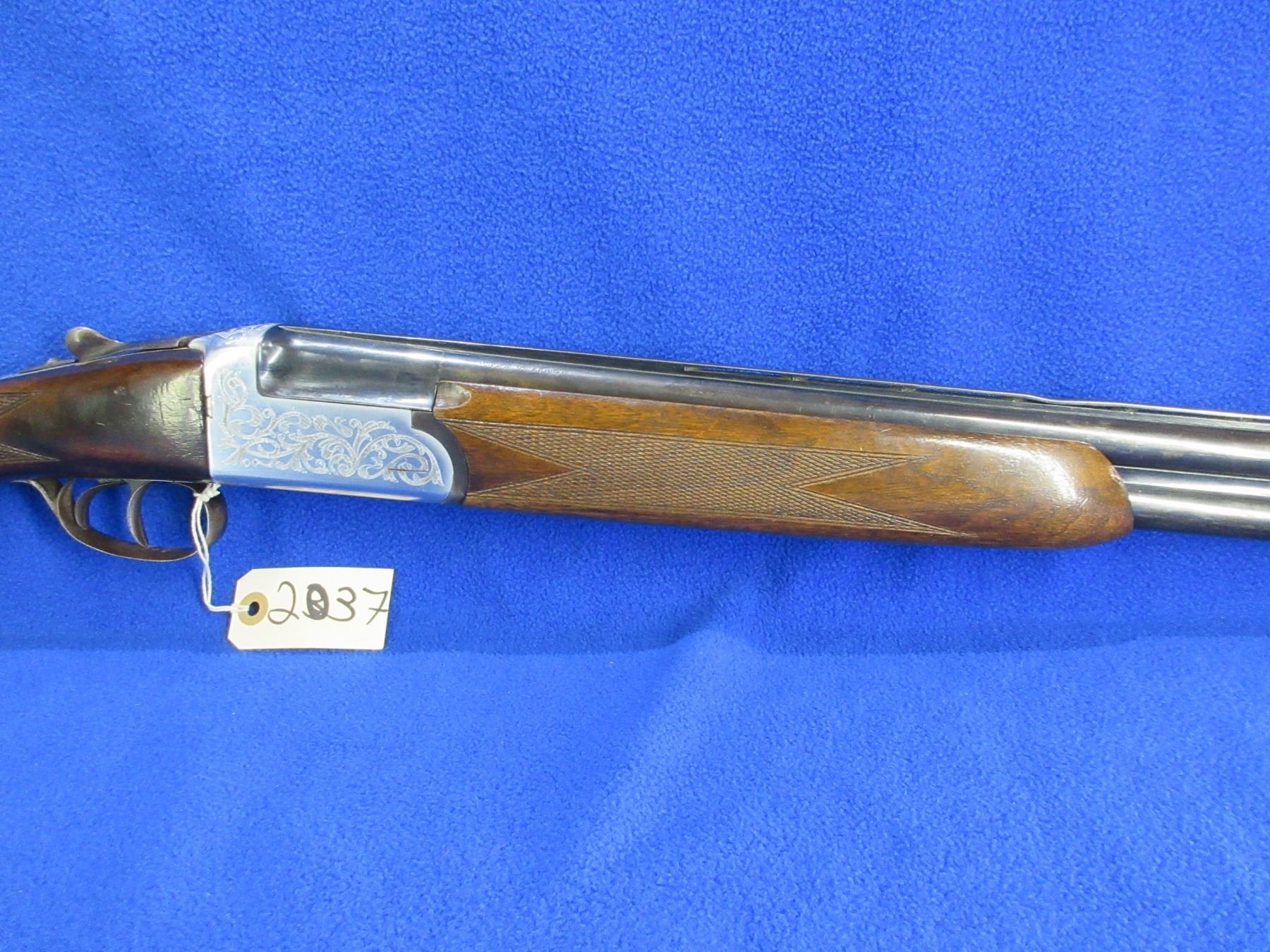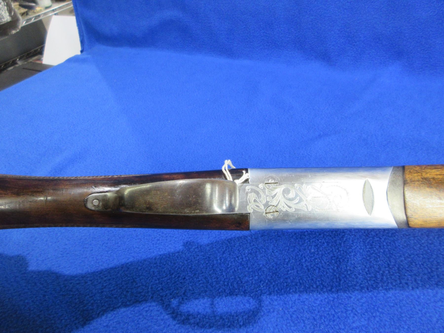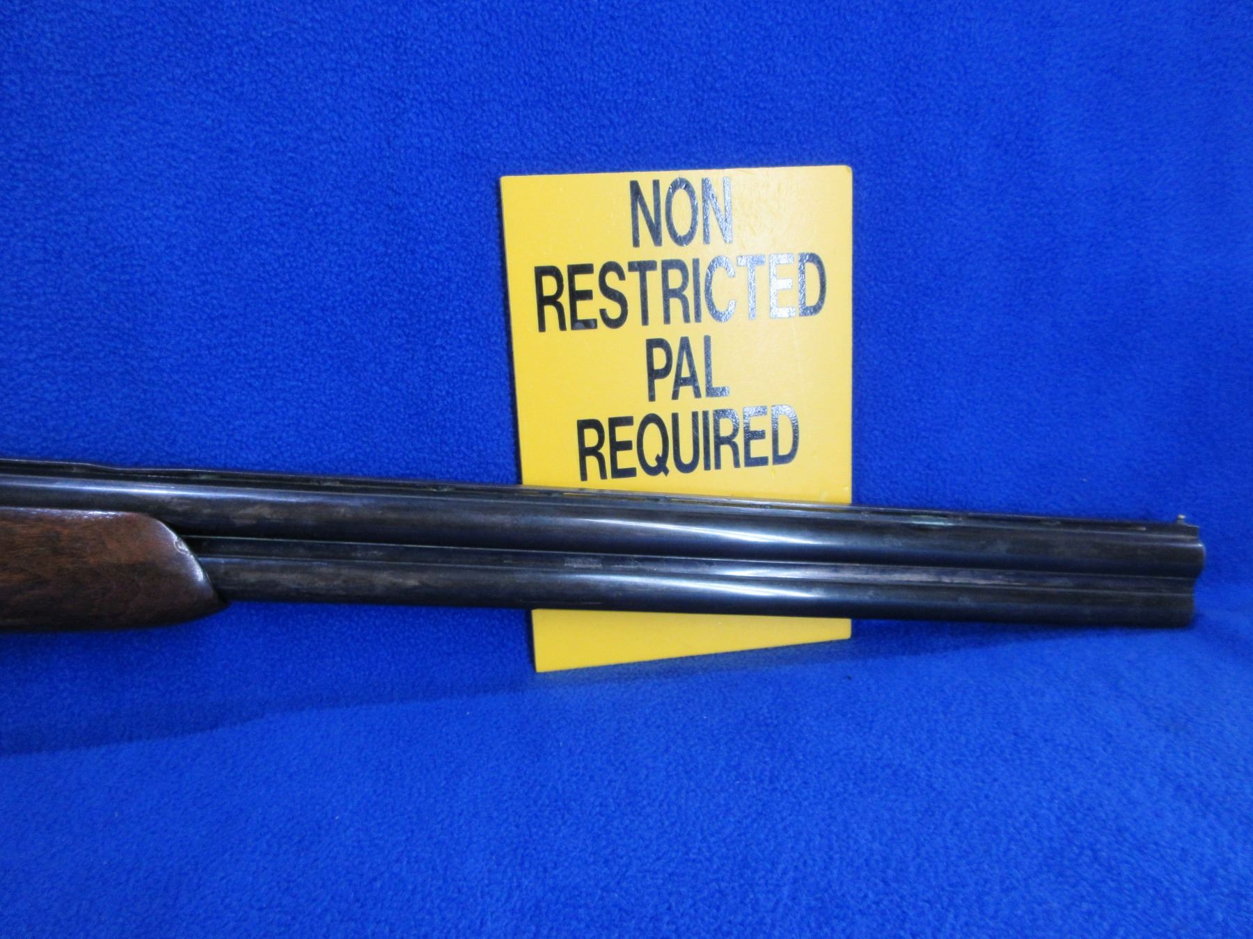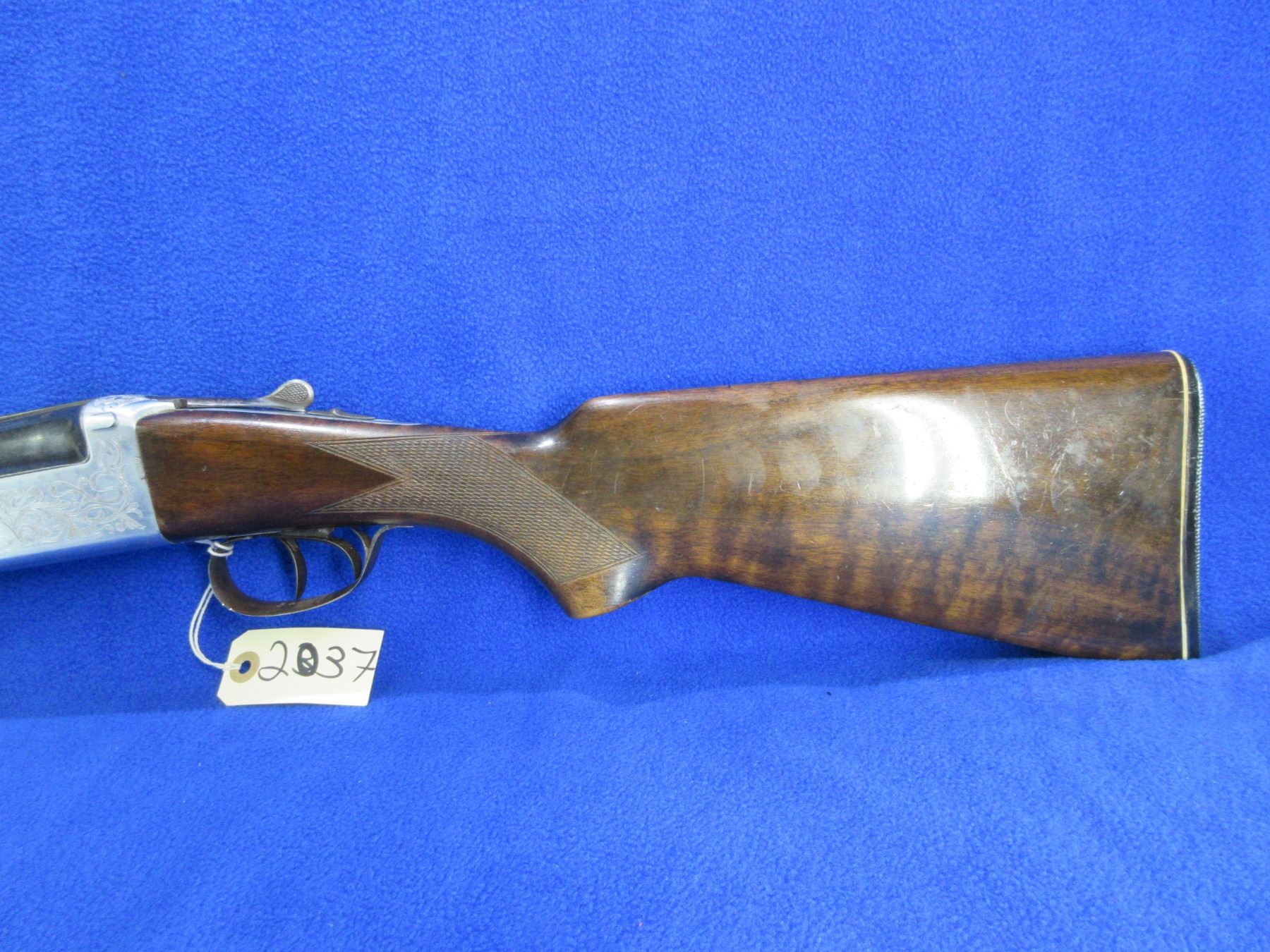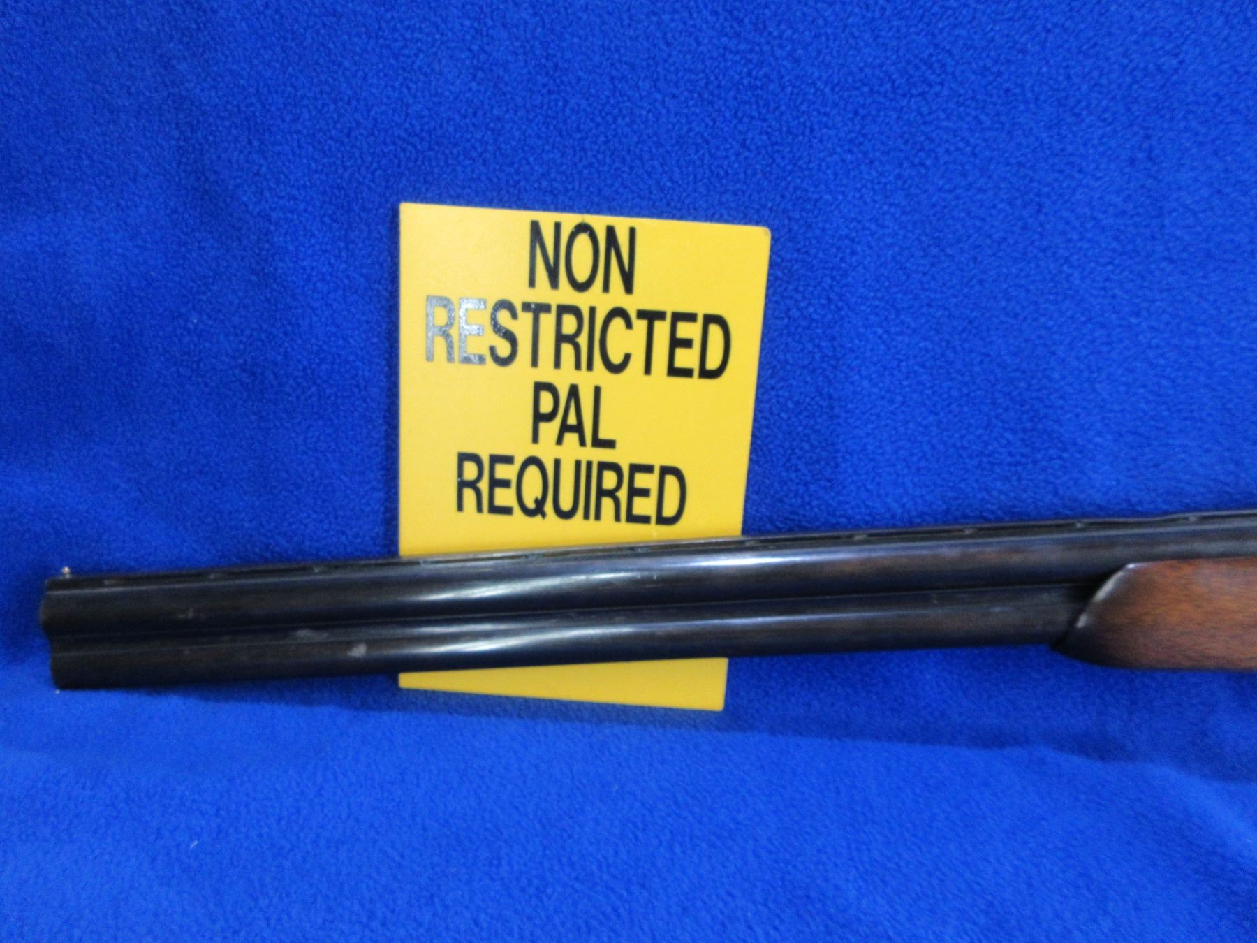 Non-Restricted - Armi e Contento Brescia in 12 Ga. 2 3/4" - This is an over/under shotgun, nicely engraved action is tight and appears to be in good to very good working order. Vent rib barrels are 27 5/8" - one rib is bent, bores are good but bottom barrel has a very small dent approx 6" from muzzle, bluing is turning brown with wear spots, has bead front sight, stock is good with usage marks, length of pull is 14", forearm is good with usage marks, butt plate good. Ser # 6960