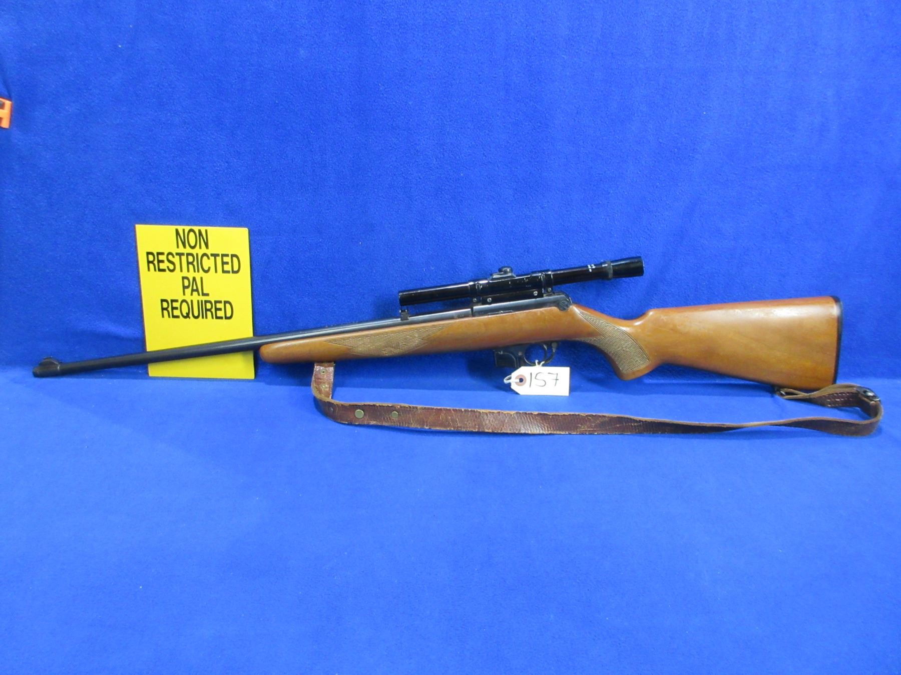 Non-Restricted - BRNO Model 581 in 22 LR - This semi-auto rifle with removable magazine appears to be in good to very good working order. Barrel is 22", rifling is good to very good, bluing is good, has both sights and a Bushnell 4x Sportview 22 scope - appears cloudy - standard reticle, stock is good with usage marks, butt plate good, comes with swivels and leather strap. Ser # O9666