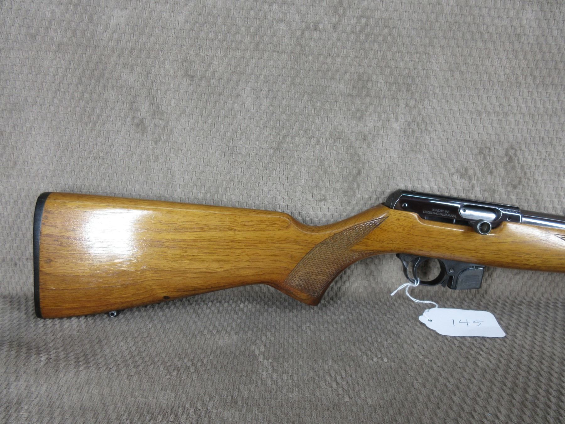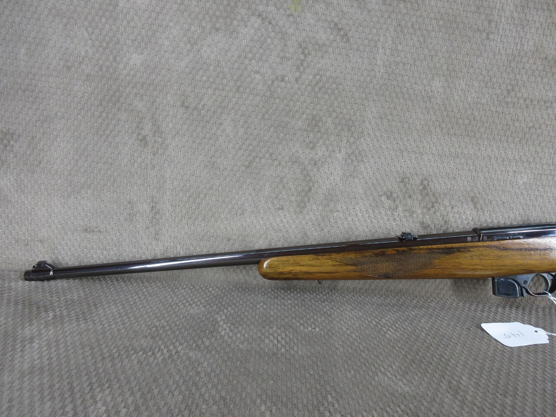 Non-Restricted - BRNO Model 581 in 22 Long Rilfe. This semi-auto rifle comes with an eight shot magazine and appears to be in very good working order. This gun has been reblued to a highly polished finish and the wood is in very good to excellent condition.
