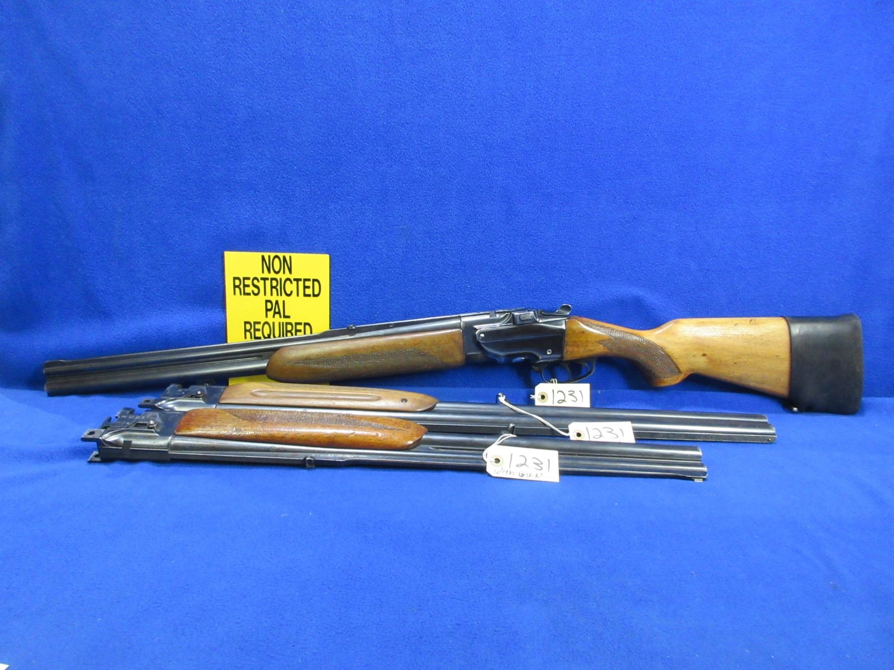 Non-Restricted - BRNO ZH Combo in 12 Ga. 2 3/4"/7X57R - This is a tip up combo shotgun/rifle with 2 extra barrels (12 Ga. barrels and extra 12ga./7X57R barrels), action appears to be in good to very good working order. Shotgun/rifle barrels are 23 1/2" - bore is good, rifling is good to very good, bluing is good, has rear sight, front sight is missing, forearm is good with usage marks - model ZH 104 - serial # 402498. 12 Ga. barrels are 27 1/2", bores are good, bluing is good with some very light pitting and wear spots, has front bead sight, forearm is good to very good with usage marks - model ZH 101 - serial # 122075. Extra shotgun/rifle barrels are 23 1/2" - bore is good, rifling is fair to good, bluing is good with some light pitting, has both sights, forearm is good with usage marks - model ZH 104 - serial # 402697. Action bluing has usage wear and is speckled, stock is good with usage marks, length of pull is 14 1/2", slip on recoil pad good, comes with swivels on stock and all 3 barrels. Ser # OO6922