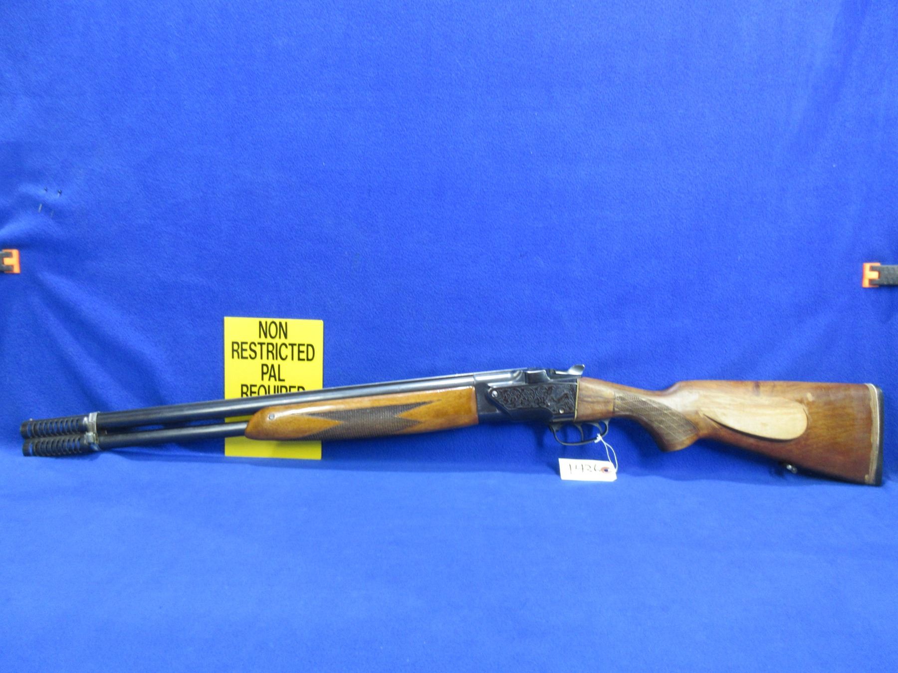 Non-Restricted - BRNO Model ZH102 in 12 Ga. 2 3/4" - This over/under shotgun appears to be in working order but should not be fired as it has a clamp holding the barrels together. Solid rib barrels are 26" and are held together with a pipe clamp as there is a crack between the two muzzles, bores are good to very good, bluing is good to very good, has front and rear bead sights, stock appears to be poorly modified and incorrectly fitted with crack and chip repair, forearm has been attached with a bolt, butt plate good, comes with rear swivel. Ser # 201436
