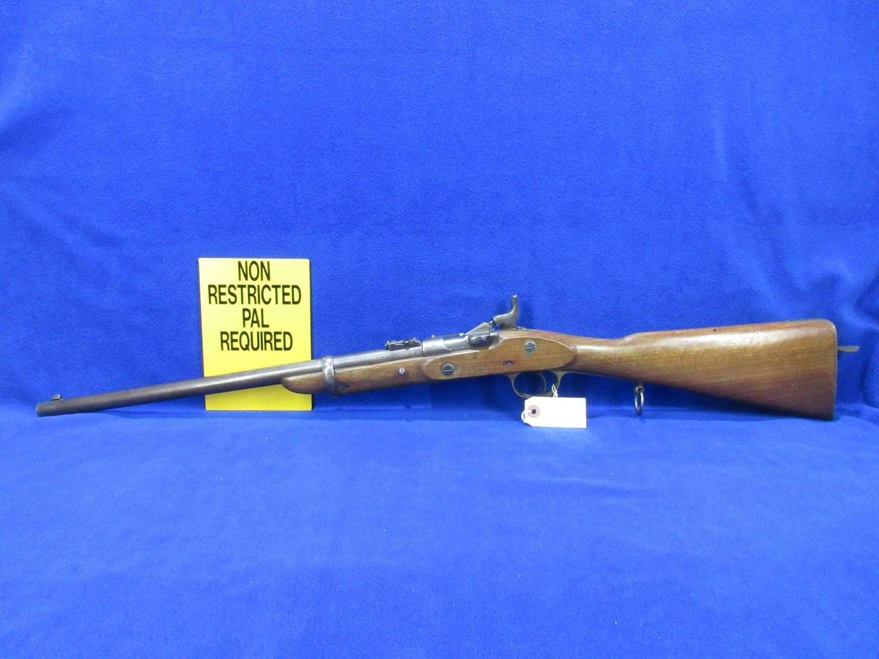 Non-Restricted - BSA & M Co. 1875 Carbine in 577 Snider - This single shot breach loading rifle appears to be in good to very good working order. Barrel is 19 1/4", rifling is good to very good as it needs cleaning, bluing is brown and fading, has both sights, stock is good to very good for age, brass butt plate good, comes with a saddle ring and original 2 piece cleaning rod in butt stock. Ser # C536