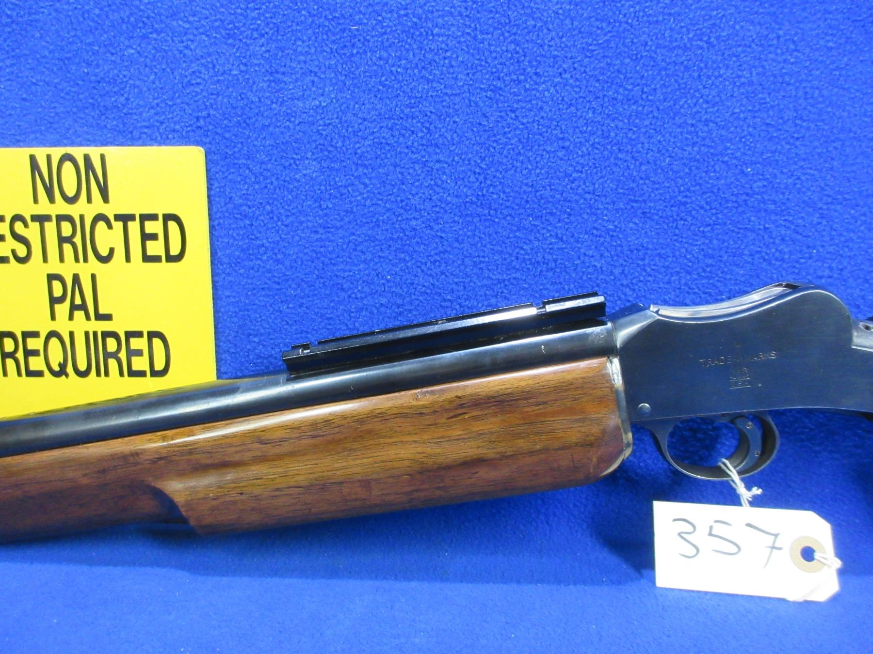 Non-Restricted - BSA Martini Falling Block in 22 LR - This is a single shot falling block rifle, action appears to be in good to very good working order. Eric Johnson heavy barrel is 19", rifling is good to very good, bluing is good, sights are missing but has a Weaver style base, stock and forearm are good with minor usage marks, length of pull is 14 3/4", rubber butt plate good. Ser # 45250