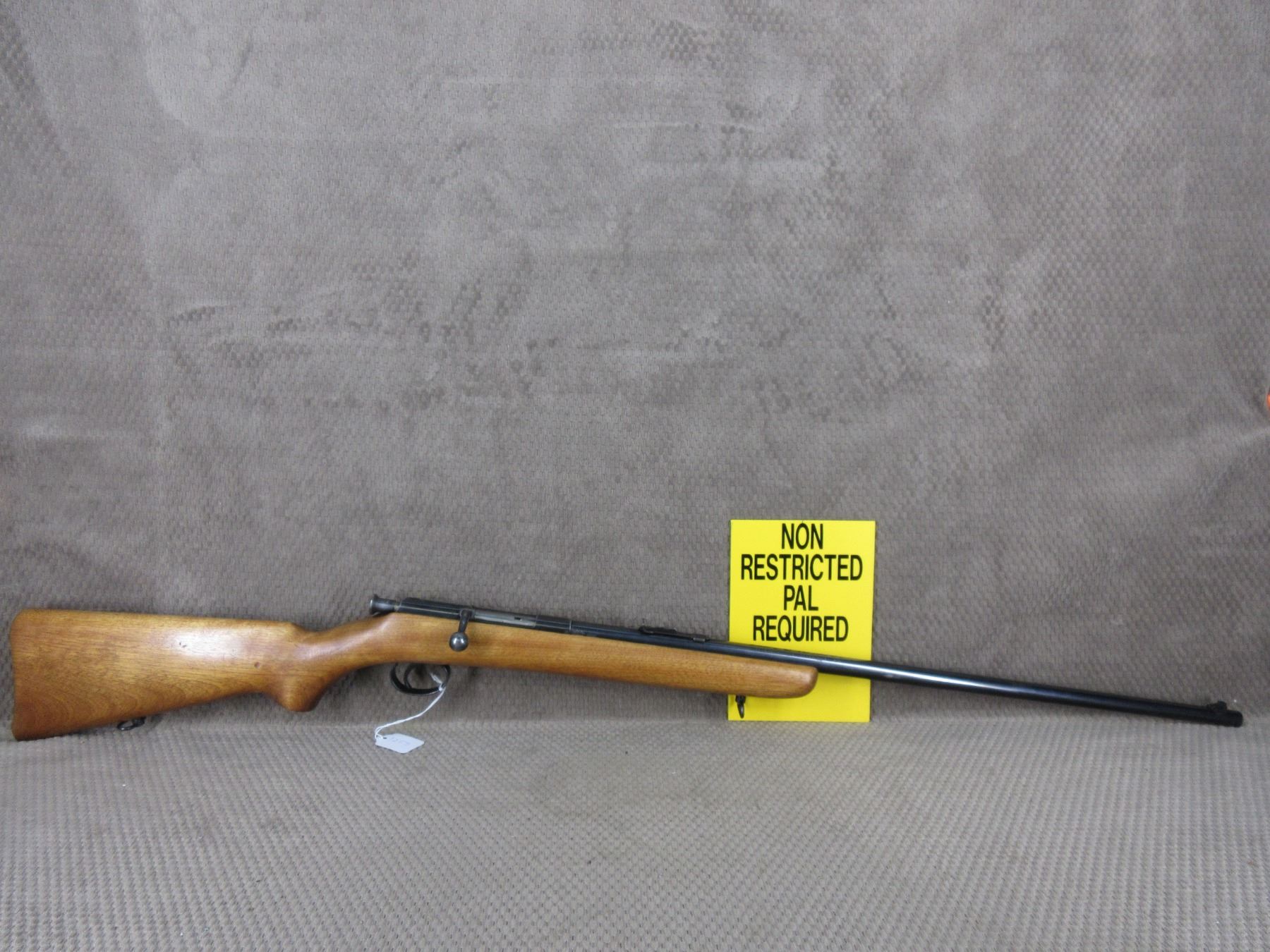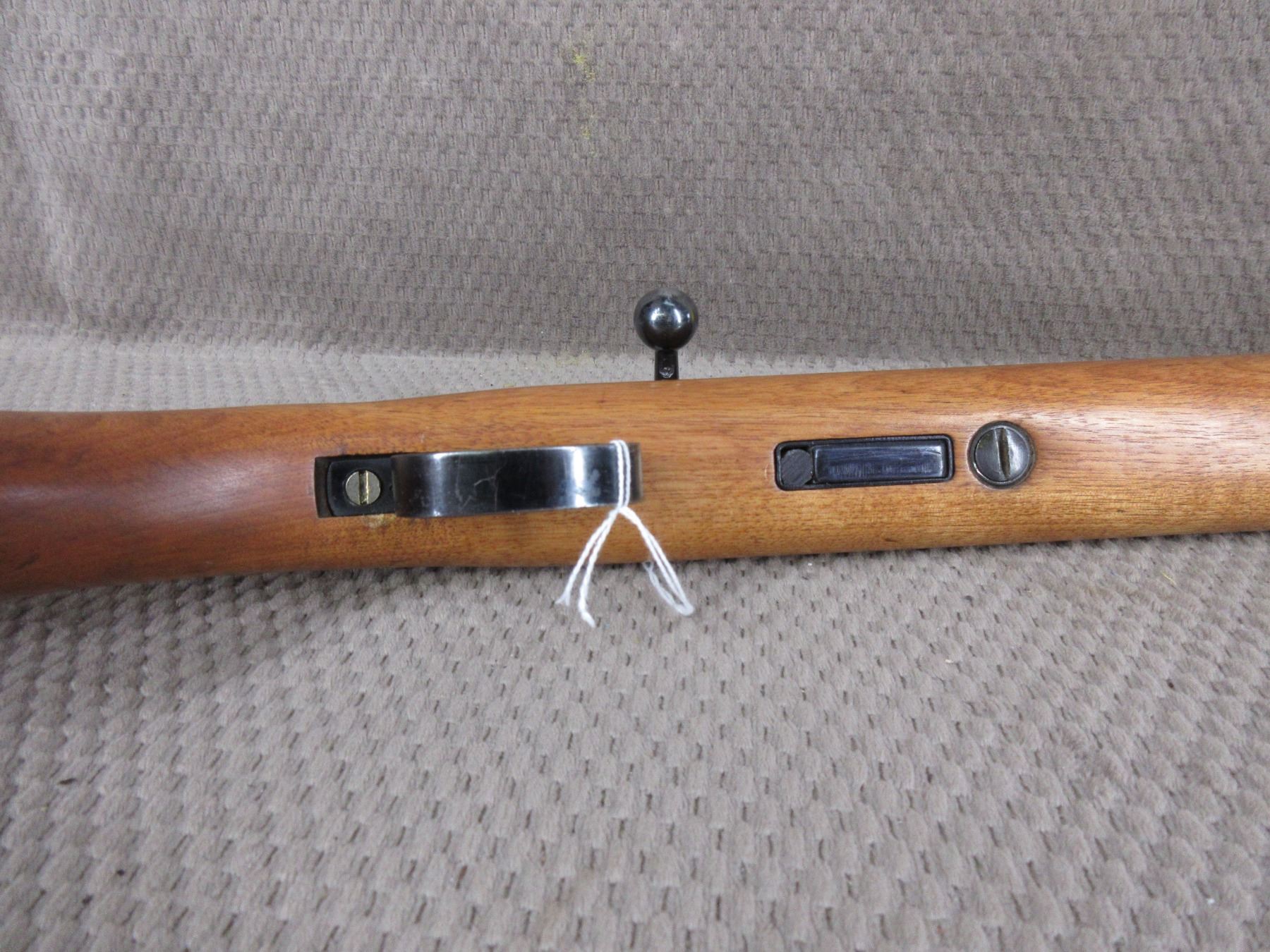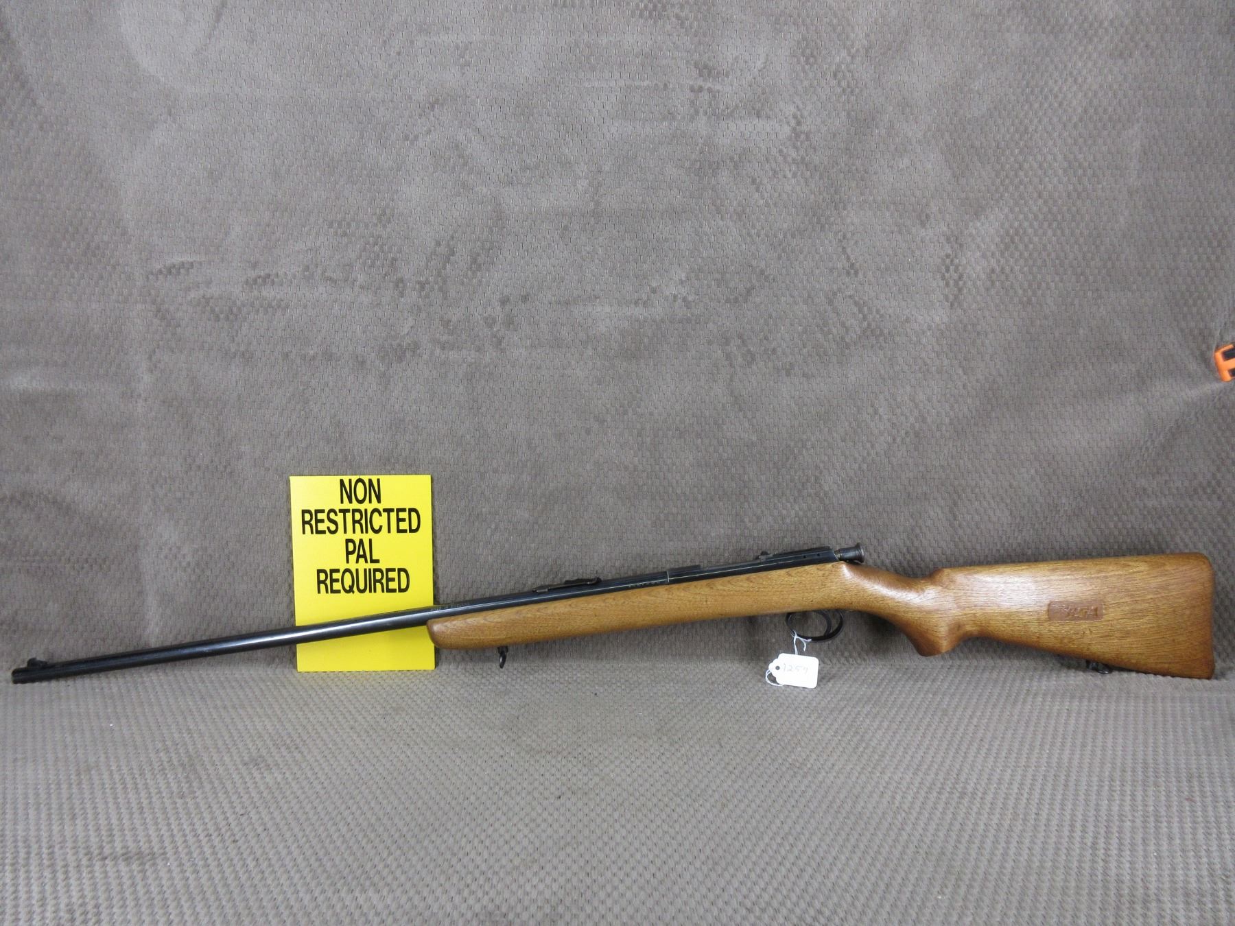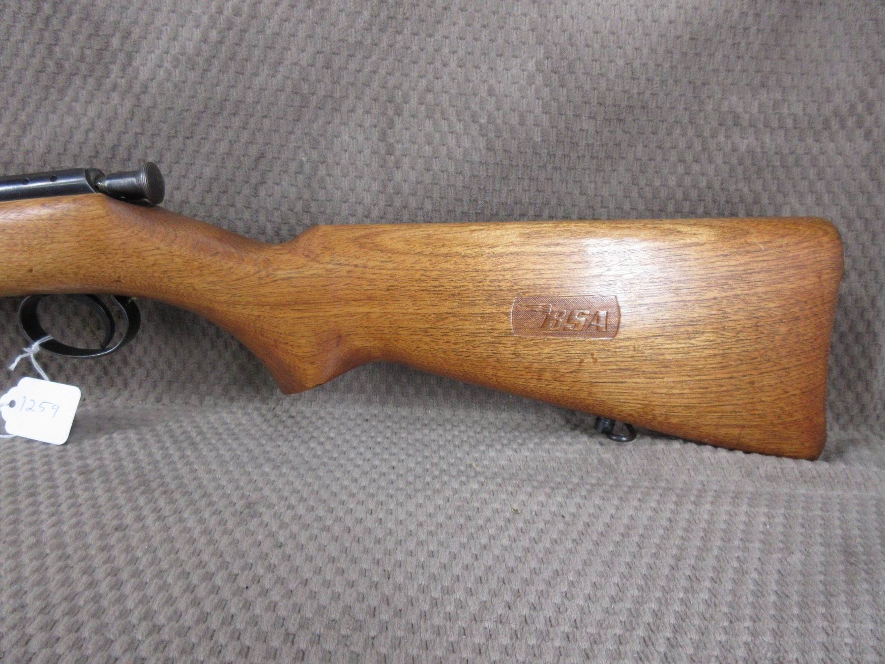 Non-Restricted - BSA Sportsman Five in 22 Long Rifle - This bolt action rifle was converted to a single shot from a magazine feed and appears to be in good to very good working order. Barrel 25", bluing is good to very good with some marks, rifling is good to very good, has both sights, wood stock is very good, has swivels, Ser # KD61398. May be able to convert back to magazine.