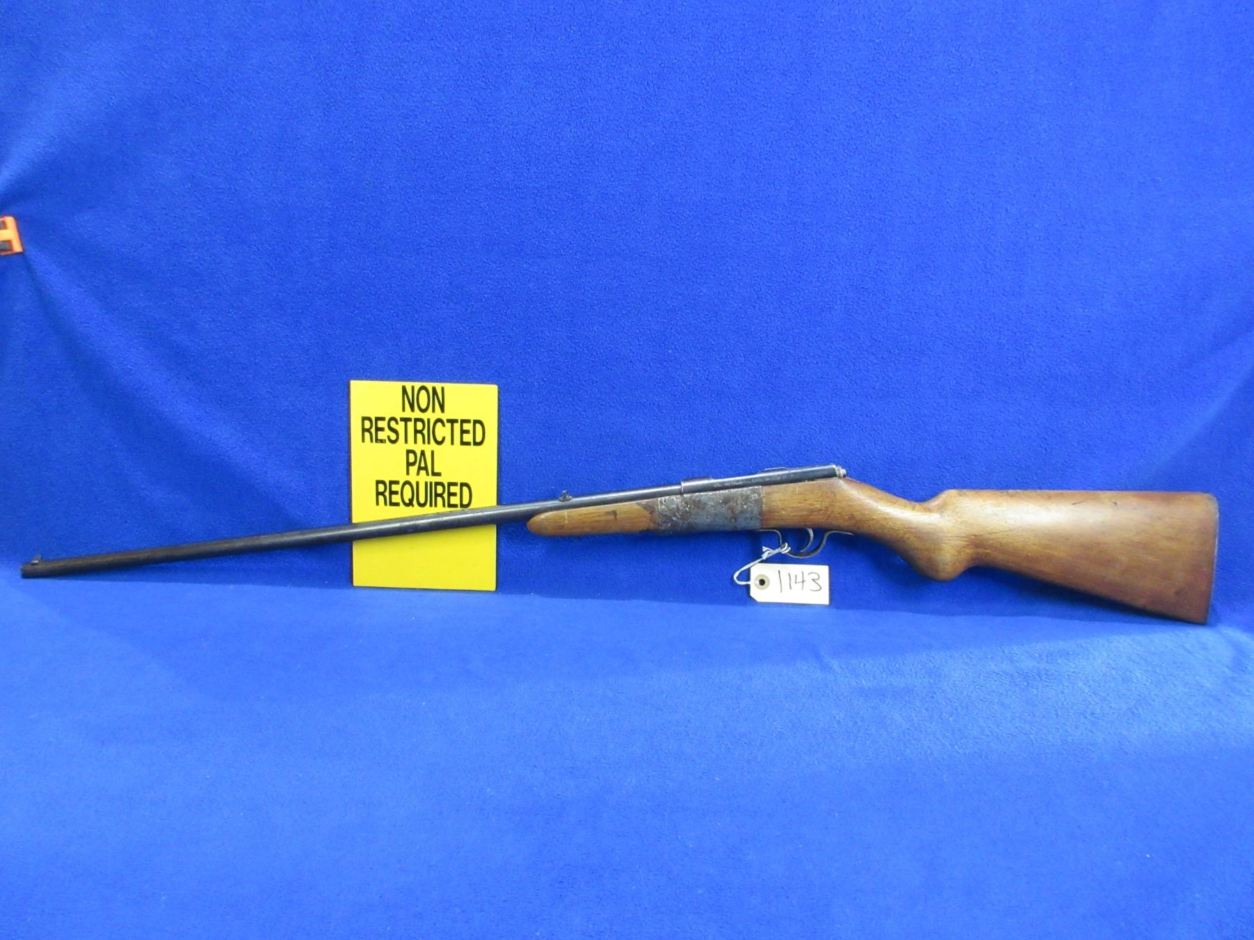 Non-Restricted - BSW Precision Modell X in 22 LR- This is a single shot bolt action rifle, action appears to be in working order but should not be fired as stock has a poor crack repair under the action. Barrel is 24 1/2", rifling is good to very good, bluing is fair to good with pitting, has both sights, stock has a major crack repair under the action, metal butt plate good. Ser # 149145