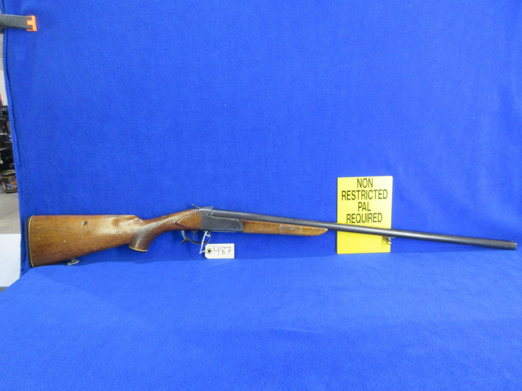 Non-Restricted - Baikal Model IJ-17 in 16 Ga. 2 3/4" - Made in USSR, marked 1964 - This is a tip up single shot shotgun, action is tight and appears to be in good working order but should not be fired as stock is cracked. Barrel is 29", bore is fair to good (may need wet cleaning), bluing is good with some light pitting and wear spots, has bead front sight, stock has cracks behind the upper and lower tangs, forearm is good with many usage marks, butt plate good, comes with swivels. Ser # H79793