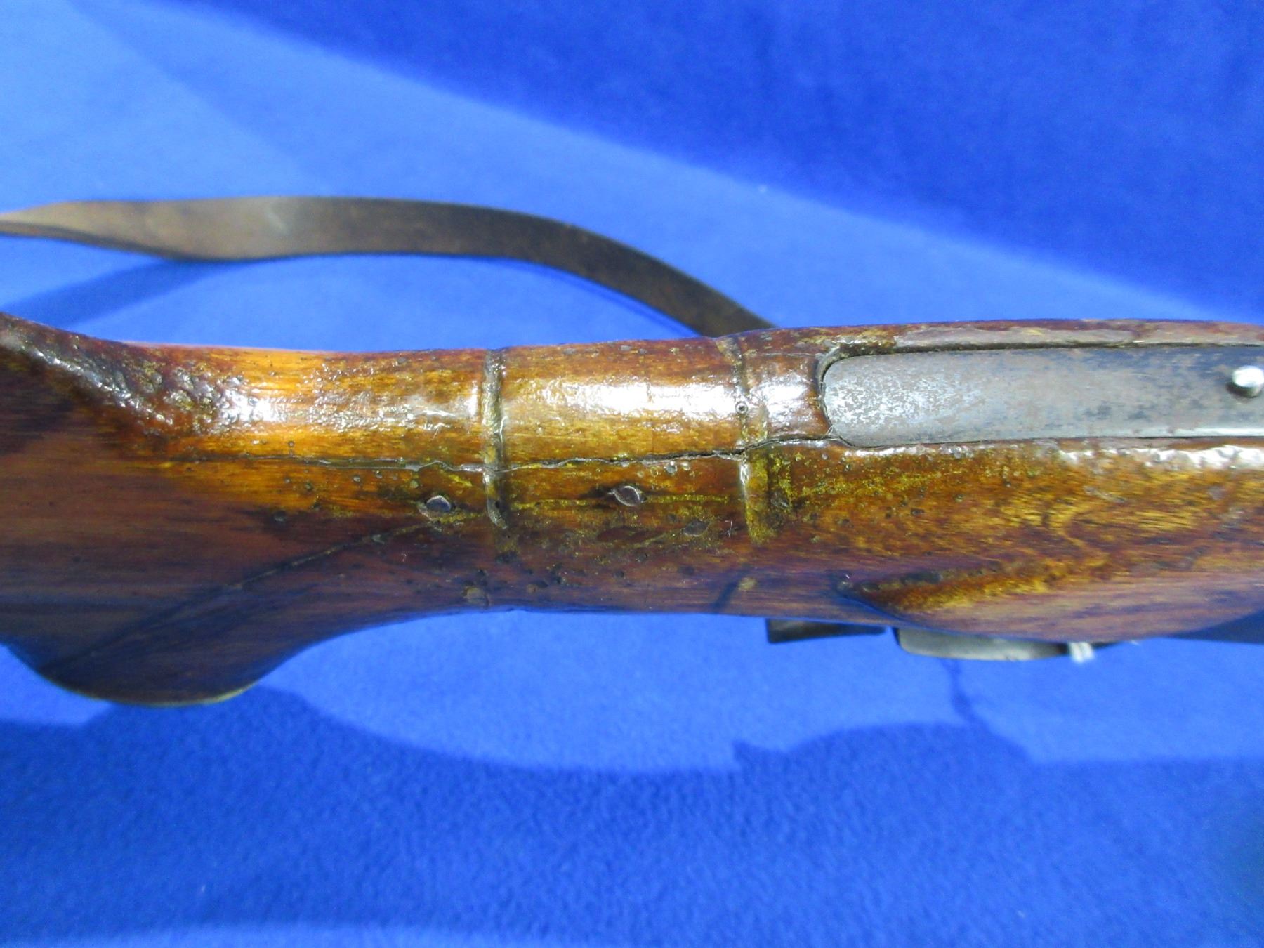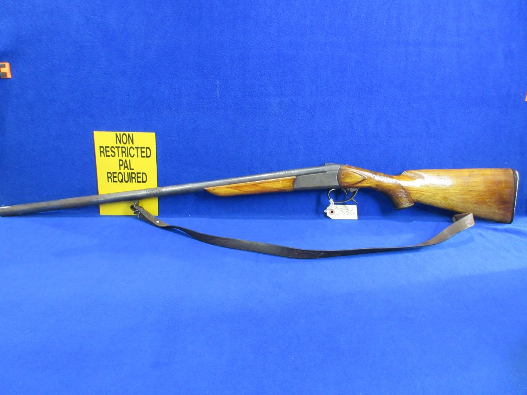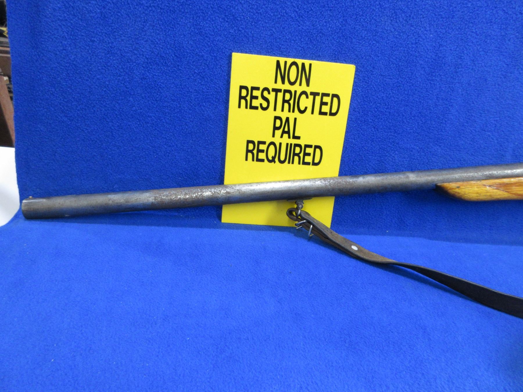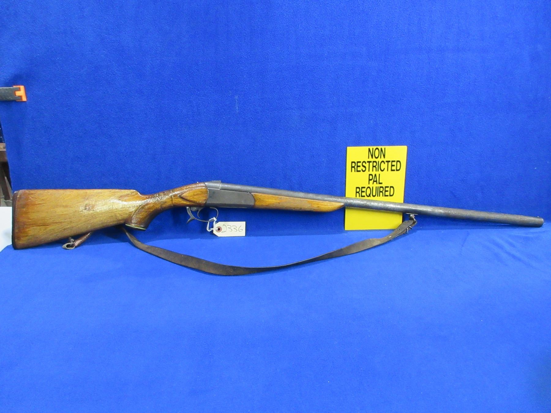Non-Restricted - Baikal Model IJ-18 in 12 Ga. 2 3/4" - This tip up single shot shotgun appears to be in good to very good working order but should not be fired as stock is broken, action is tight. Barrel is 28 3/8", bore is good to very good, bluing is poor with rust and pitting, has bead front sight, stock is cracked behind the upper and lower tang, forearm is good for age with small chip on the front, butt plate. Comes with swivels and strap. Ser # A30174