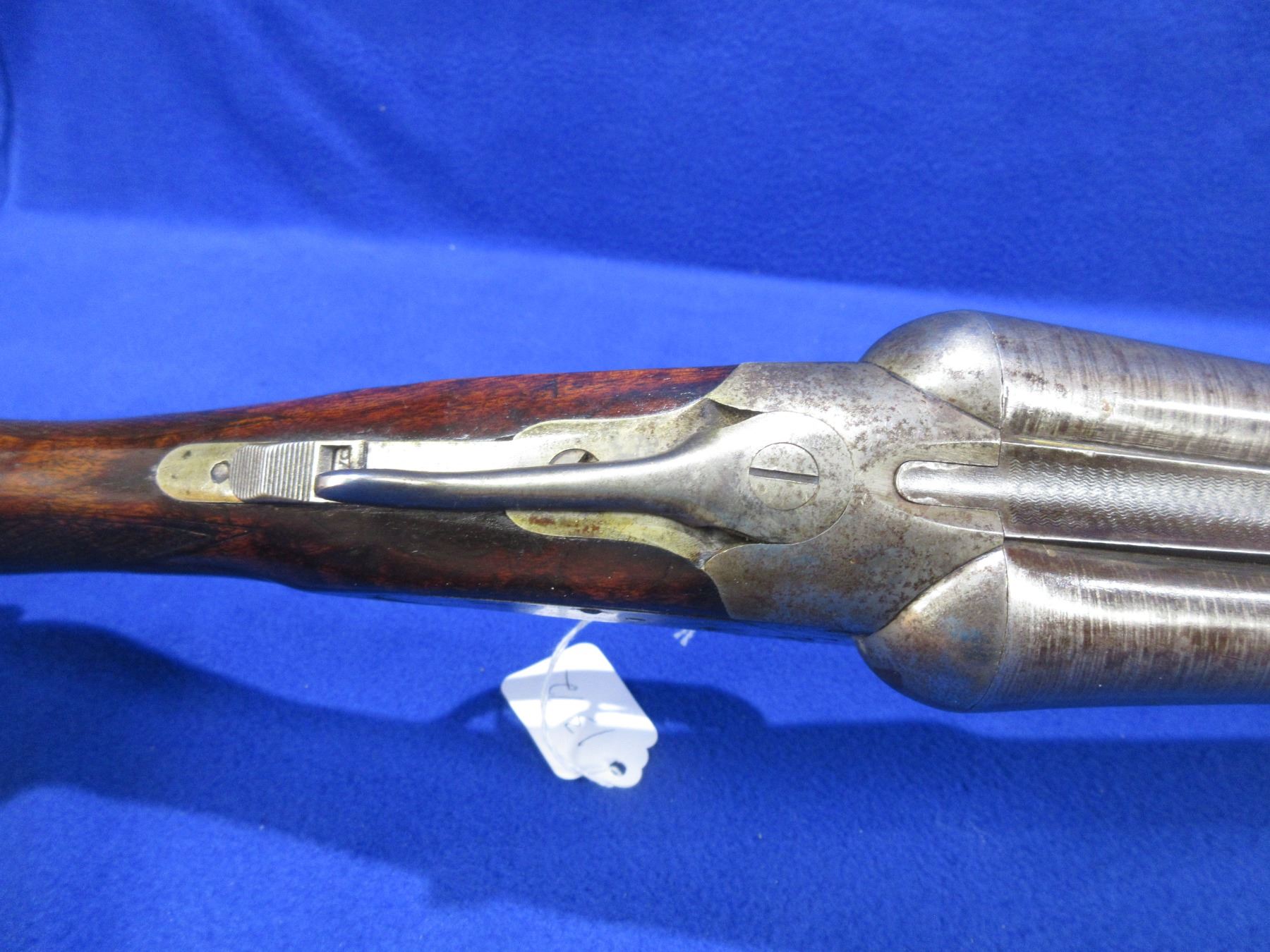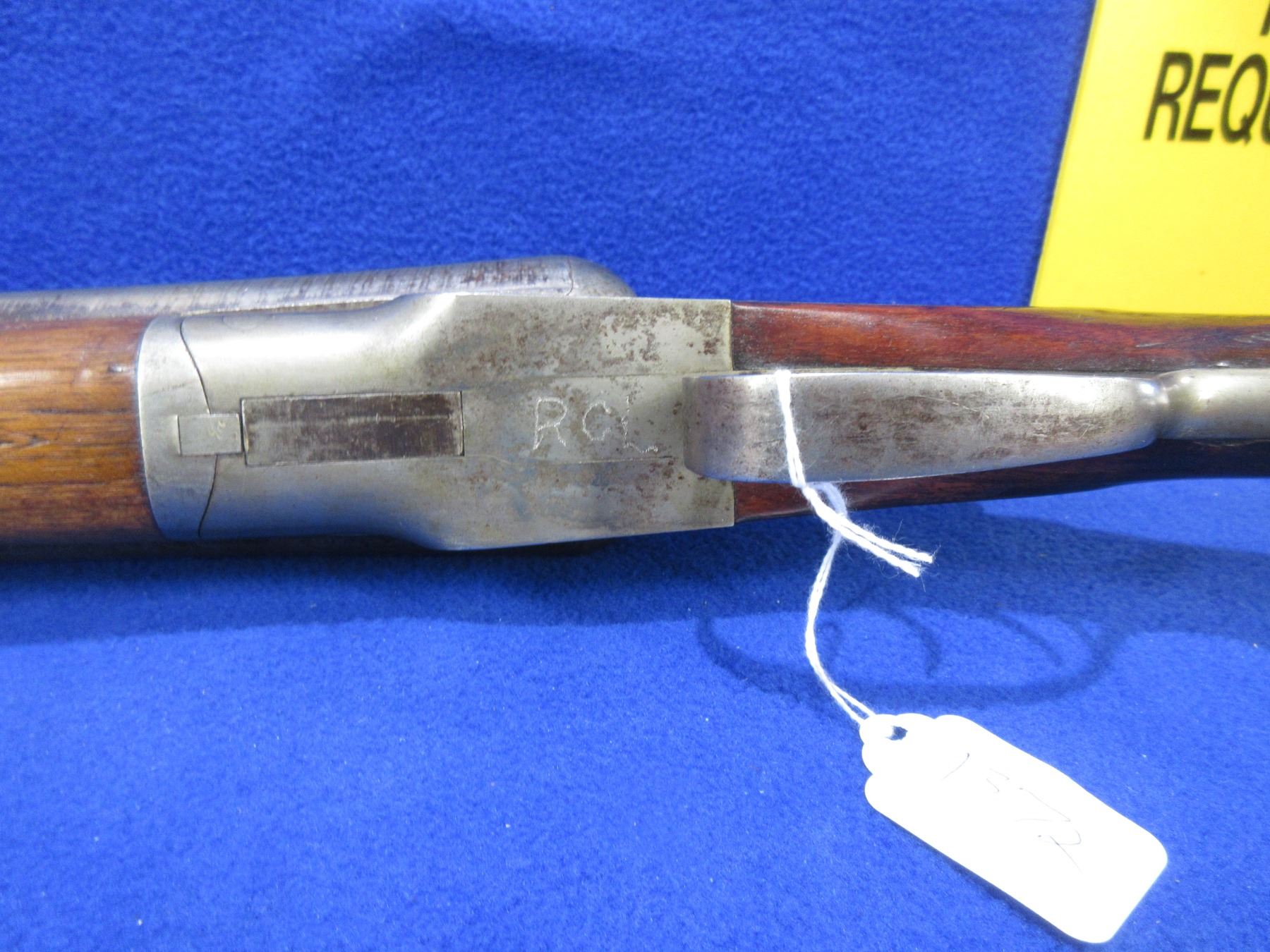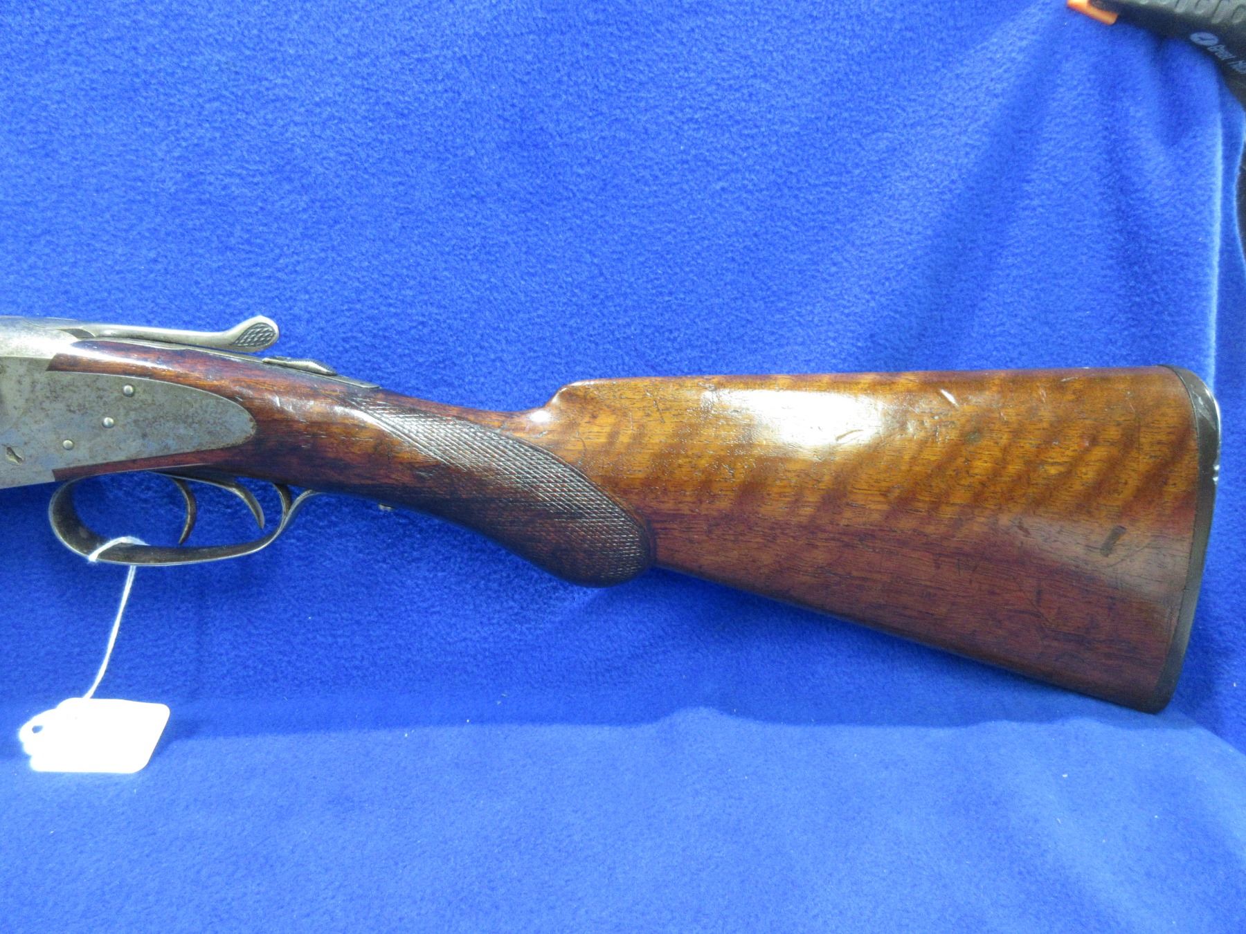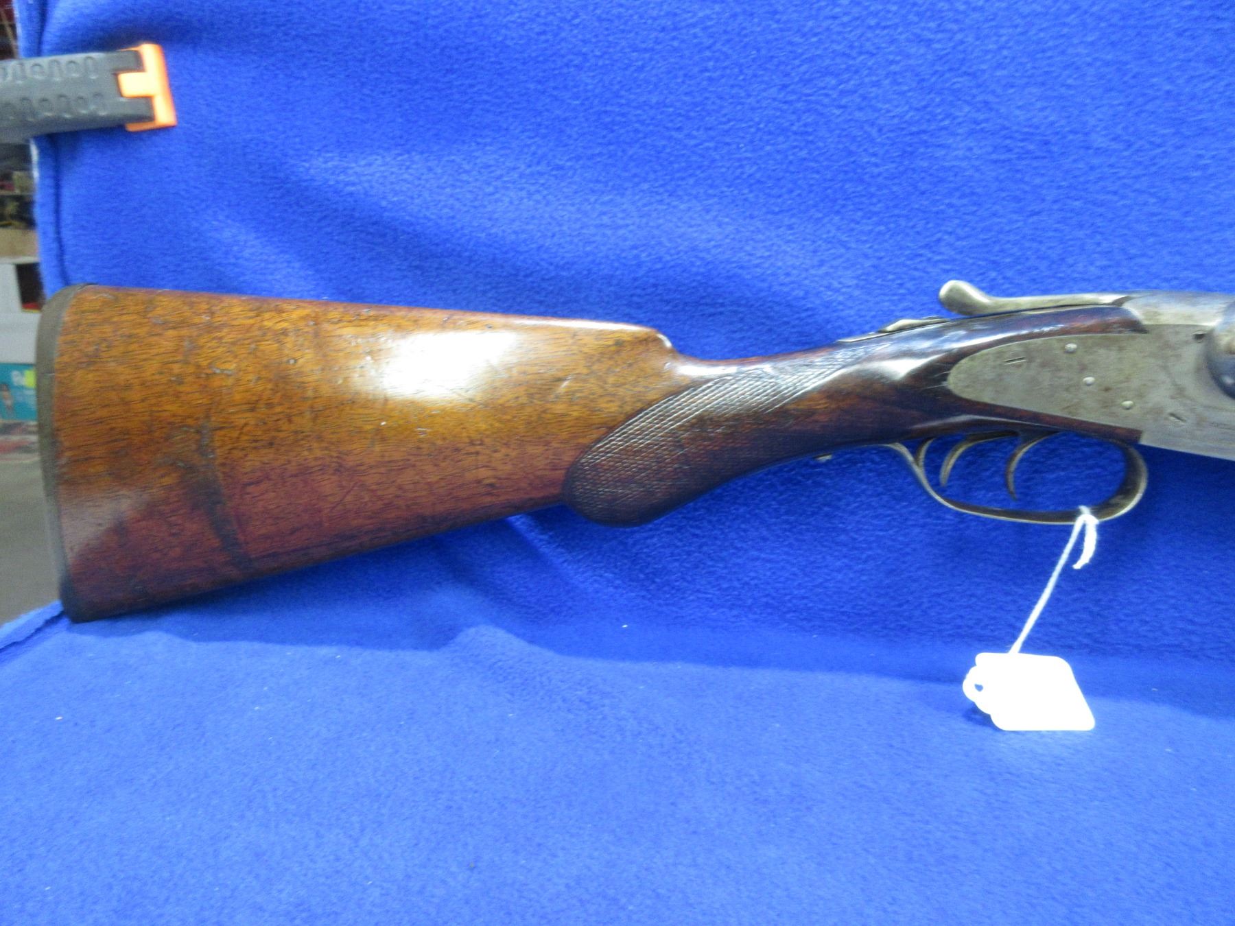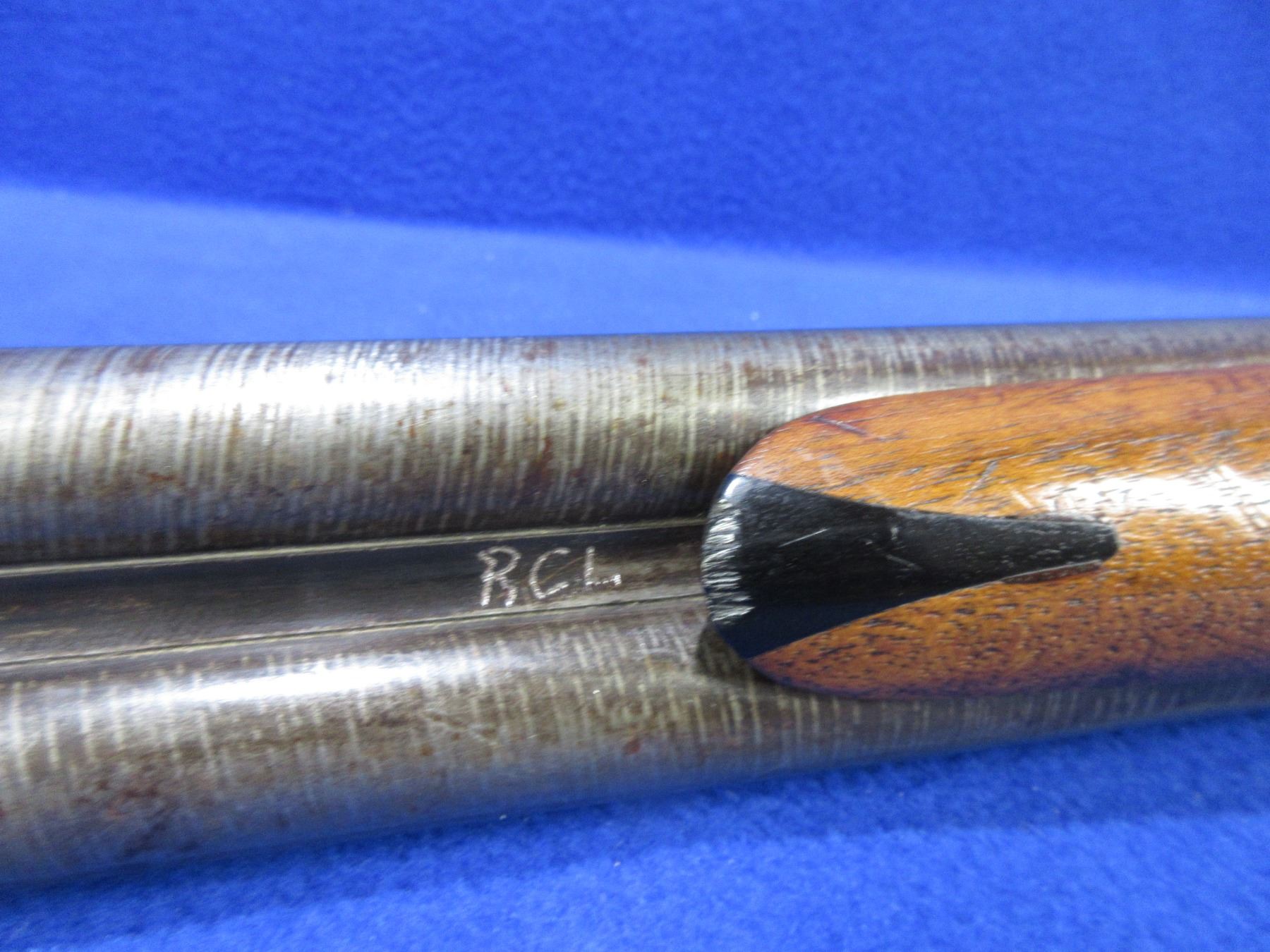 Non-Restricted - Baker Batavia Leader in 12 Ga. 2 3/4" - This tip up SXS shotgun appears to be in good to very good working order. Damacus barrels are 30", bores are fairly shiny, bluing/browning is mostly gone, has bead front sight, stock is good with usage marks , forearm is good to very good, butt plate good. Has a 9 digit number engraved on right side of barrel and intials RCL by forearm tip and on botton center of action. Ser # 90343