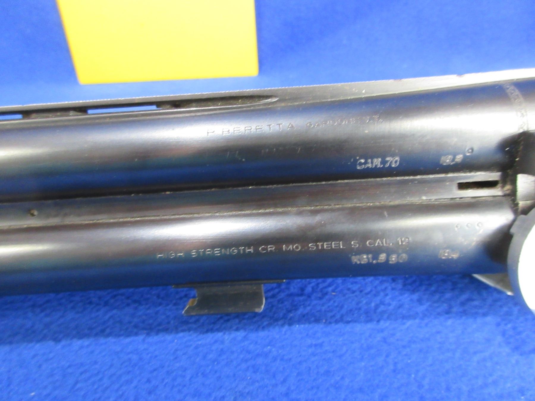 Non Restricted - Barrel and Action Only - Beretta 56 Over/Under in 12 Ga. 2 3/4" - Vent rib barrel is 28", bores are good but bottom barrel has a small dent approx. 5" from the muzzle, bluing is good with minor scratches, bead front sight. Comes with front swivel. Ser. # B67616B