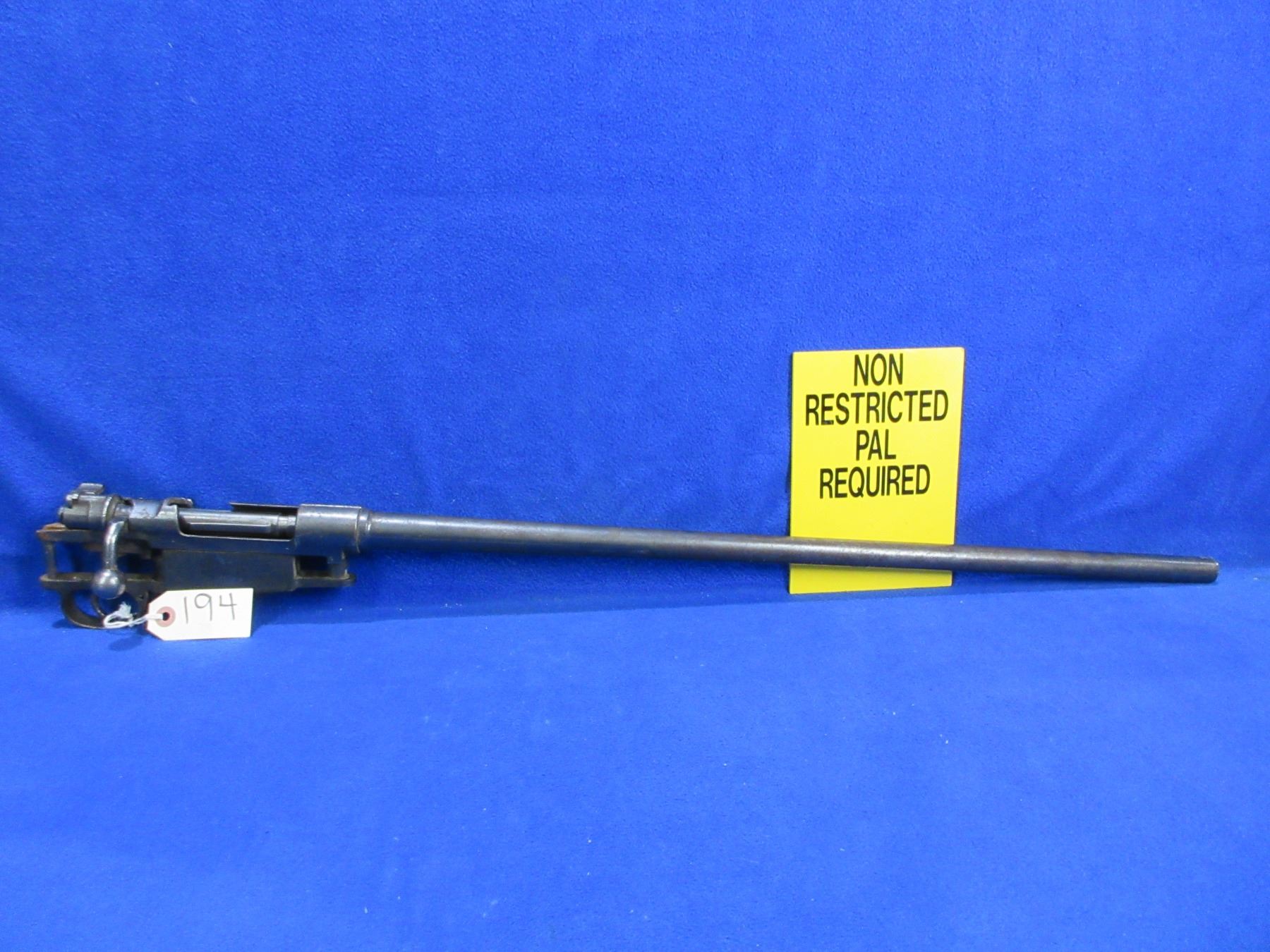 Non-Restricted - Barreled Action - Mauser Geha in 12 Ga. 2 3/4"- This is a barrel, action and bolt with floorplate magazine, action does cock and fire and safety works. Barrel is 26 1/2", bore is fair to good, bluing is turning brown with light pitting, bead front sight is missing. Ser # 9146R