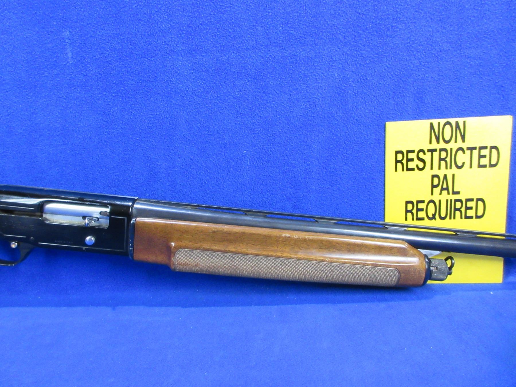 Non-Restricted - Beretta Model A303 in 12 Ga. 2 3/4" - This semi-auto shotgun with removable choke appears to be in good to very good working order. Vent rib barrel is 28", bore is good to very good, bluing is good, has fiber optic front sight, stock is good with usage marks, forearm has a large crack on the left side at the back, butt plate good. Comes with swivels. Ser #L01564E
