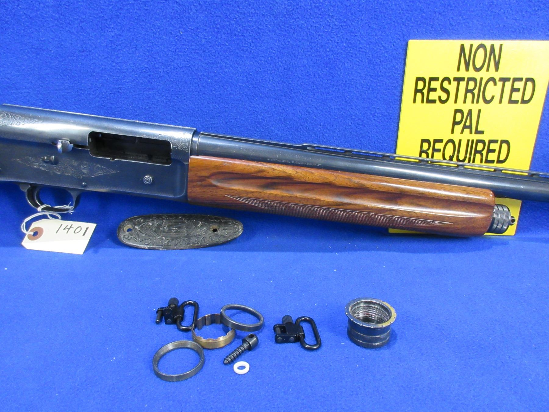 Non-Restricted - Browning A5 Made in Belgium in 12 Ga. 3" - This semi-auto shotgun appears to be in working order but should not be fired as the stock is cracked by the bottom tang and the safety is not working correctly. Vent rib barrel is 26", bore is good to very good, bluing is good to very good, has bead front sight, stock has a crack by the bottom tang and many usage marks, forearm has a crack repair, rubber recoil pad good. Comes with swivels, original butt plate and other parts. Ser # 68662