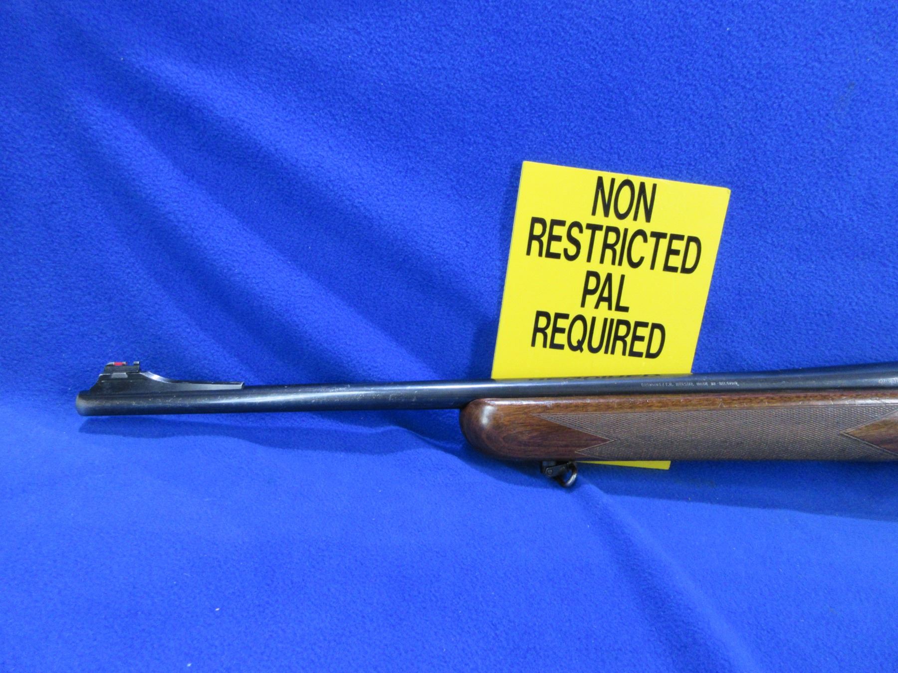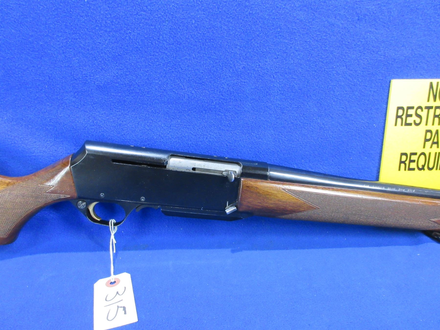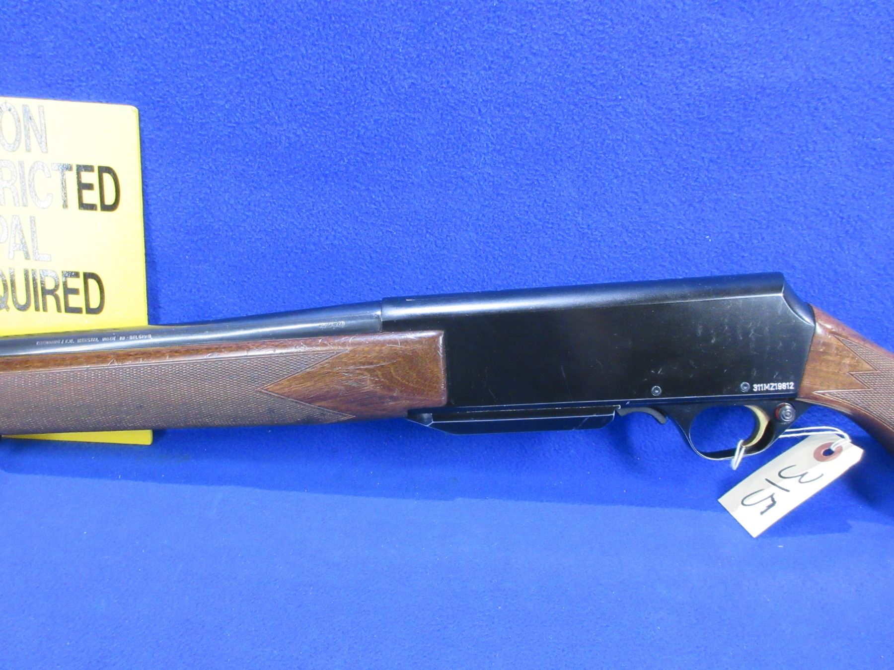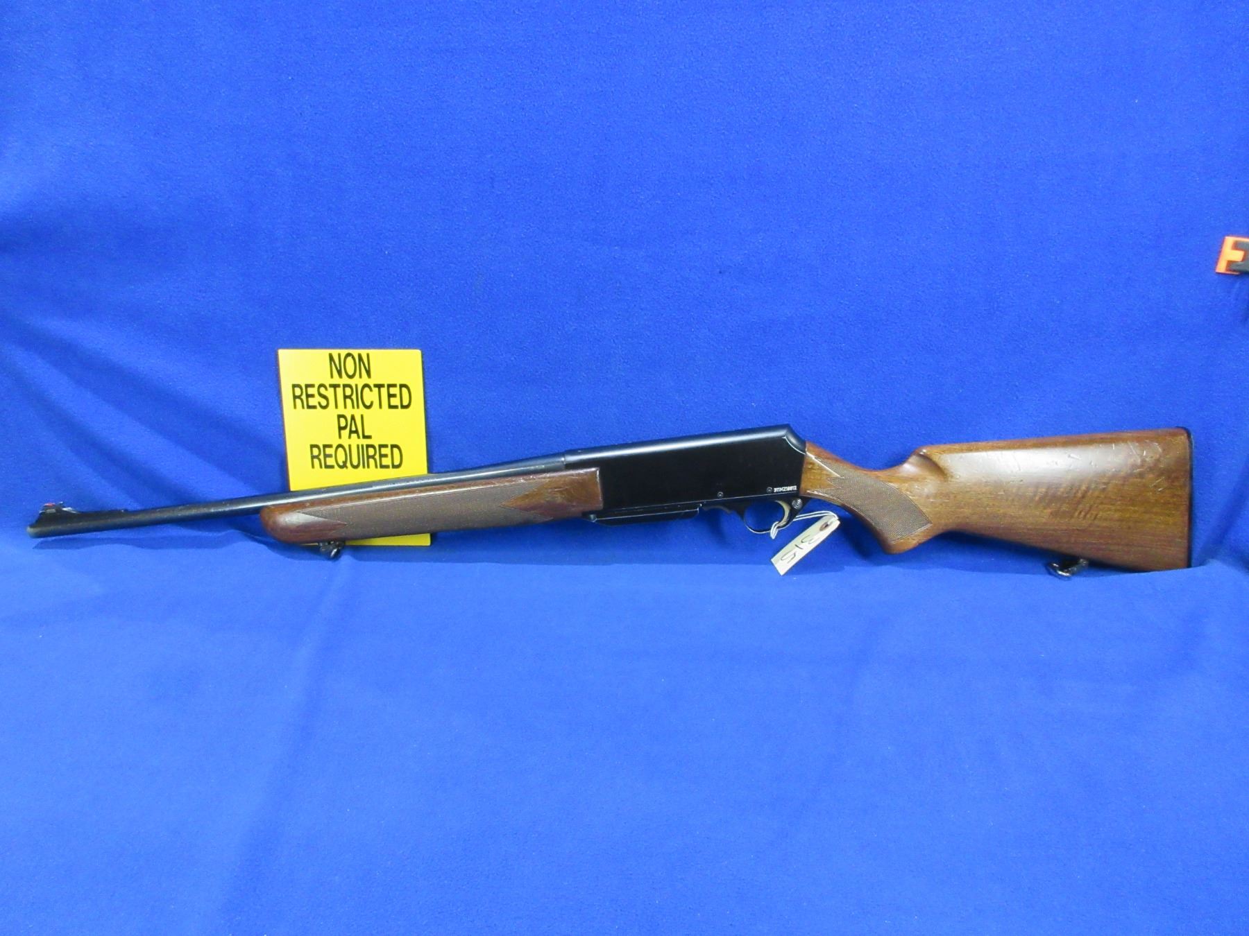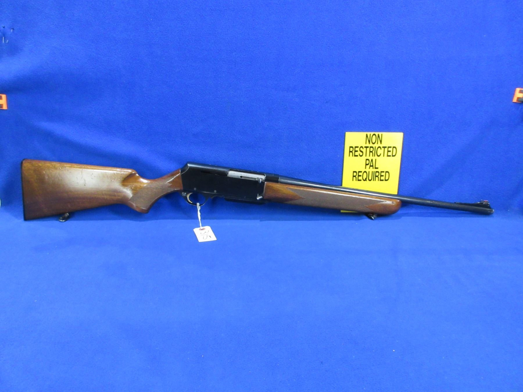 Non-Restricted - Browning BAR in 30-06 Sprg - This semi-auto rifle with floorplate with removable magazine appears to be in good to very good working order. Barrel is 20 1/2", rifling is very good, bluing is good with minor scratches, has fiber optic front sight, rear sight missing, drilled and tapped, stock and forarm are good to very good with usage marks, butt plate good. Ser # 311MZ19812