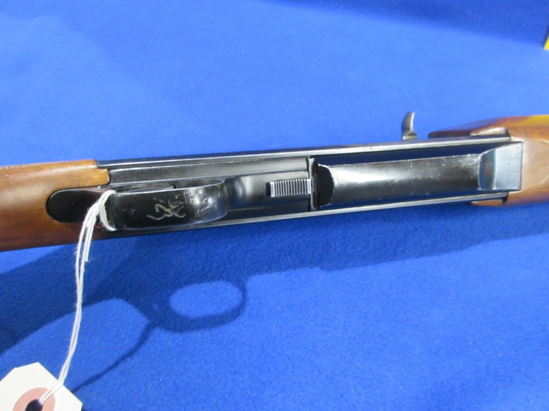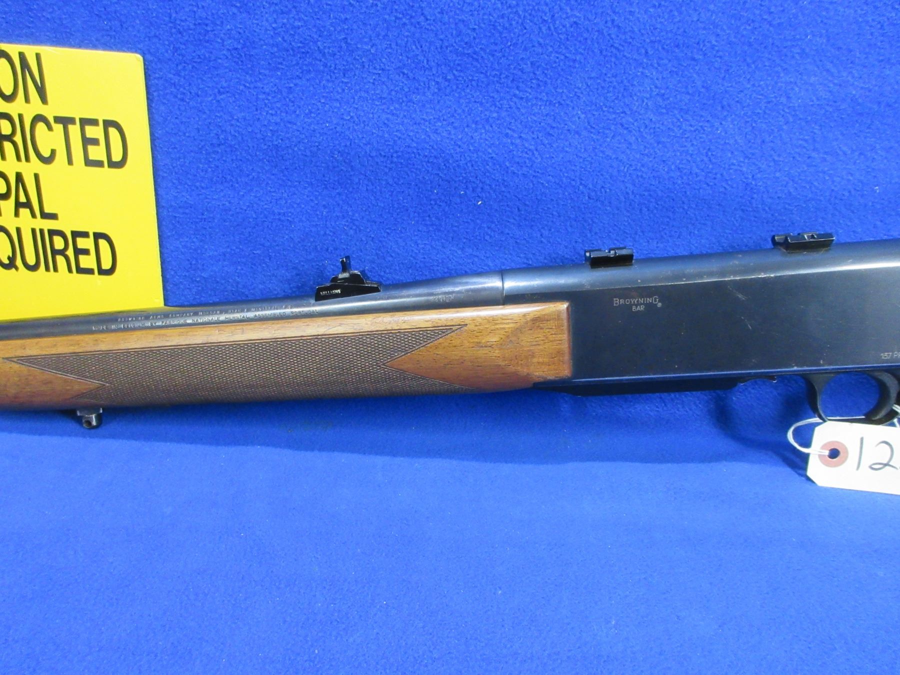 Non-Restricted - Browning BAR in 30-06 Sprg - This semi-auto rifle with removable magazine in floorplate appears to be in good to very good working order. Barrel is 22", rifling is good to very good, bluing is good with some light scratches, has both sights and Weaver style bases, stock is good to very good with usage marks, forearm is good to very good with usage marks, butt plate good, comes with swivel studs. Ser # 137PP06412