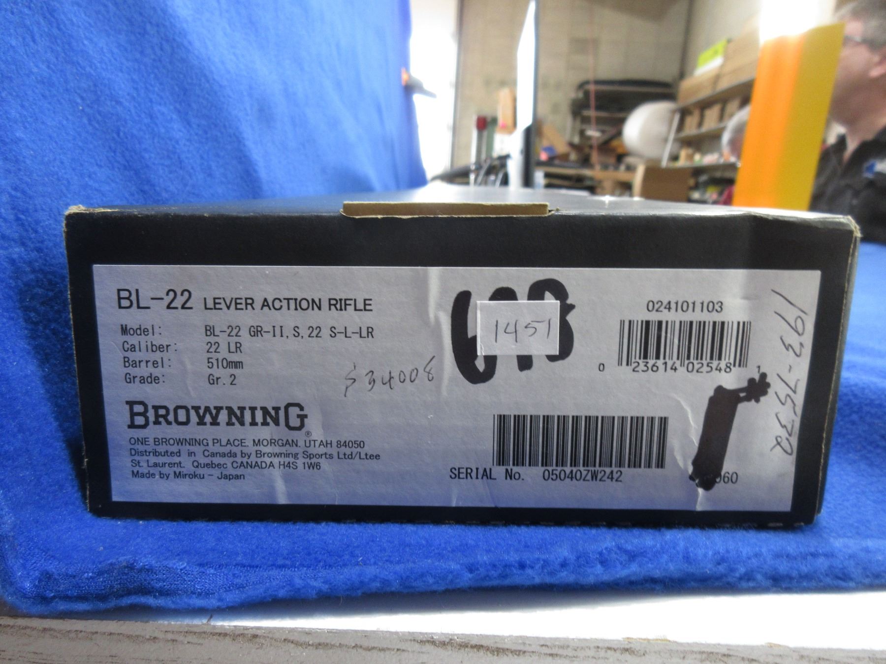 Non-Restricted - Browning BL-22 GR-II in 22 LR - This lever action rifle with tube magazine is in like new condition. Barrel is 20", rifling is very good, bluing is very good, has both sights, stock & forearm are very good, butt plate very good, comes with original box and manual. Ser # 05040ZW242