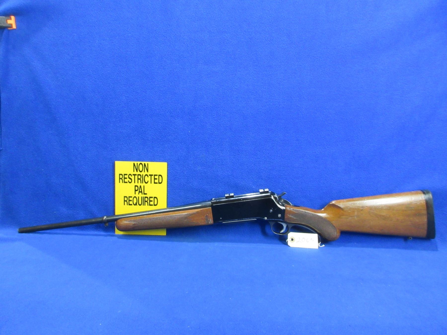 Non-Restricted - Browning BLR in 7mm/08- This is a lever action rifle with removable magazine, action appears to be in good to very good working order. Barrel is 19 1/2", rifling is good, bluing is good to very good, has no sights but has Weaver style bases, stock and forearm are good with many usage marks, length of pull is 13 3/4", rubber recoil pad good, comes with swivel studs. Ser # 10568NT427