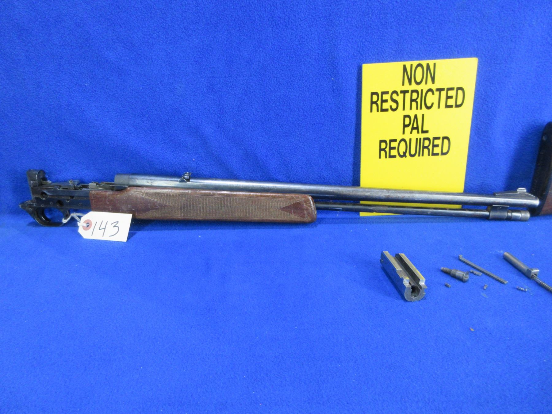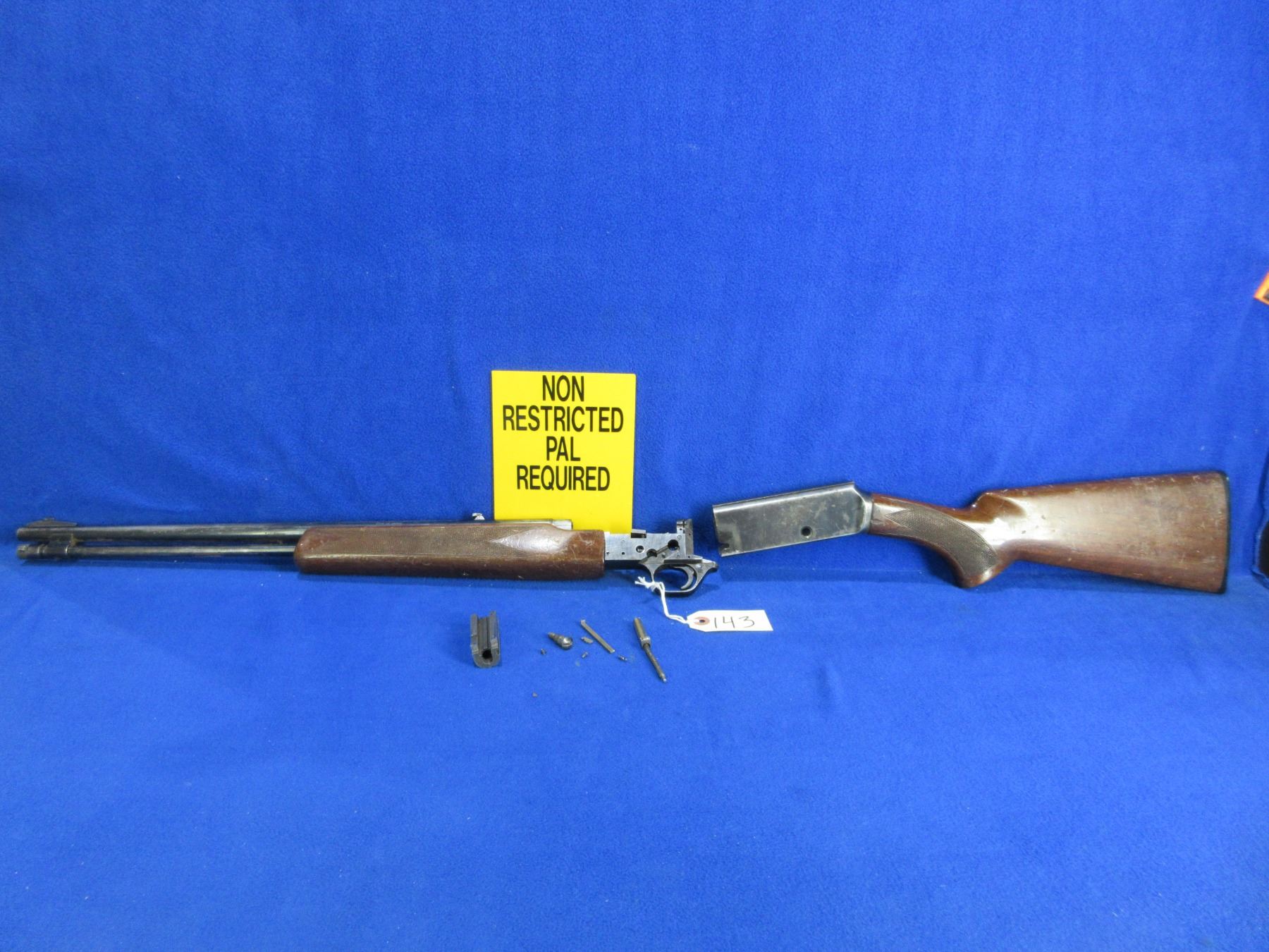 Non-Restricted - Browning BPR-22 in 22LR Parts Gun - This pump action parts gun with tube magazine is in non working order. Barrel is 20 1/4", rifling is good to very good, bluing is turning grey with light pitting, has both sights, stock is good with many usage marks, forearm is good with many usage marks, butt plate good. Ser # O3012RP176