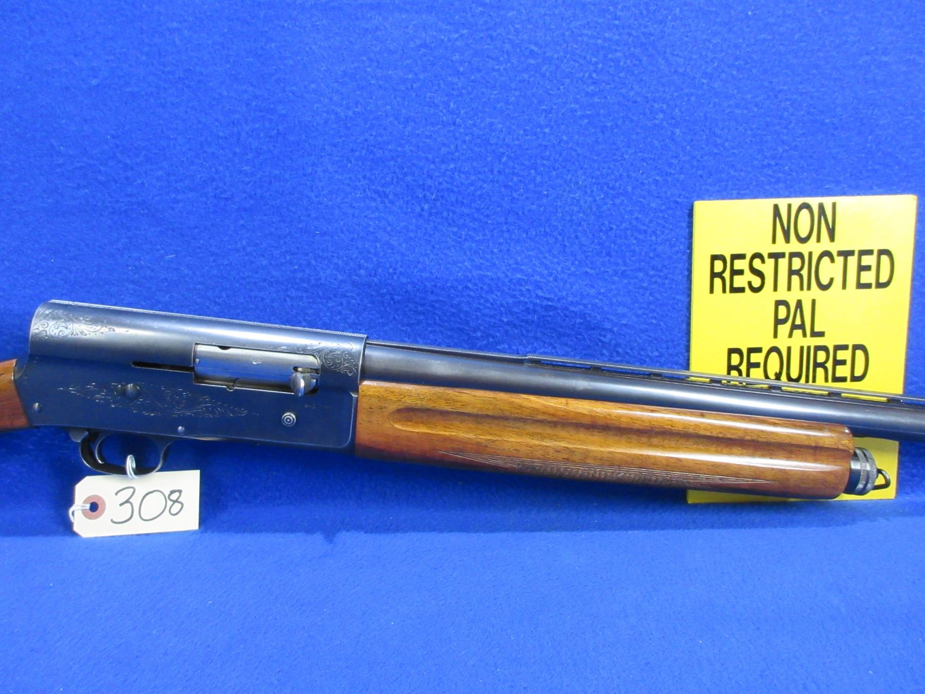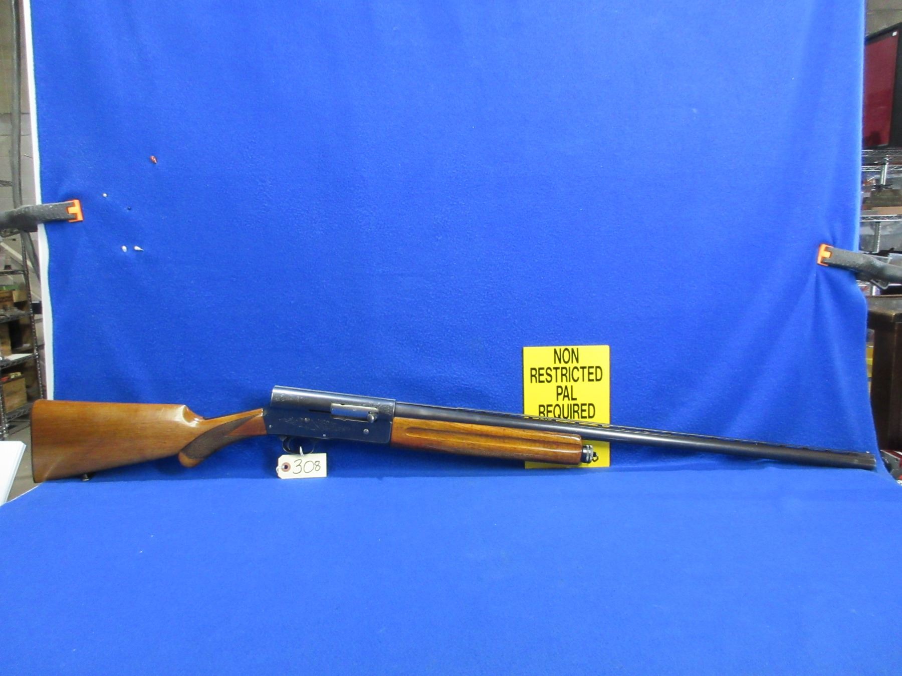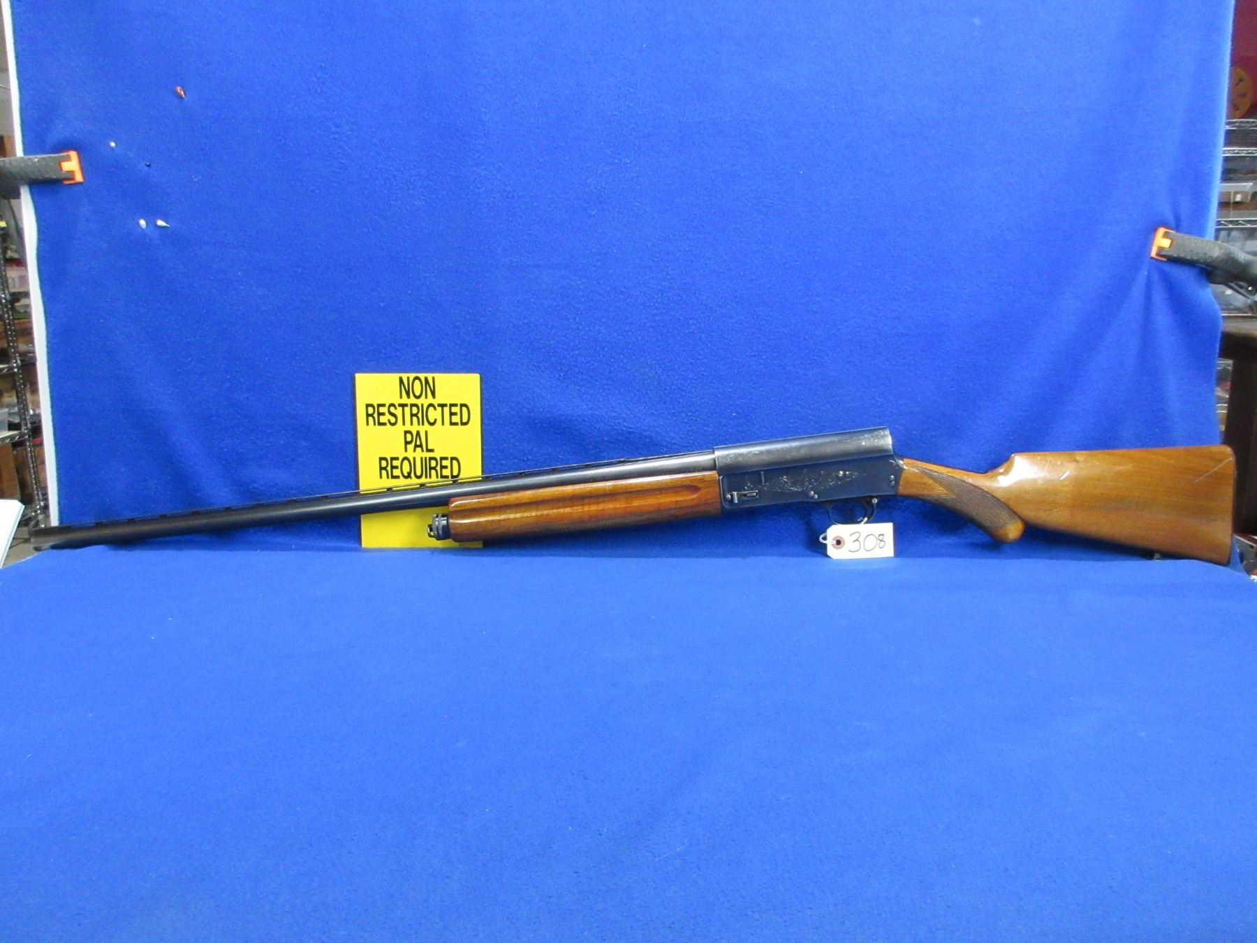 Non-Restricted - Browning Model A5 in 12 Ga. 2 3/4" - This semi-auto shotgun appears to be in good to very good working order. Vent rib barrel is 29 1/2", bore is good to very good, bluing is good to very good, has bead front sight, stock is good to very good with usage marks, forearm is good to very good with usage marks, butt plate good, comes with swivel studs. Ser # 438285