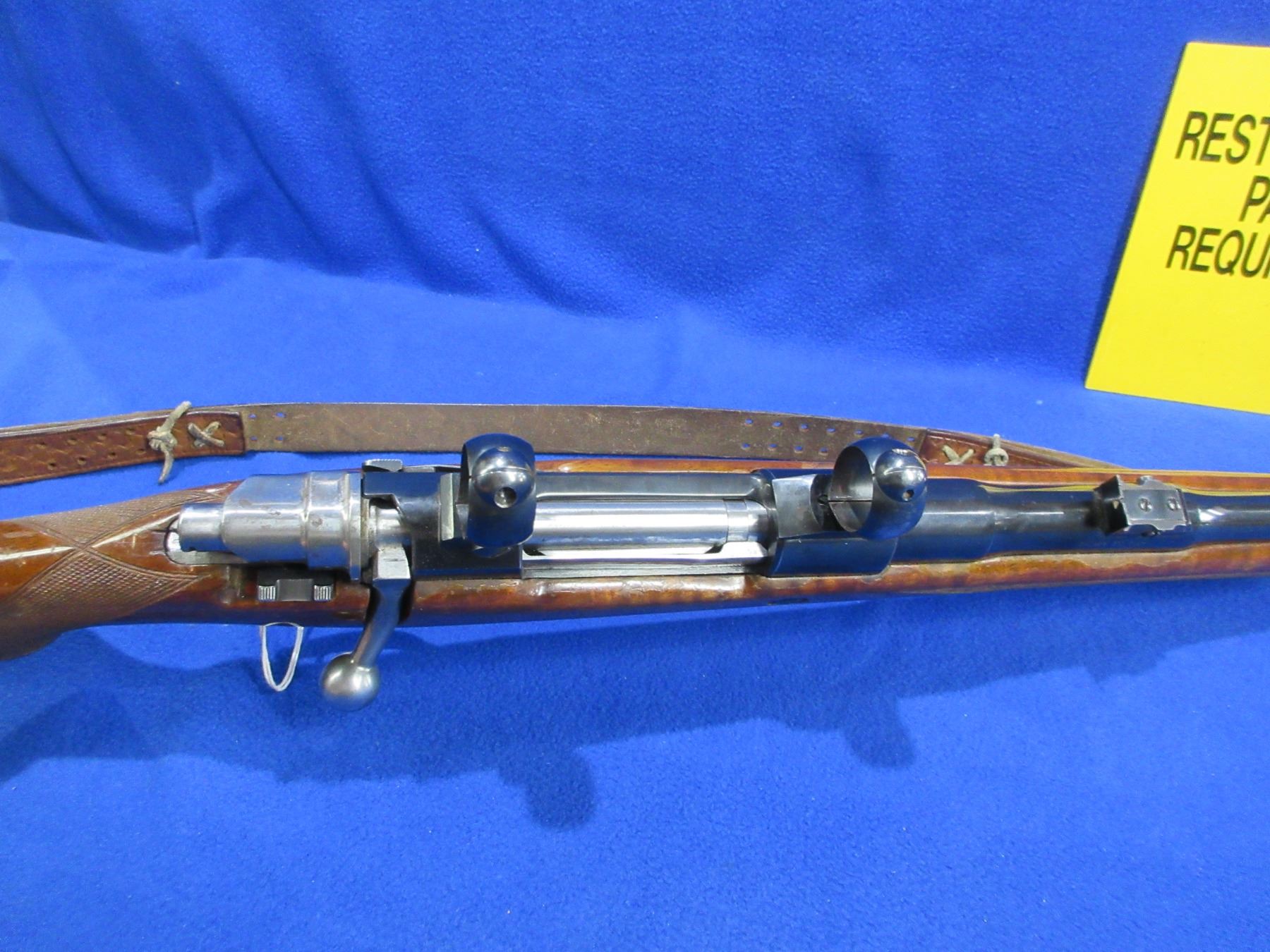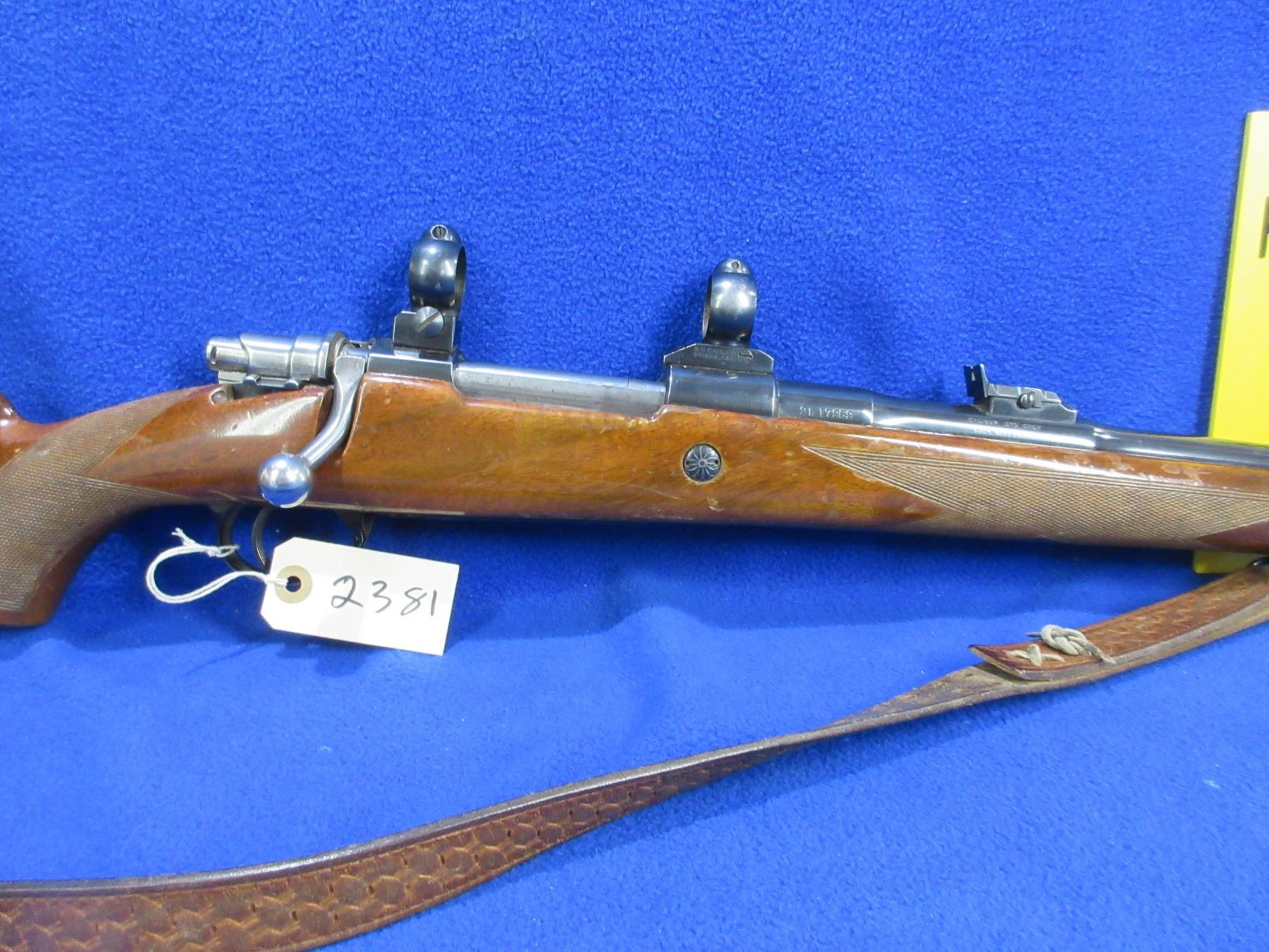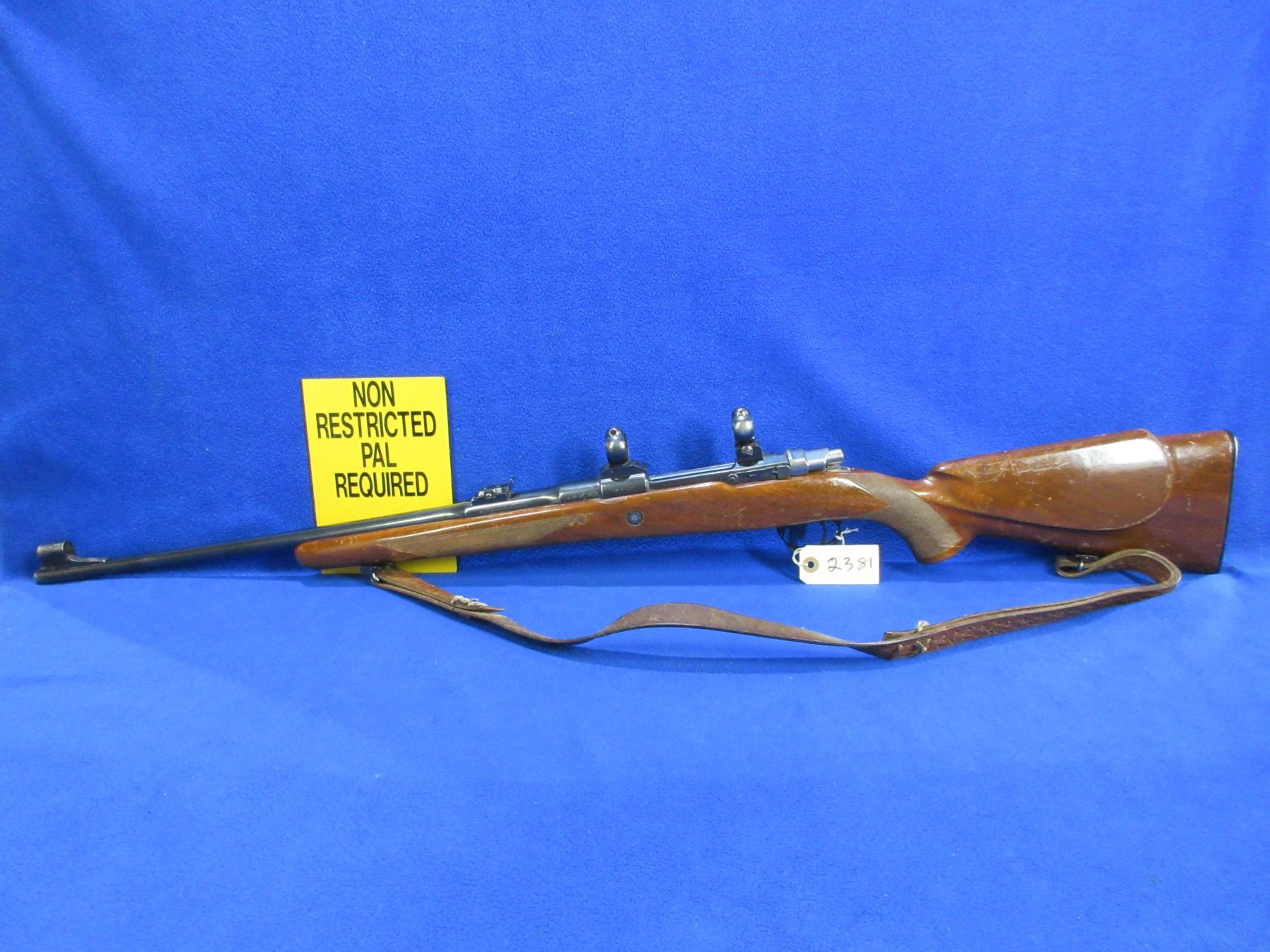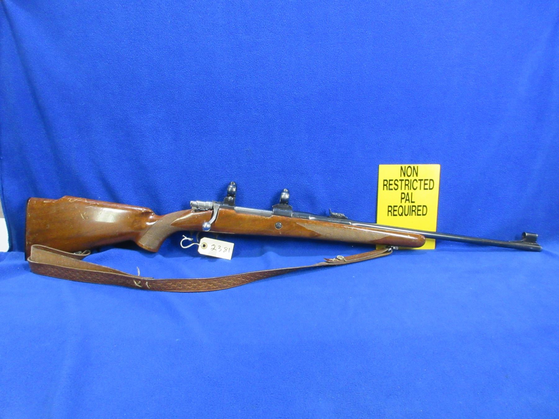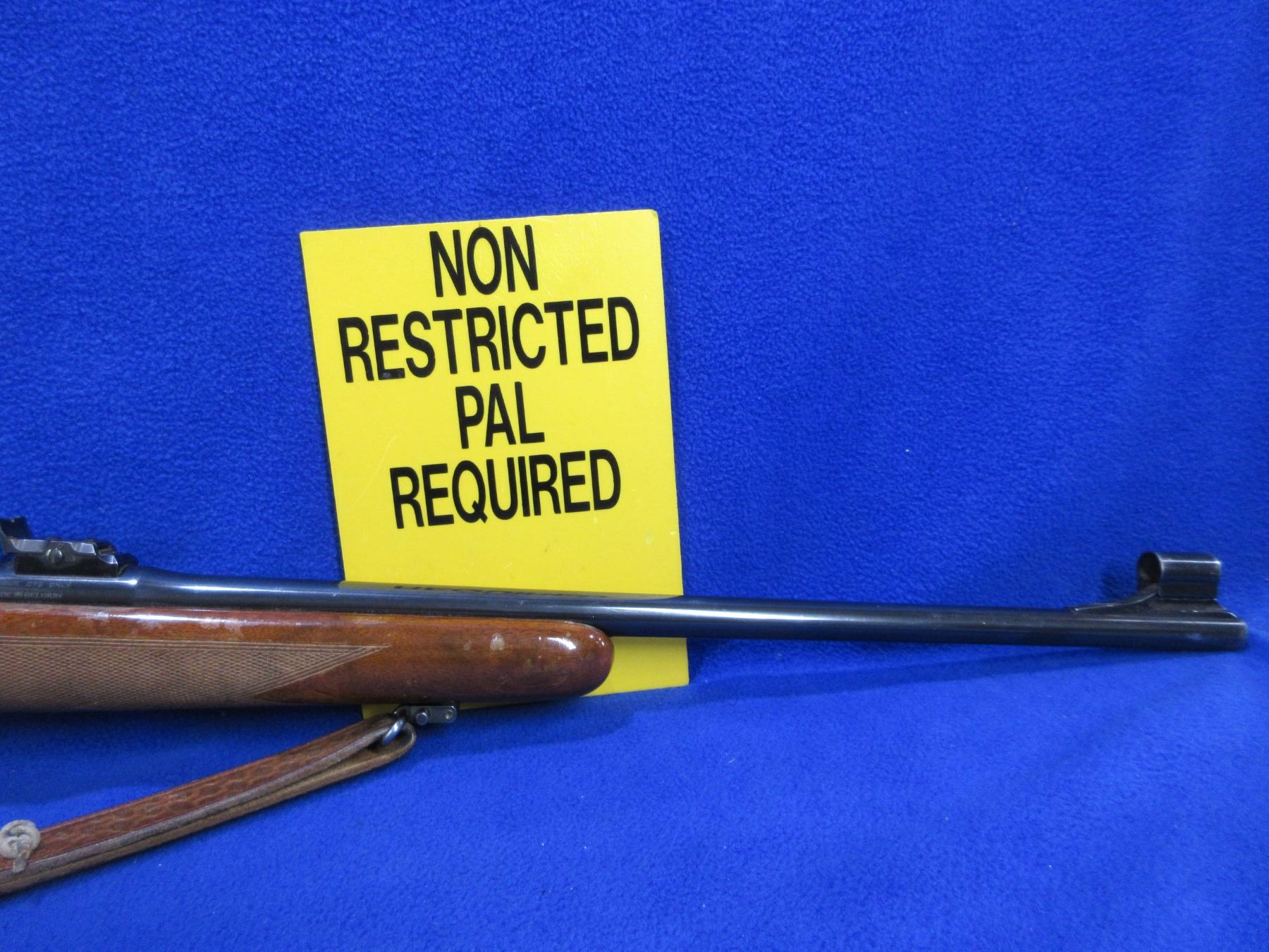 Non-Restricted - Browning Model FN in 270 Win. - This is a bolt action rifle with floor plate magazine, action appears to be in good to very good working order. Barrel is 22", rifling is good to very good, bluing is good to very good with some muzzle wear, has both sights and Buehler rings and bases, stock is good with many usage marks, length of pull is 13 1/2", butt plate good, comes with swivels and a leather sling. Ser # 2L17252