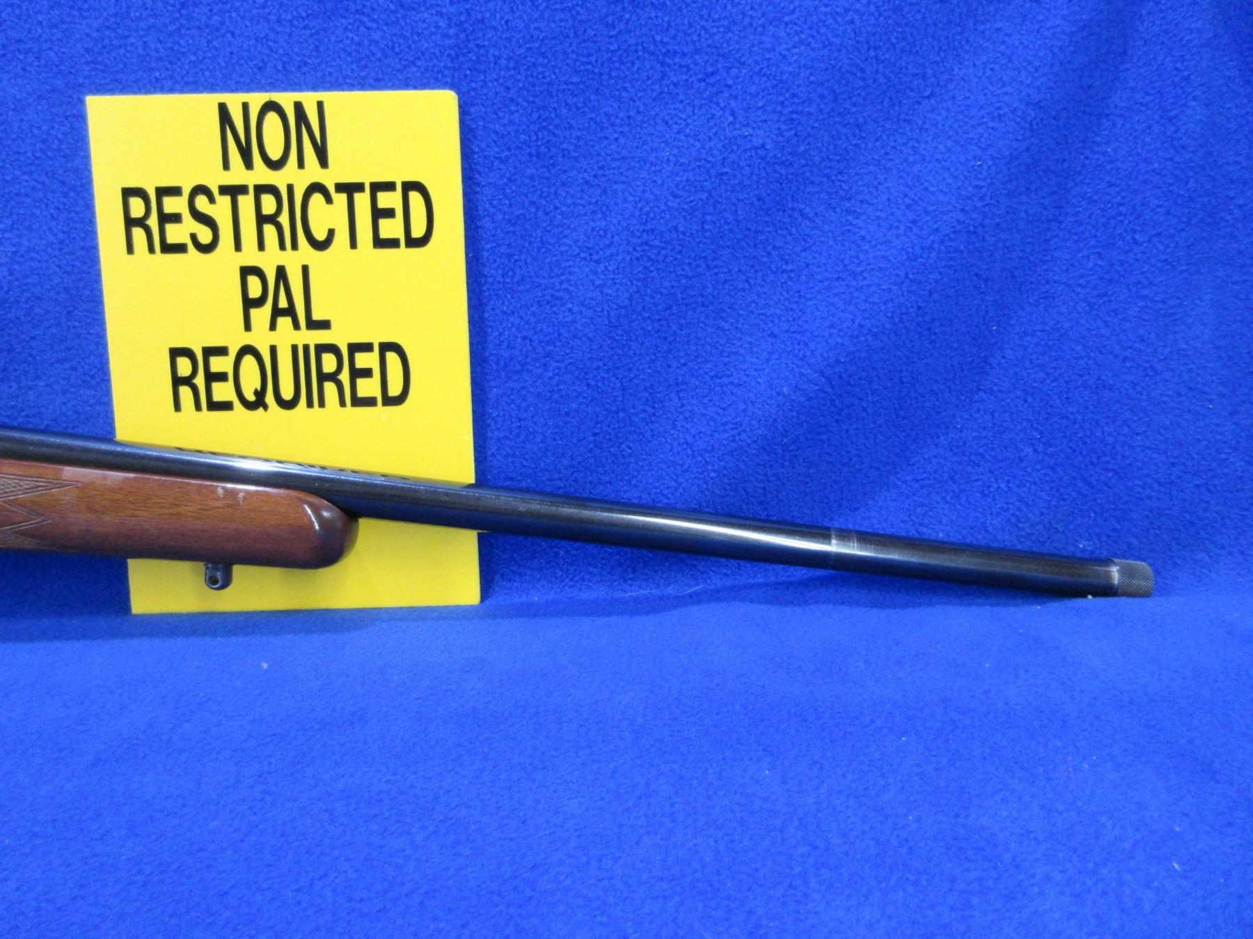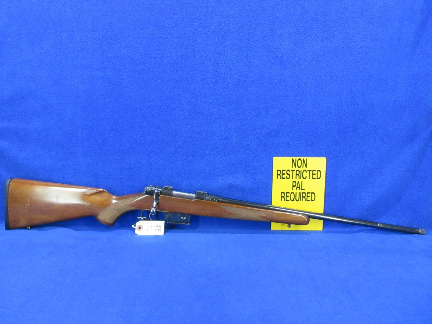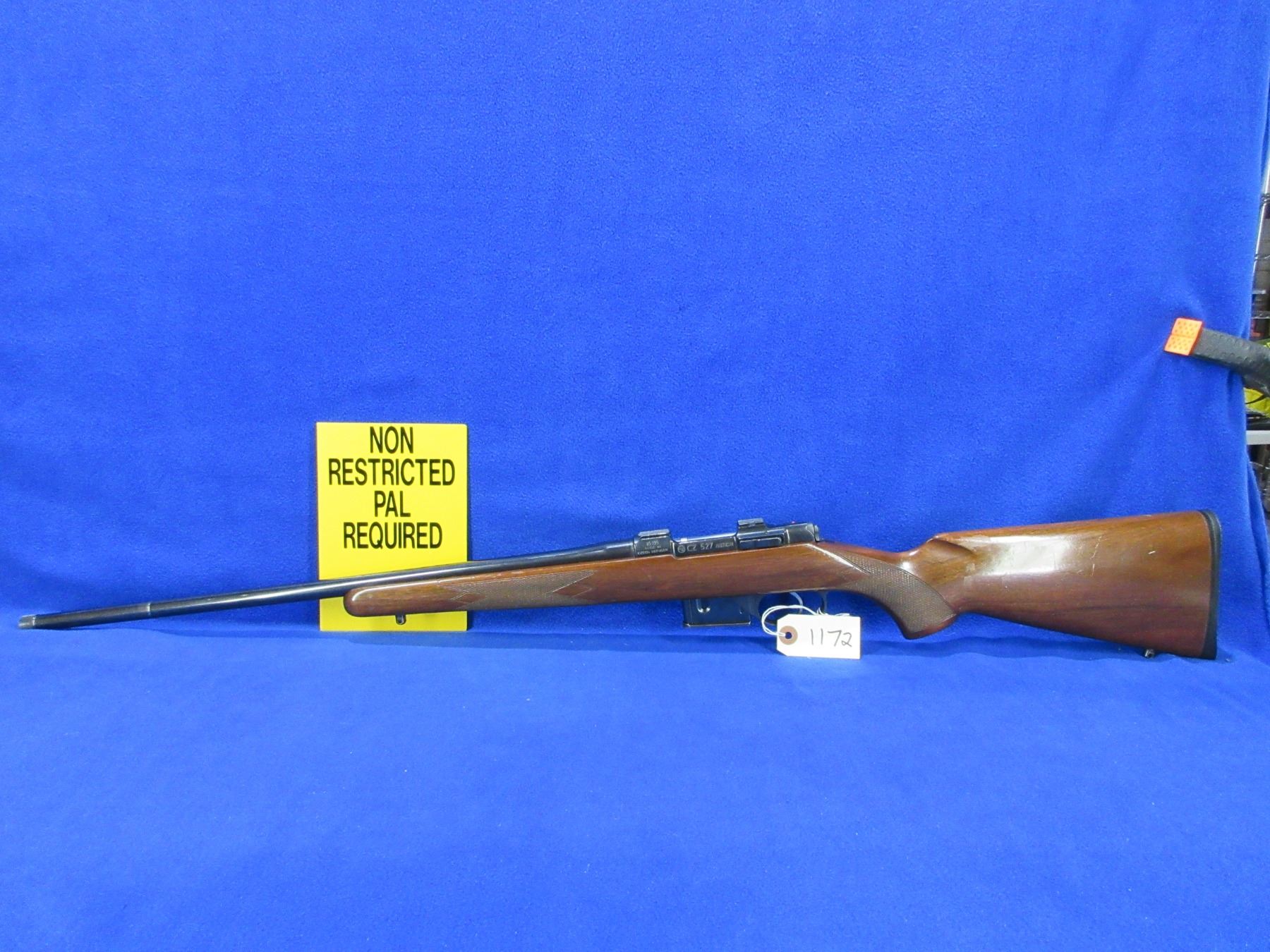 Non-Restricted - CZ Model 527 in 222 Rem. - This bolt action rifle with removable magazine appears to be in good to very good working order. Barrel is 22", rifling is good to very good, bluing is good as it has a strange wear ring about 4.5" from end of barrel, has no sights but has CZ integral scope ring grooves on action , stock is good as it has many handling marks, butt plate good. Comes with set trigger. Ser # 85035