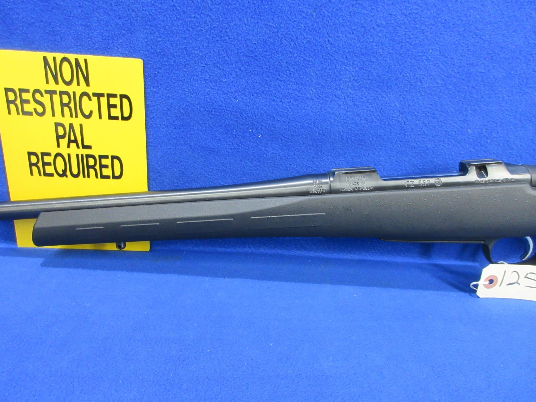 Non-Restricted - CZ Model 557 in 6.5x55 SE - This bolt action rifle with floorplate magazine appears to be in very good working order. Barrel is 24", rifling is very good, bluing is very good, has no sights but has integral scope bases, synthetic stock is very good, rubber recoil good, comes with swivel studs. Ser #C947055