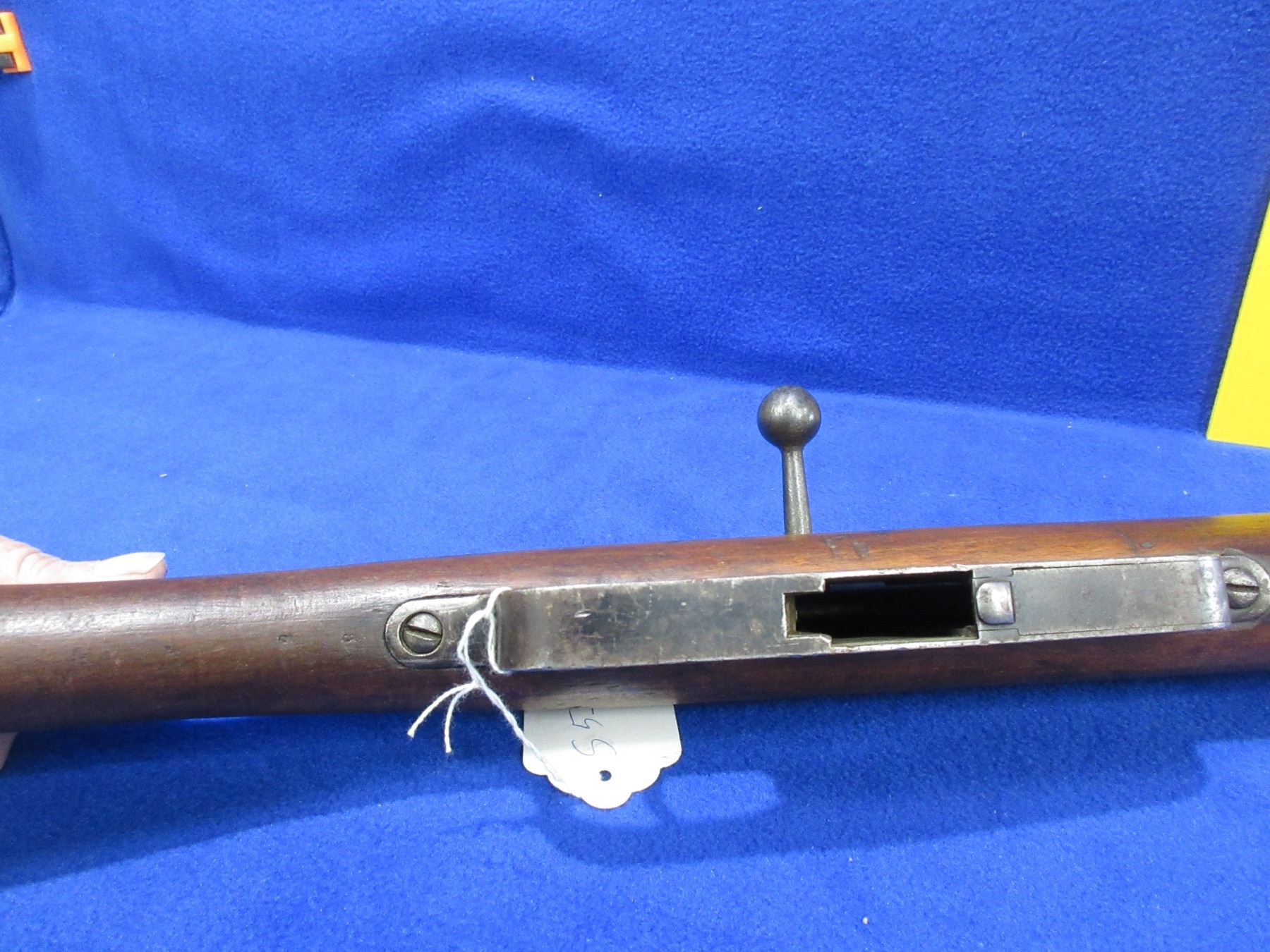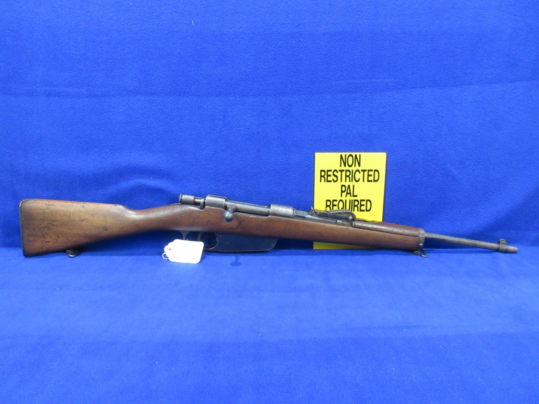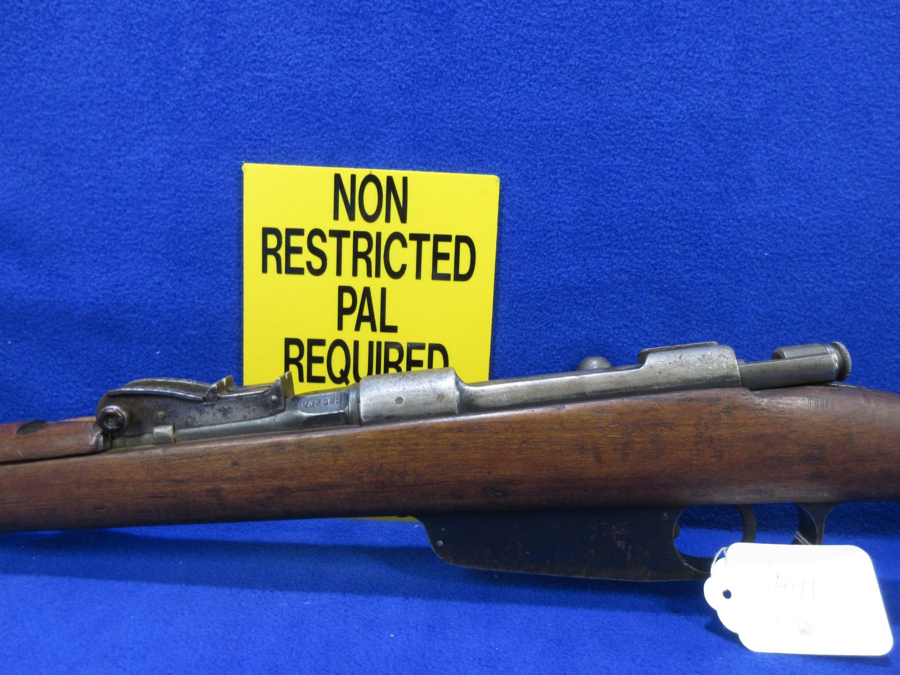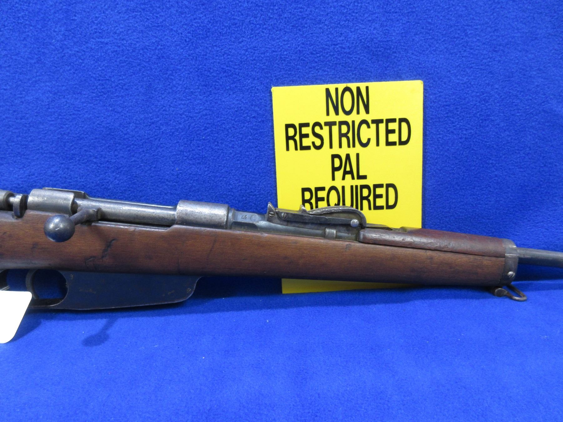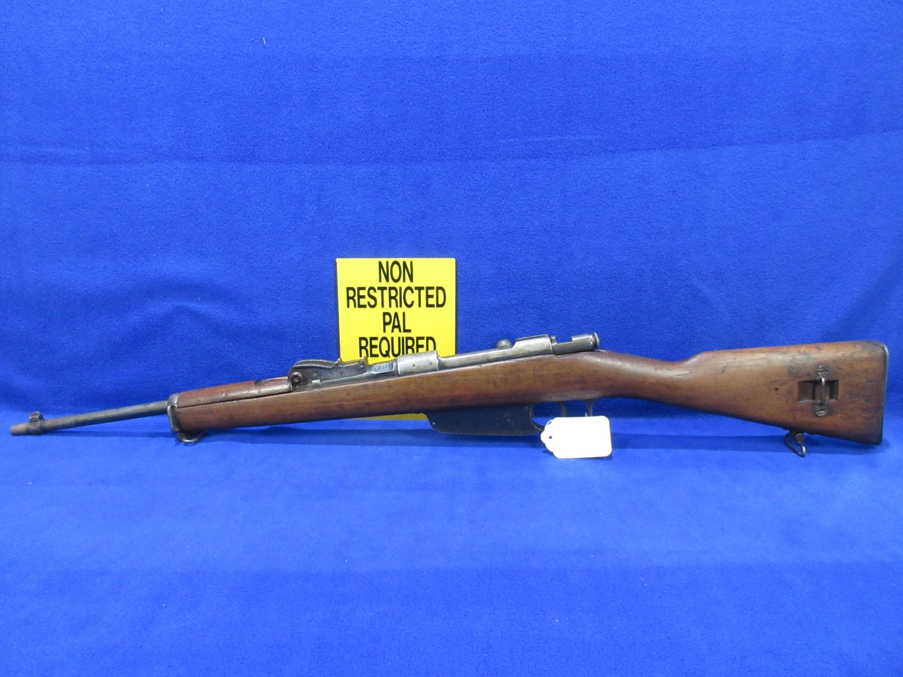 Non-Restricted - Carcano Carbine in 6.5MM - This bolt-action rifle with internal magazine that is loaded with stripper clips appears to be in fair to good working order. Barrel is 17 1/2", bluing is mostly gone and pitted, rifling appears good but needs cleaning, has both sights, stock good, metal butt plate, Ser # N3589