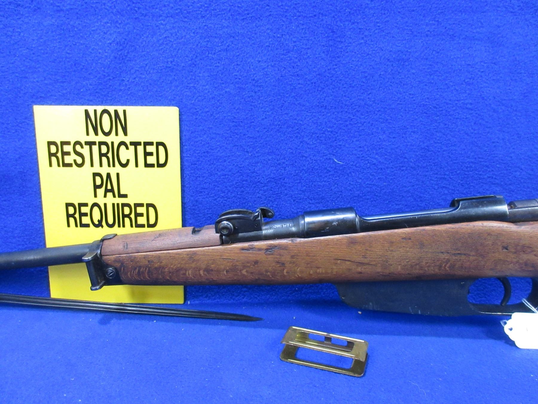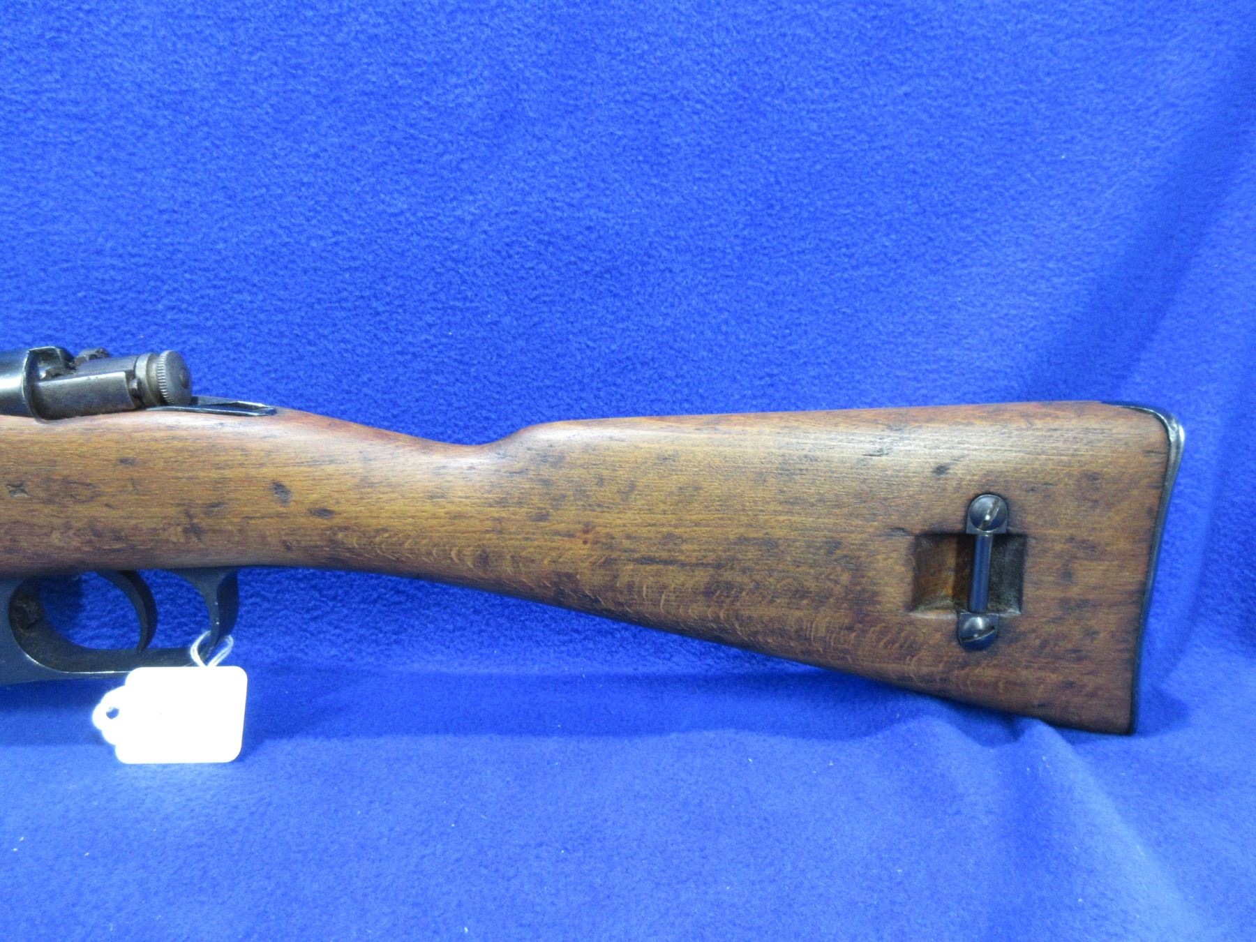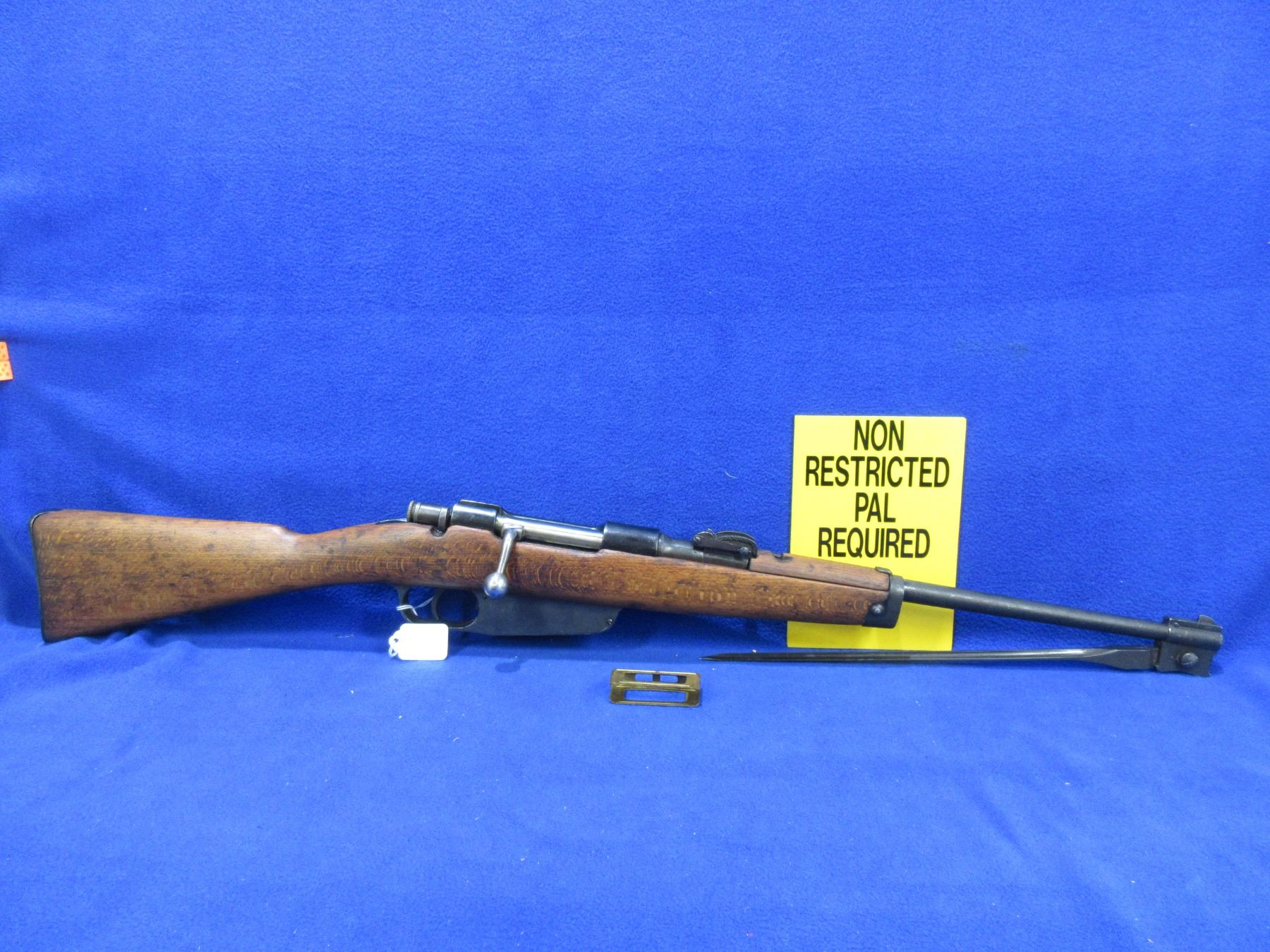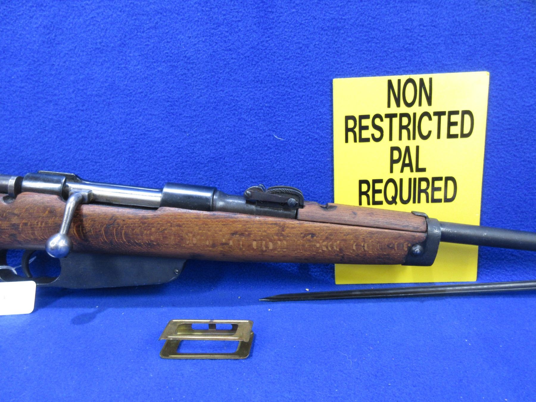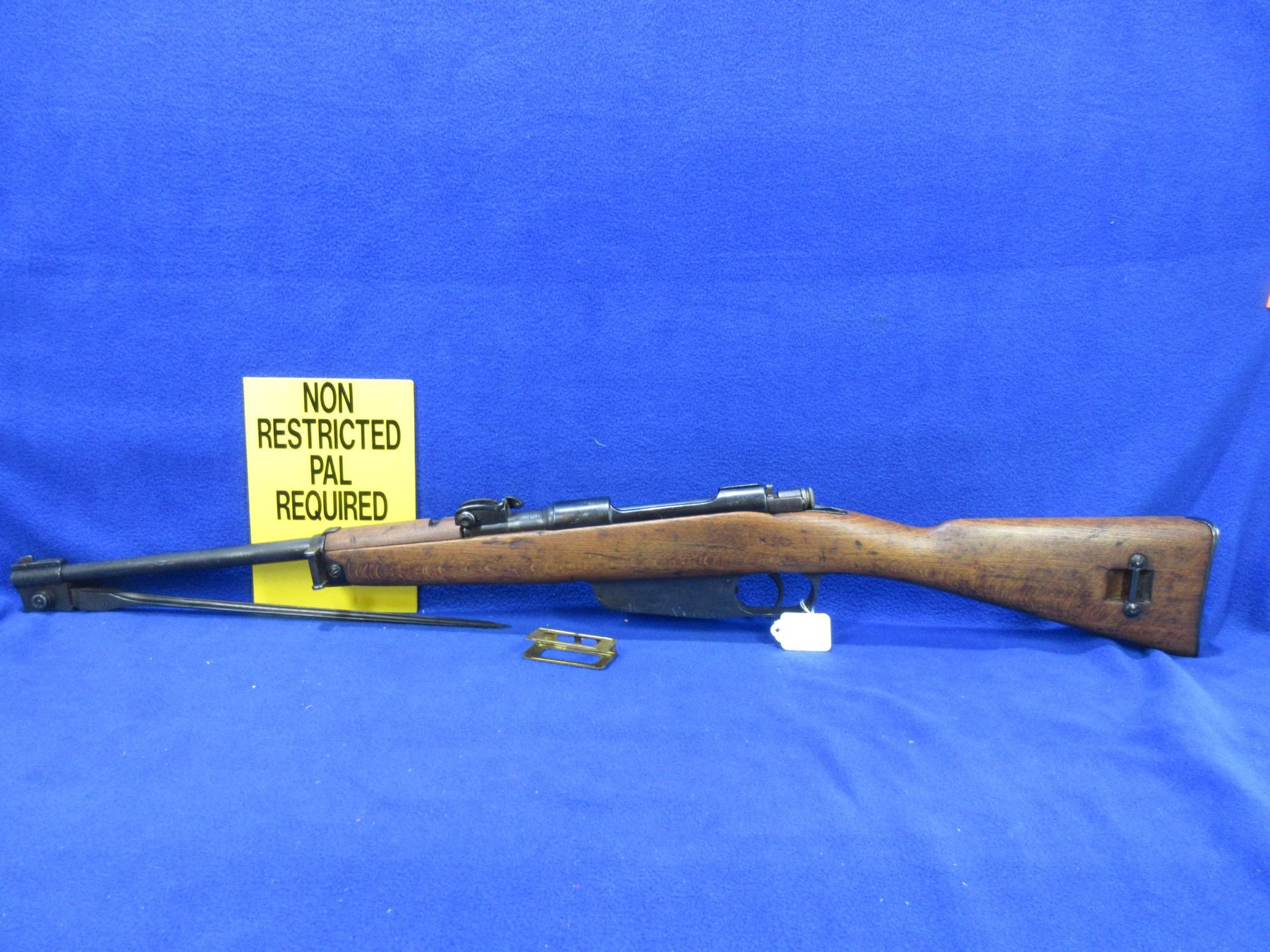 Non-Restricted - Carcano Carbine in 6.5X52MM - This bolt action rifle with internal magazine and a stripper clip appears to be in good to very good working order. Barrel is 18", rifling is good to very good, bluing is fair to good, has both sights, stock good to very good, metal butt plate good, comes with a bayonet. Ser # PS170