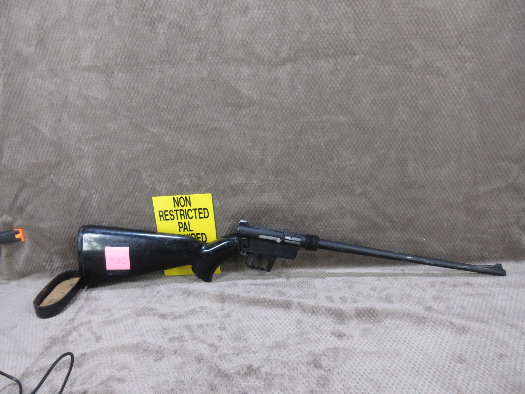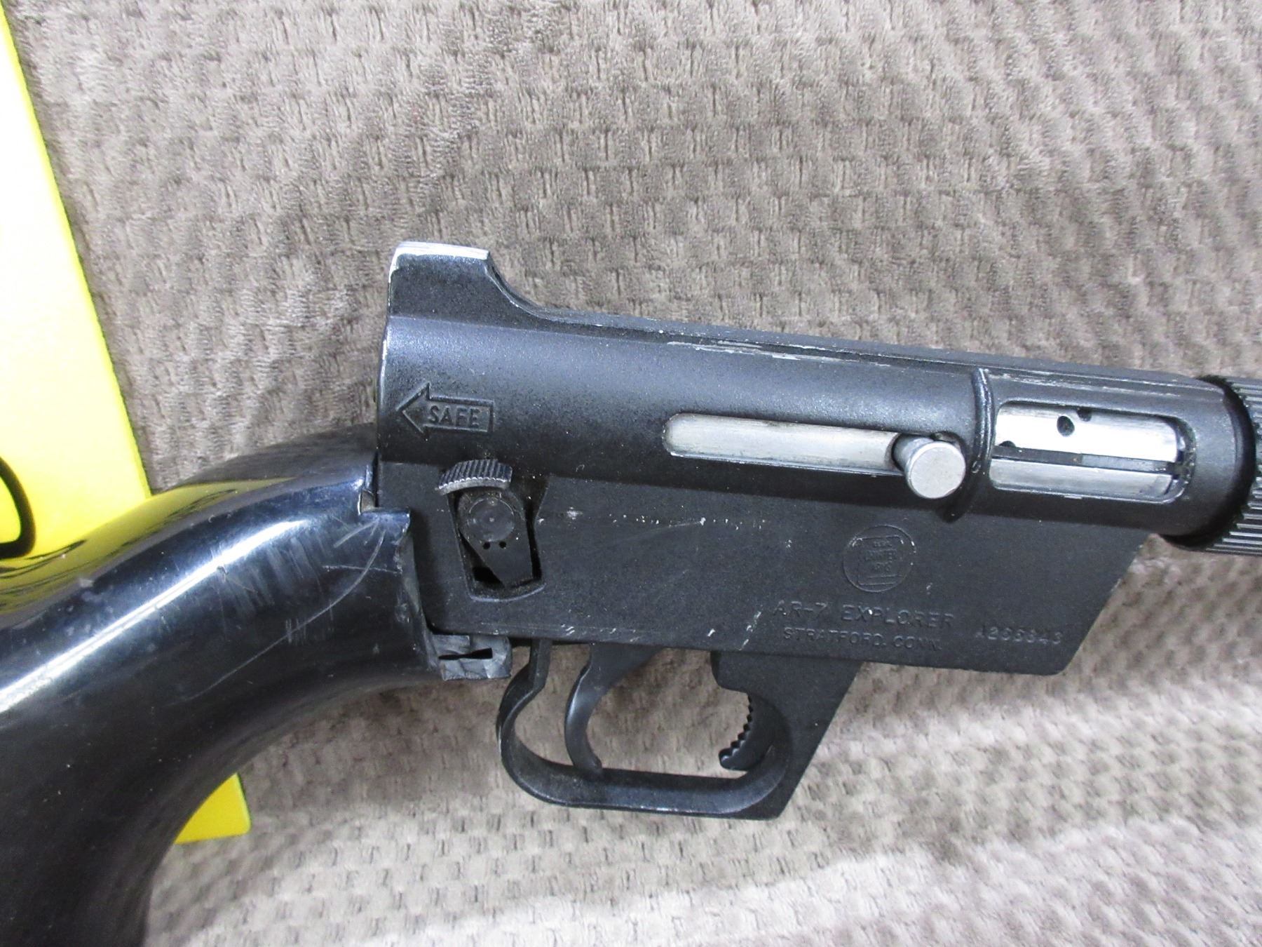 Non-Restricted - Charter Arms AR-7 Explorer in 22 LR Survival Gun - This semi-auto rifle with magazine missing to be sold as a parts gun as stock is broken and stock bolt is broken. Barrel 16", black finish is fair with scratches, rifling is good to very good, has both sights, back is adjustable peep sight, Ser # A266843