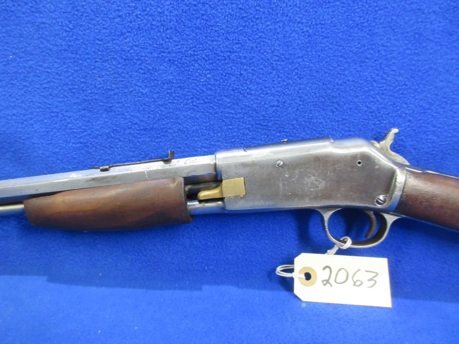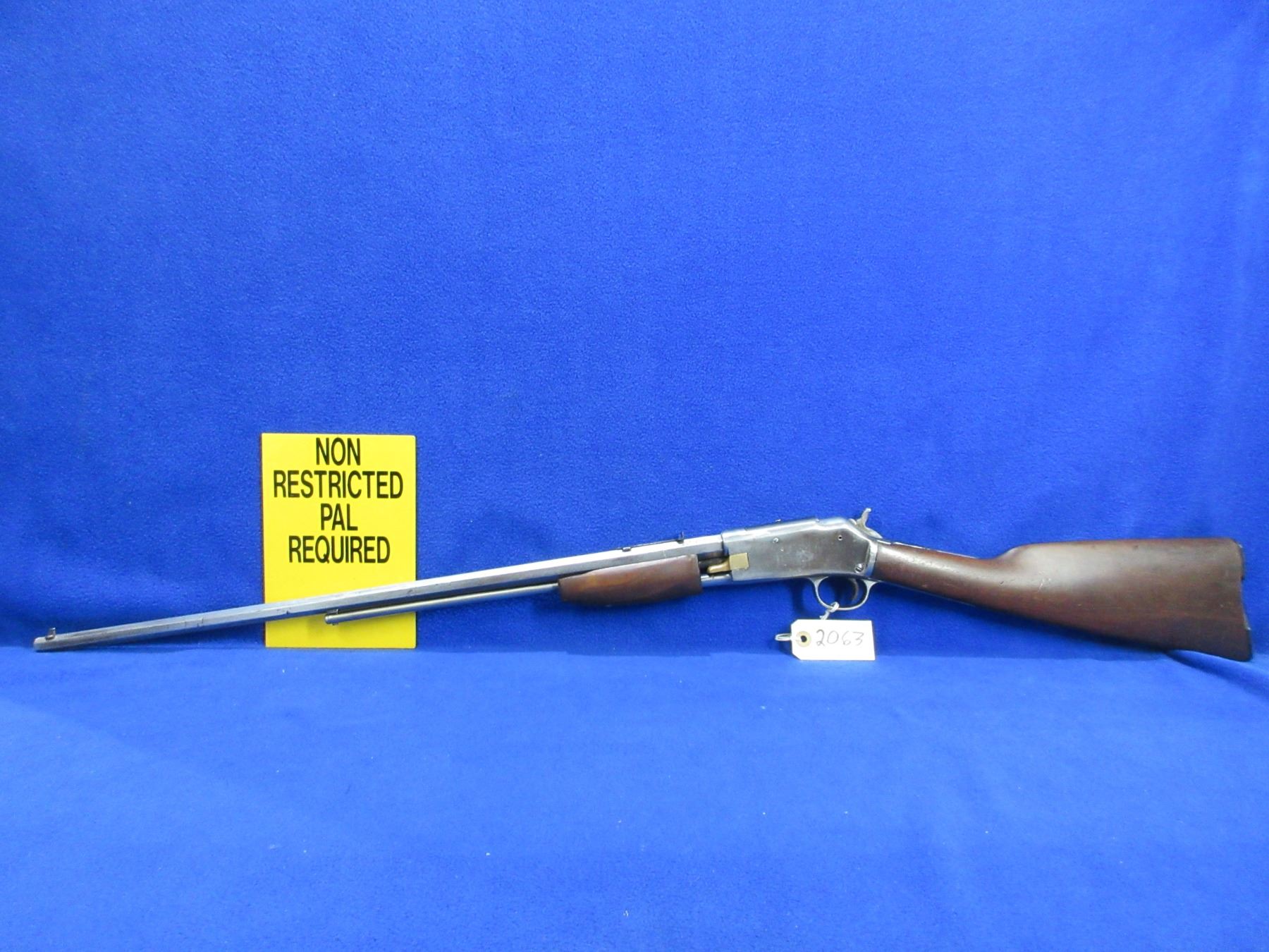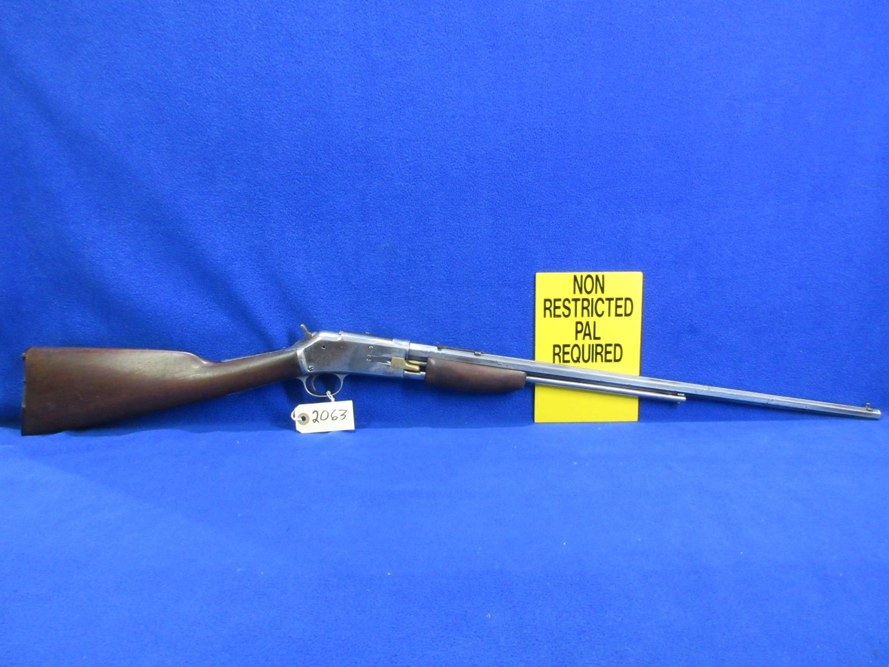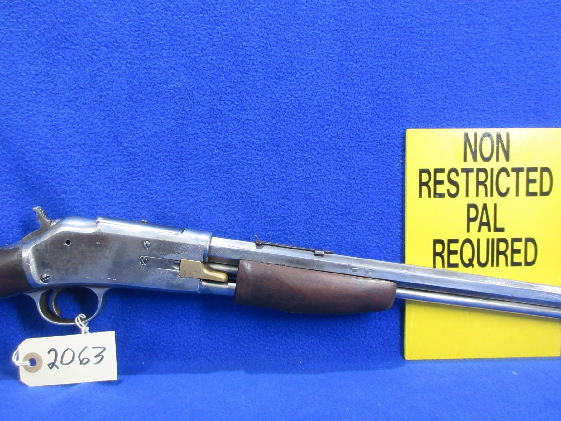 Non-Restricted - Colt Lightning in 22 Cal. - This is a pump action rifle with tube magazine, action appears to be in poor to fair working order as gun cycles but cock sometimes does not hold, dust cover has wrong screw and falls off. Barrel is 24", rifling is fair to good for age, bluing is gone, has both sights, rear sight missing ramp, stock is good, forearm is fair with large scratch and a piece missing, length of pull is 13 1/2", butt plate is broken. This is a rare and hard to find rifle and appears mostly complete. Ser # 84310