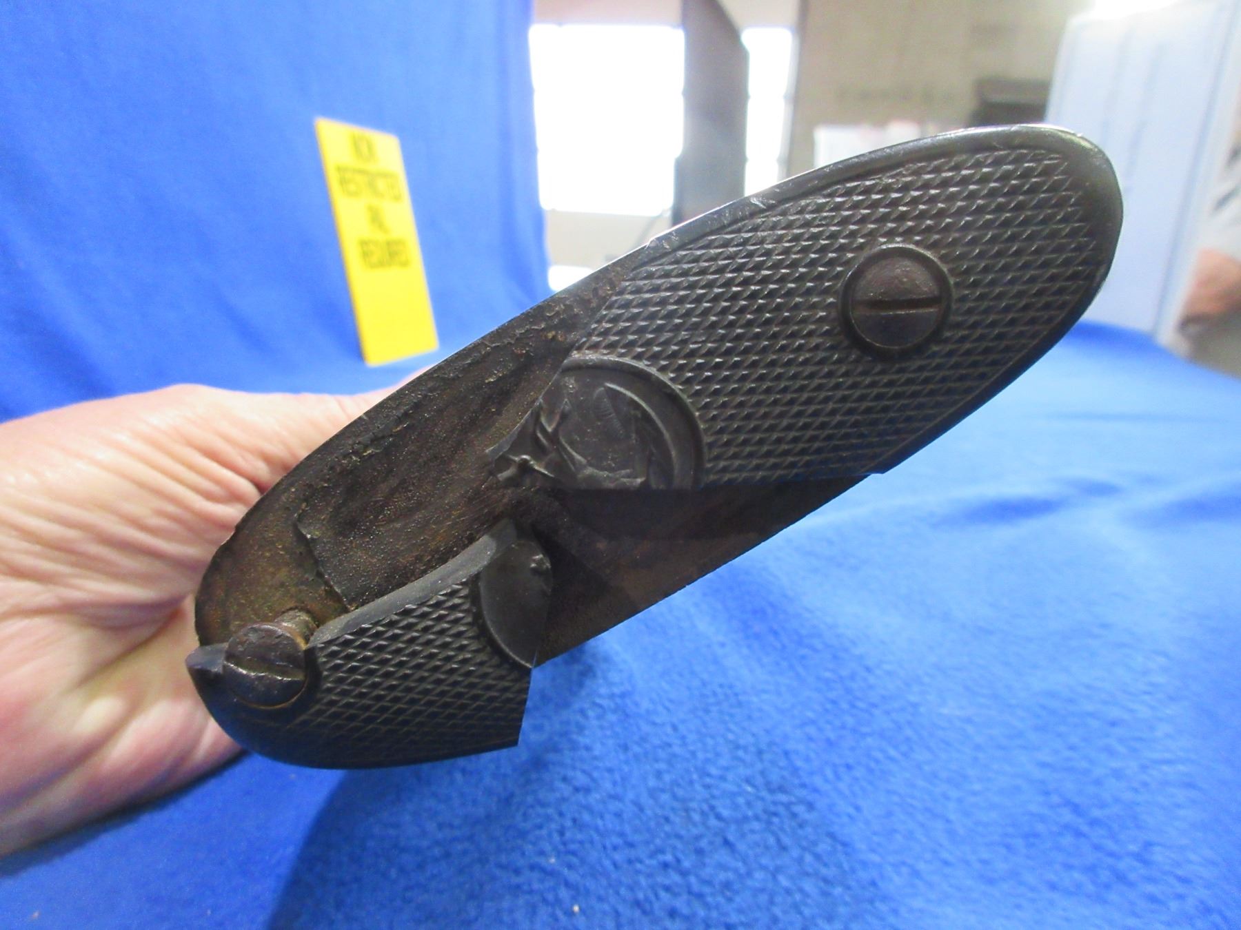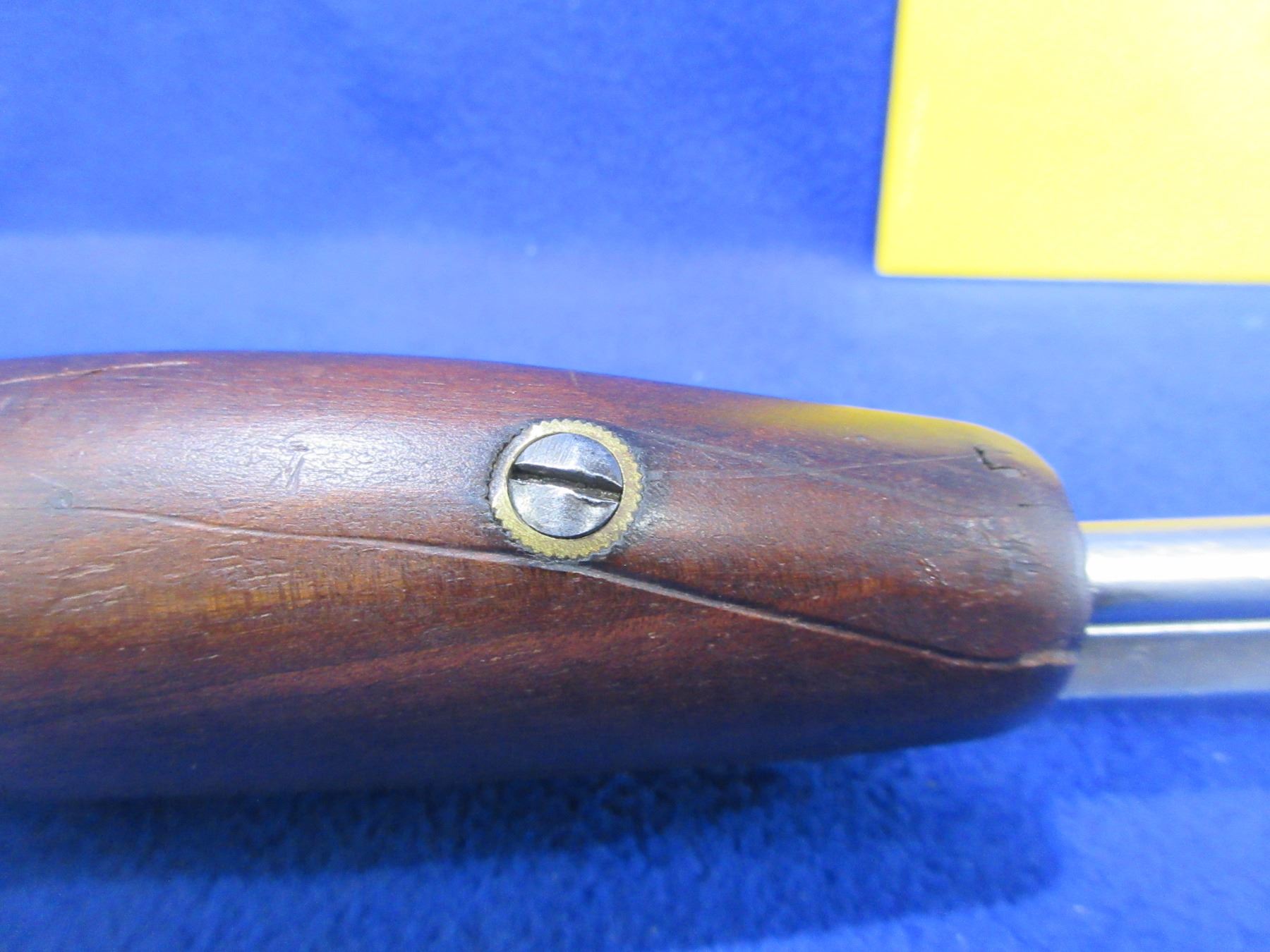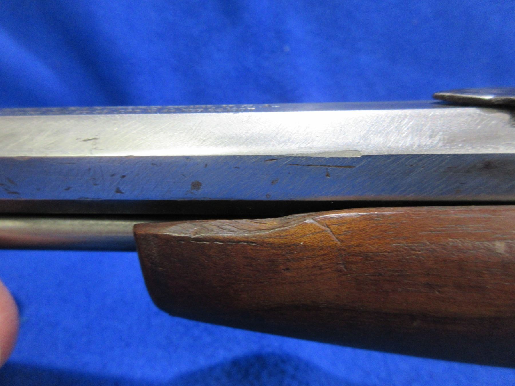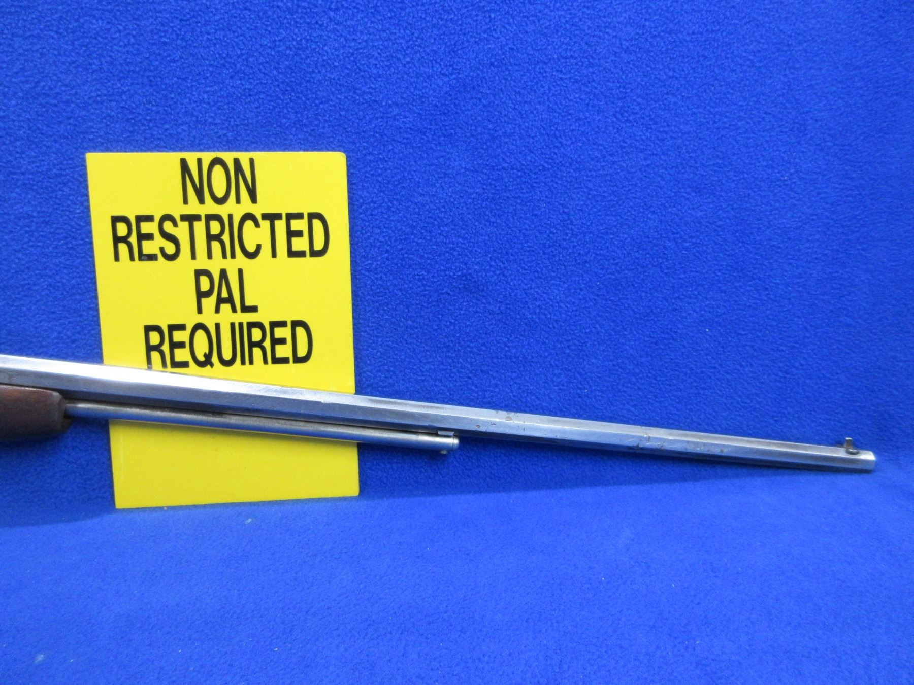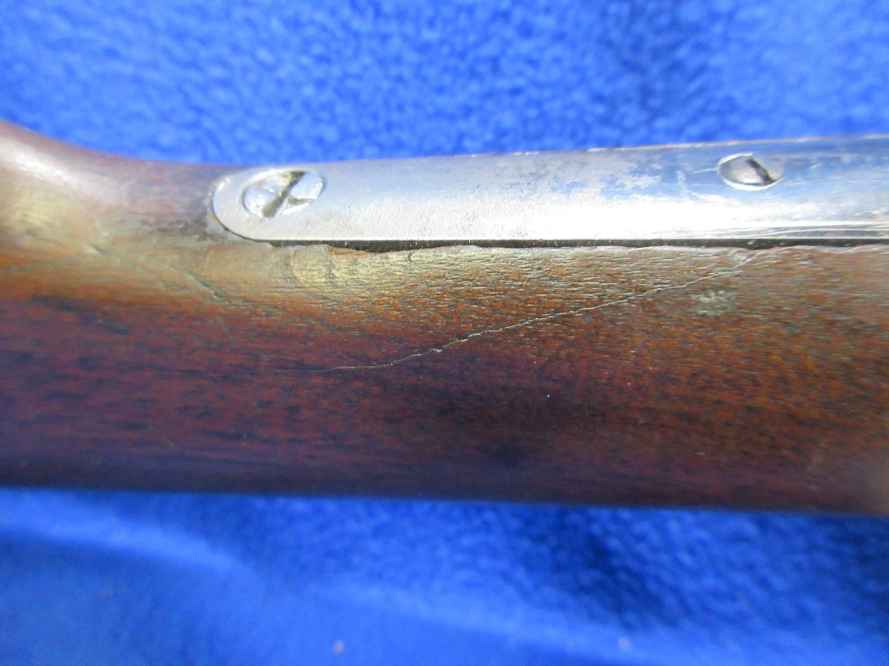 Non-Restricted - Colt Lightning in 22 Cal. - This is a pump action rifle with tube magazine, action appears to be in poor to fair working order as gun cycles but cock sometimes does not hold, dust cover has wrong screw and falls off. Barrel is 24", rifling is fair to good for age, bluing is gone, has both sights, rear sight missing ramp, stock is good, forearm is fair with large scratch and a piece missing, length of pull is 13 1/2", butt plate is broken. This is a rare and hard to find rifle and appears mostly complete. Ser # 84310
