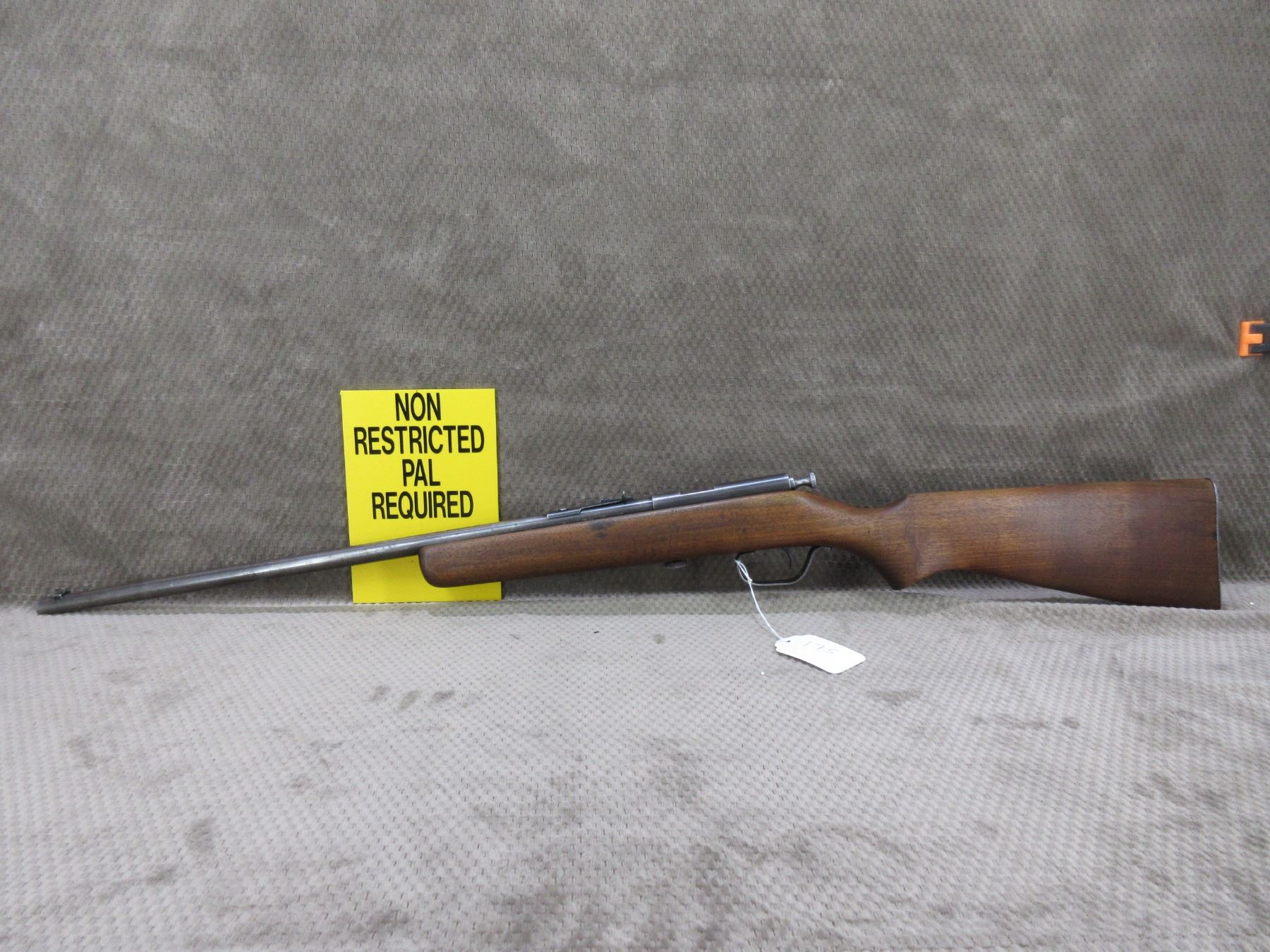 Non-Restricted - Cooey By Winchester Model 39 in 22 LR - This single shot bolt-action rifle appears to be in good to very good working order. Barrel is 22", bluing is mostly grey, rifling is good to very good, has both sights, stock good with usual marks, metal butt plate good, Ser # None