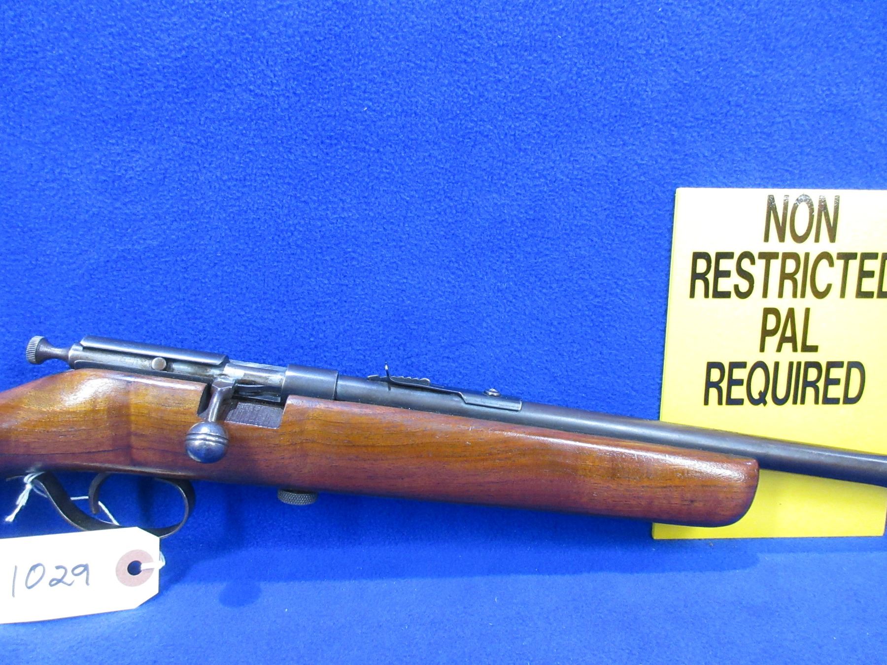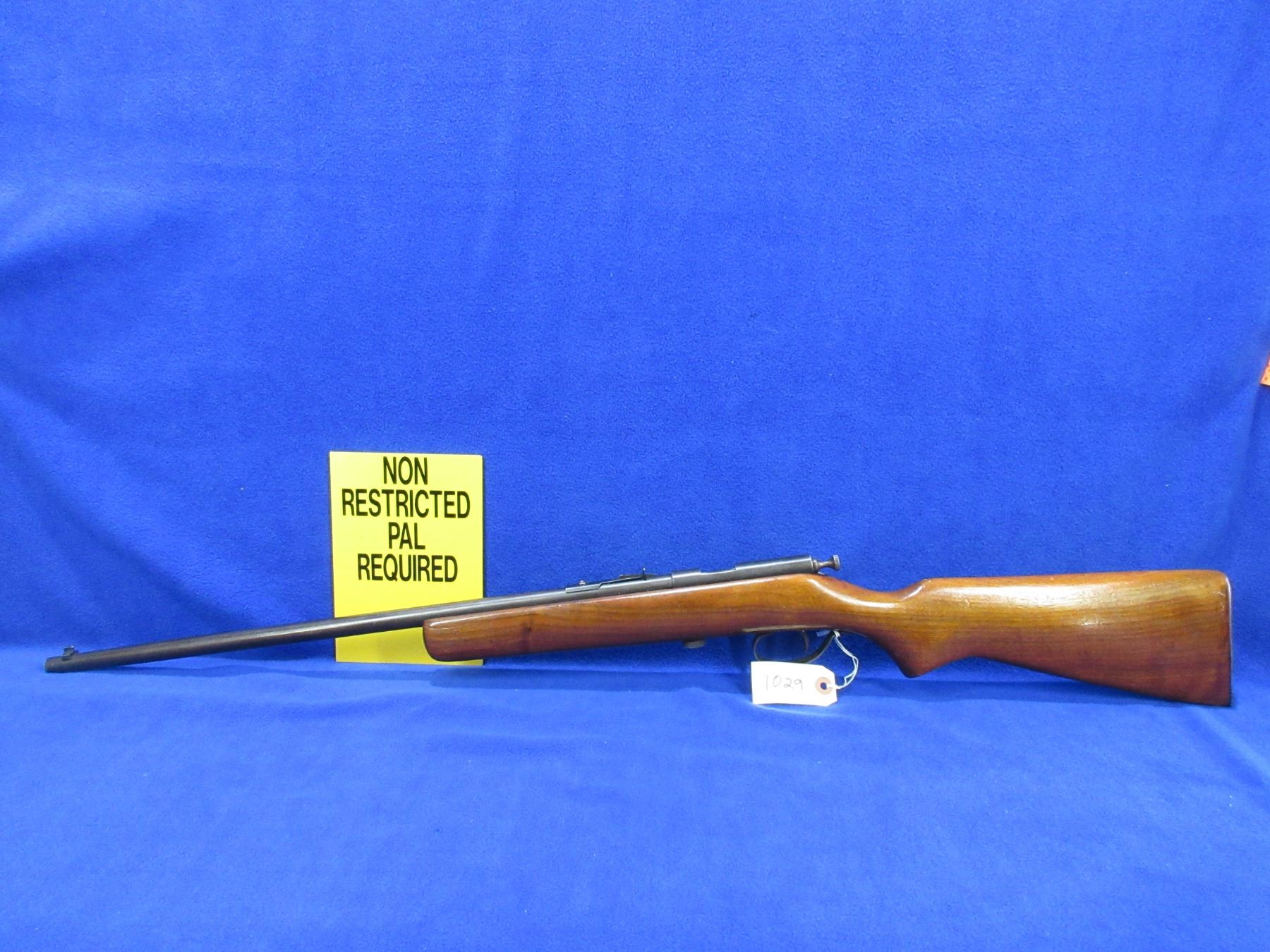 Non-Restricted - Cooey Model 39 in 22 S, L, LR - This single shot bolt action rifle appears to be in good to very good working order. Barrel is 22", rifling is good to very good, bluing is good, has both sights, stock is good but appears refinished with a crack repair on front of stock, metal butt plate good. Ser # None