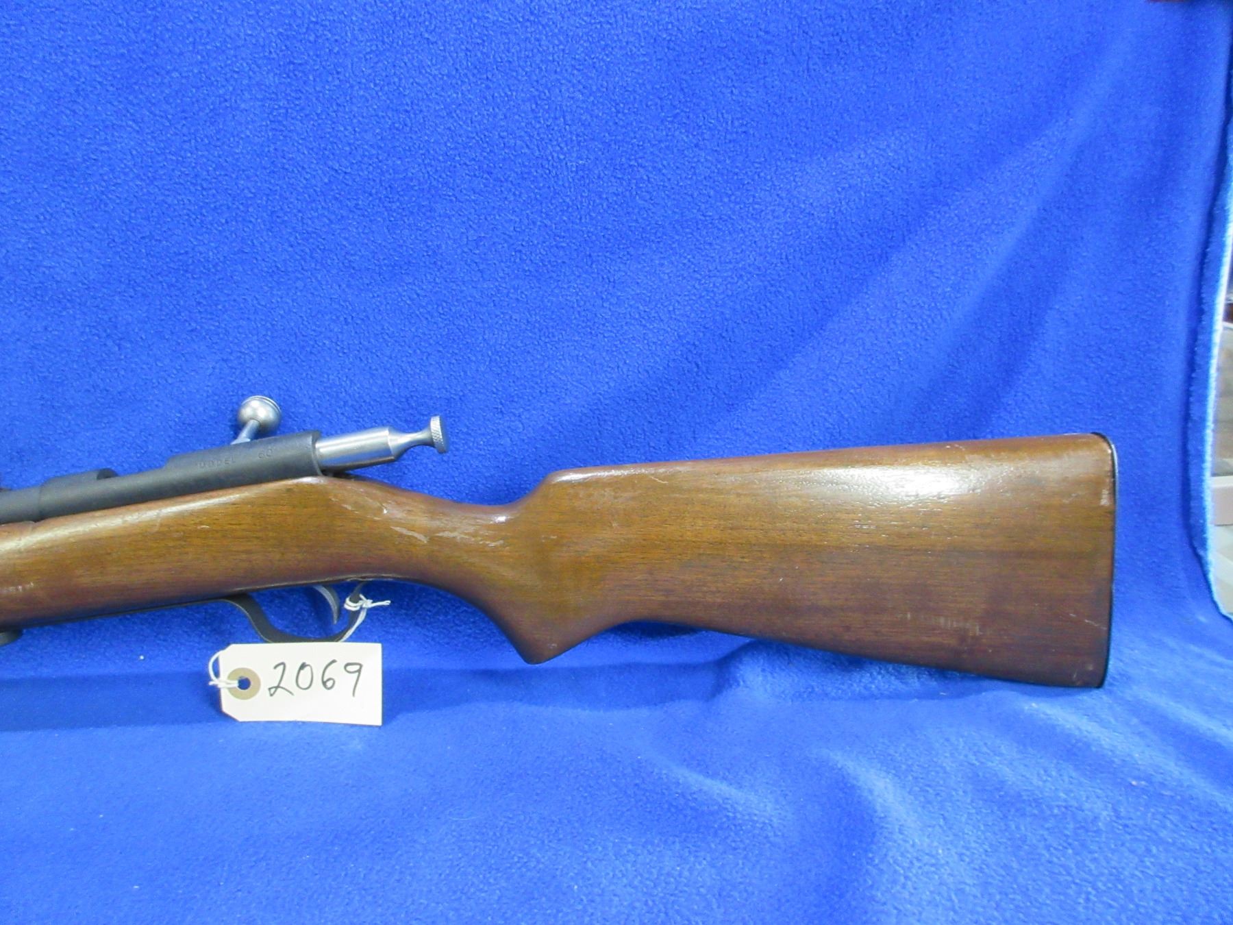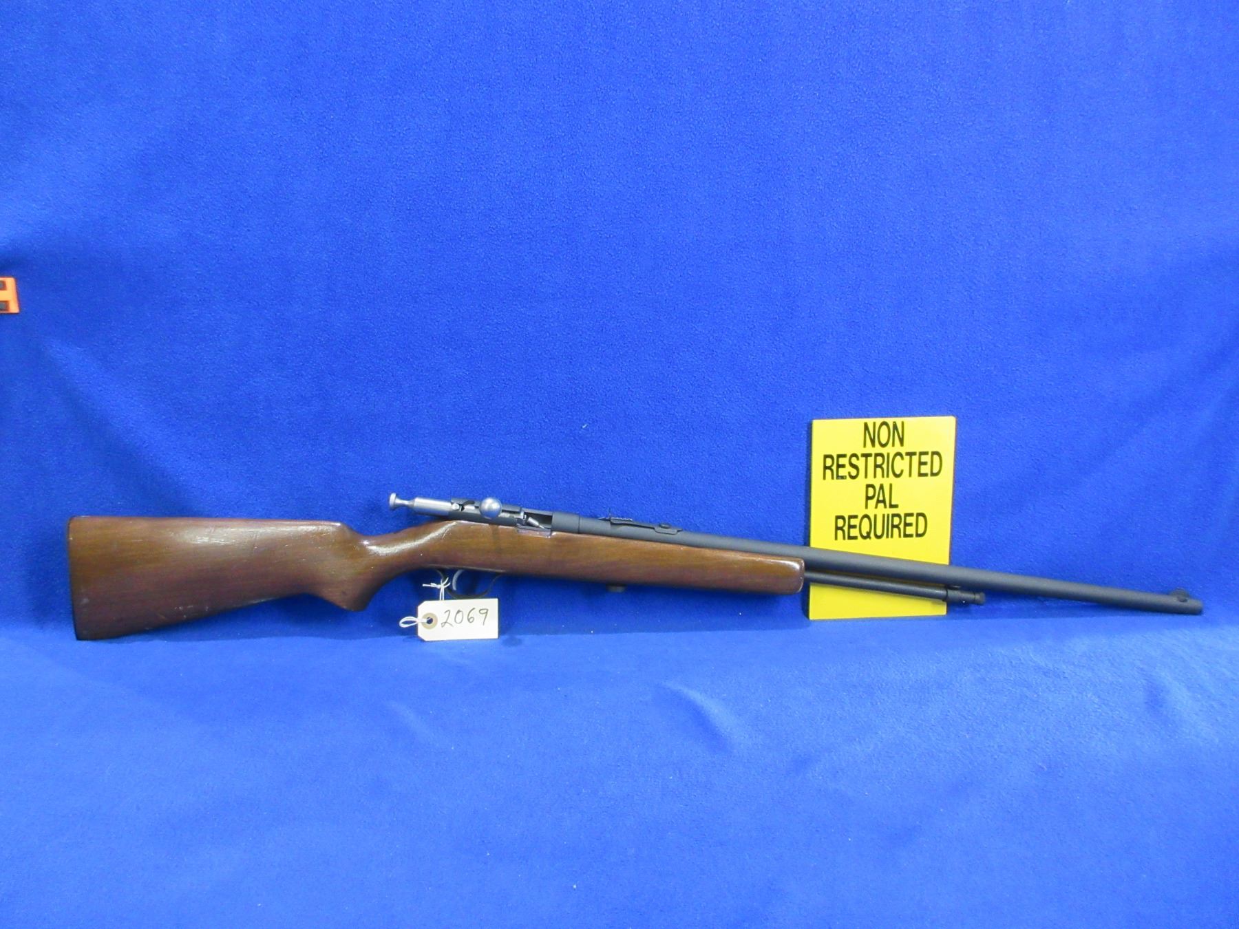 Non-Restricted - Cooey Model 60 in 22 Cal - This is a bolt action rifle with tube magazine, action appears to be in good to very good working order. Barrel is 24", rifling is good to very good, black refinish is good to very good, has both sights, stock is good but has previous crack repair, metal butt plate good. Ser # None
