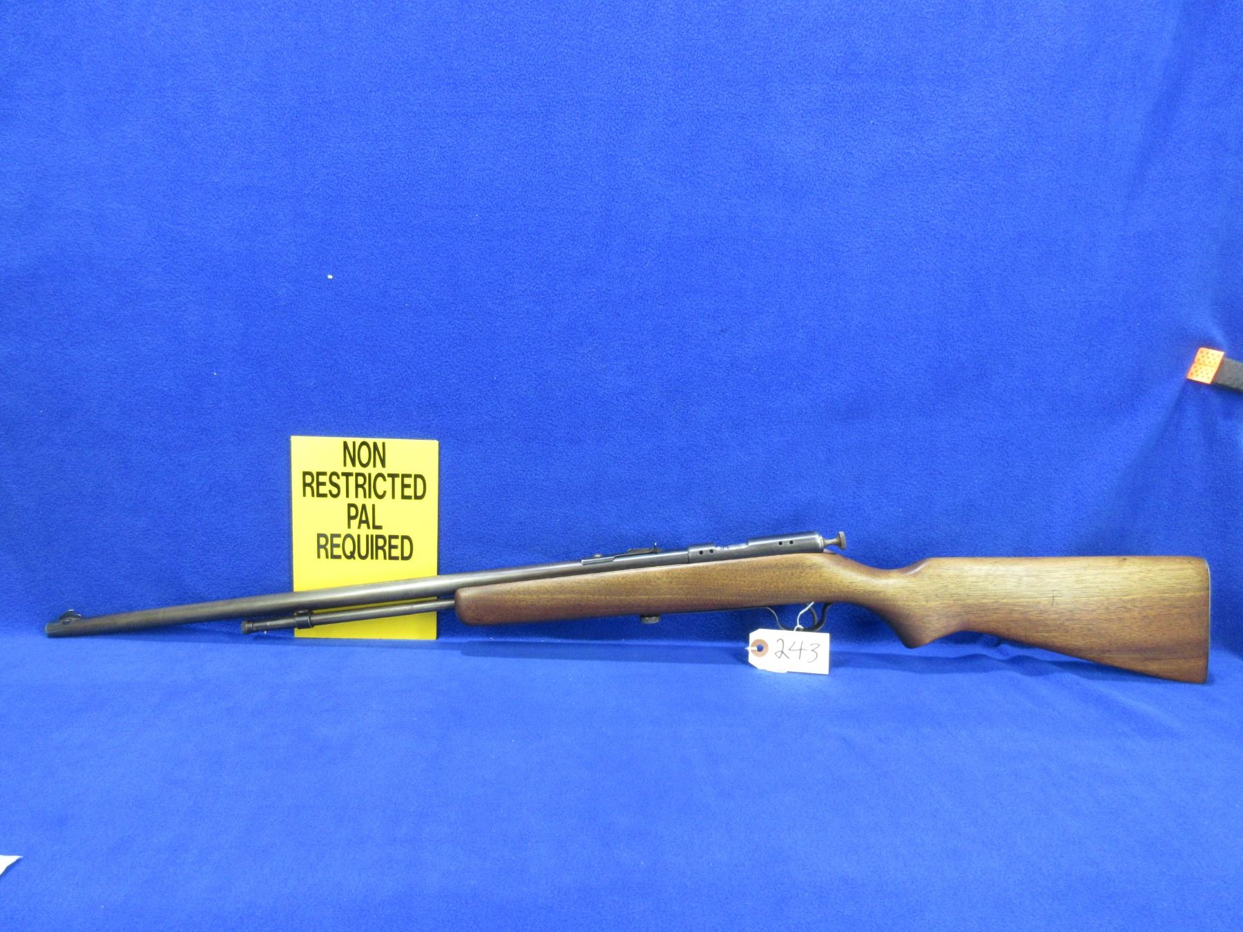 Non-Restricted - Cooey Model 60 in 22 LR - This bolt action rifle with tube magazine appears to be in good to very good working order. Barrel is 24", rifling is good to very good, bluing is mostly grey, has both sights and is drilled and tapped for a side mount scope, stock looks refinished and is good to very good, metal butt plate good. Ser # None